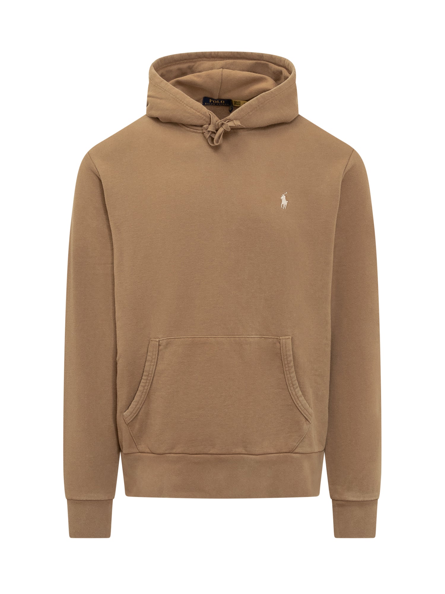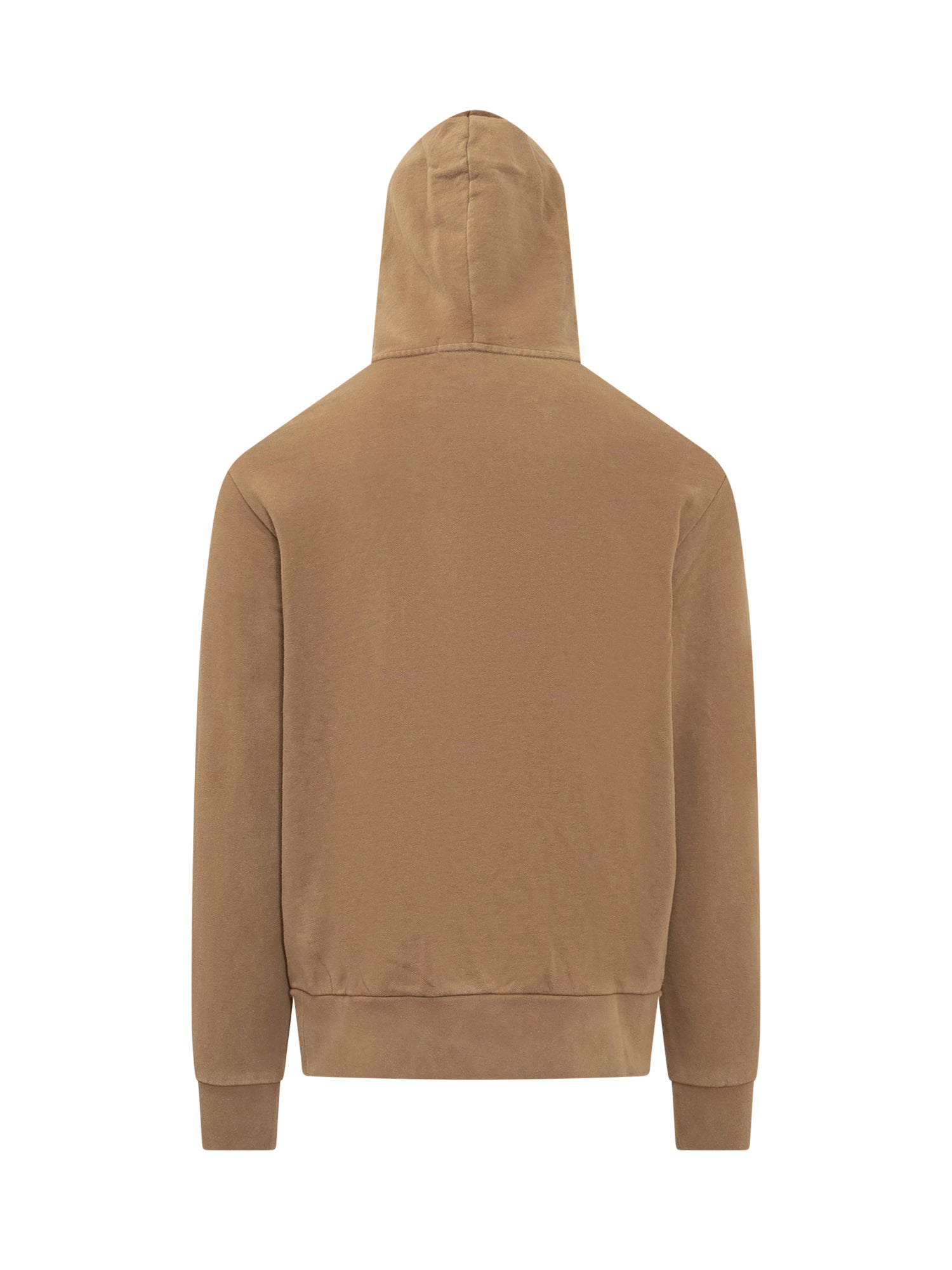 Felpa marrone a maniche lunghe. Cappuccio con coulisse. Logo sul petto. Tasca sul davanti. Polsi e fondo a costine.