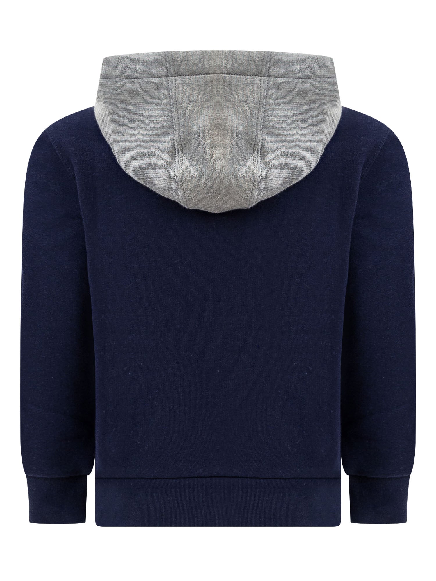 Felpa a maniche lunghe con cappuccio. Scollo a V con righe. Orlo e polsi a costine. Tasca frontale. Logo ricamato sul davanti.