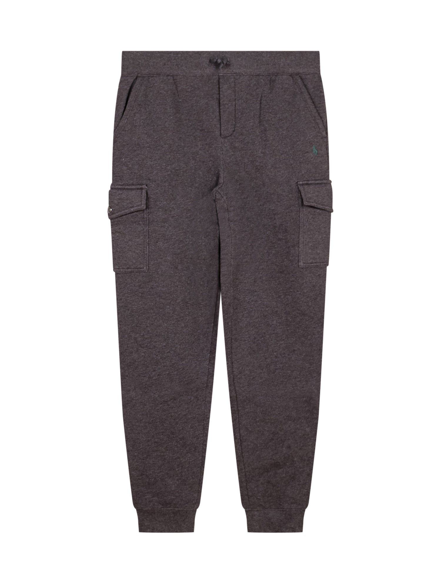 Pantaloni cargo Polo Ralph Lauren in cotone grigio scuro con logo verde ricamato.