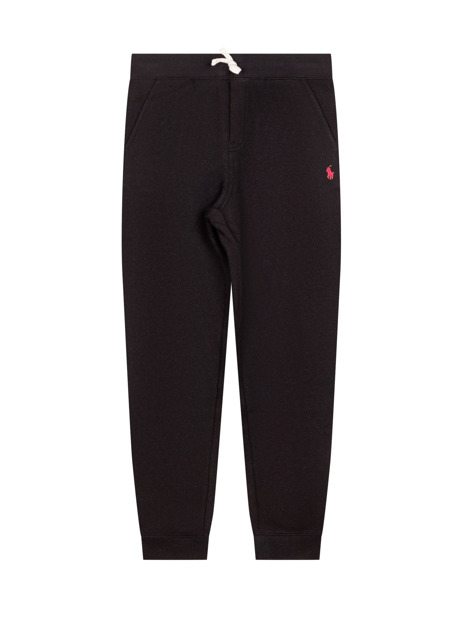 Pantaloni jogger Polo Ralph Lauren in cotone nero con logo ricamato rosso. Vita regolabile con coulisse e fondo elasticizzato.