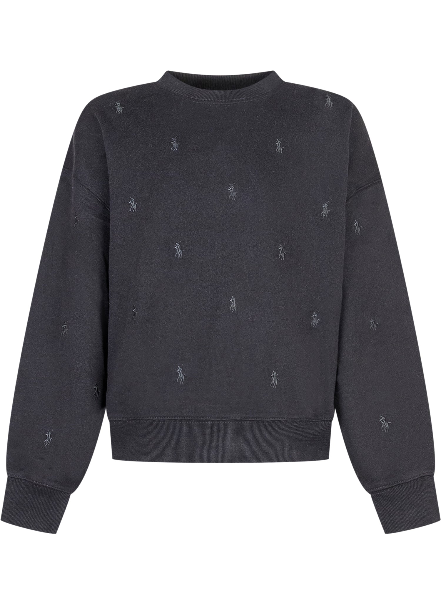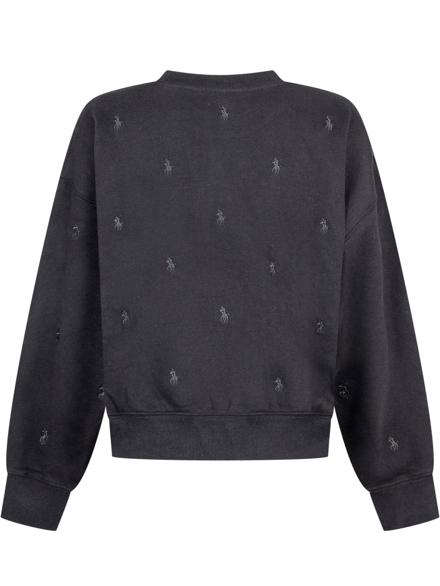 Felpa Polo Ralph Lauren Kids nera con ricami logo all over. Realizzata in cotone morbido, offre comfort e stile casual.