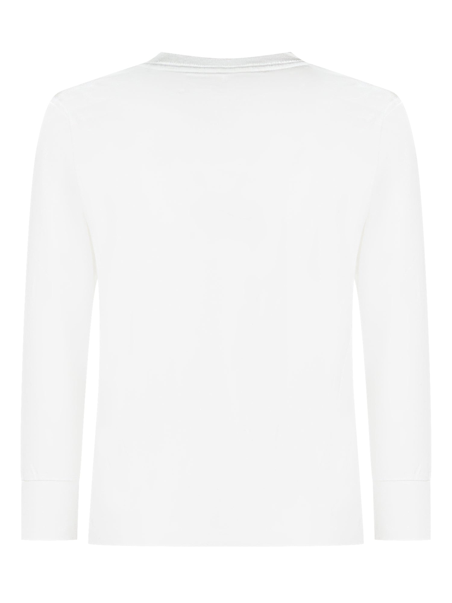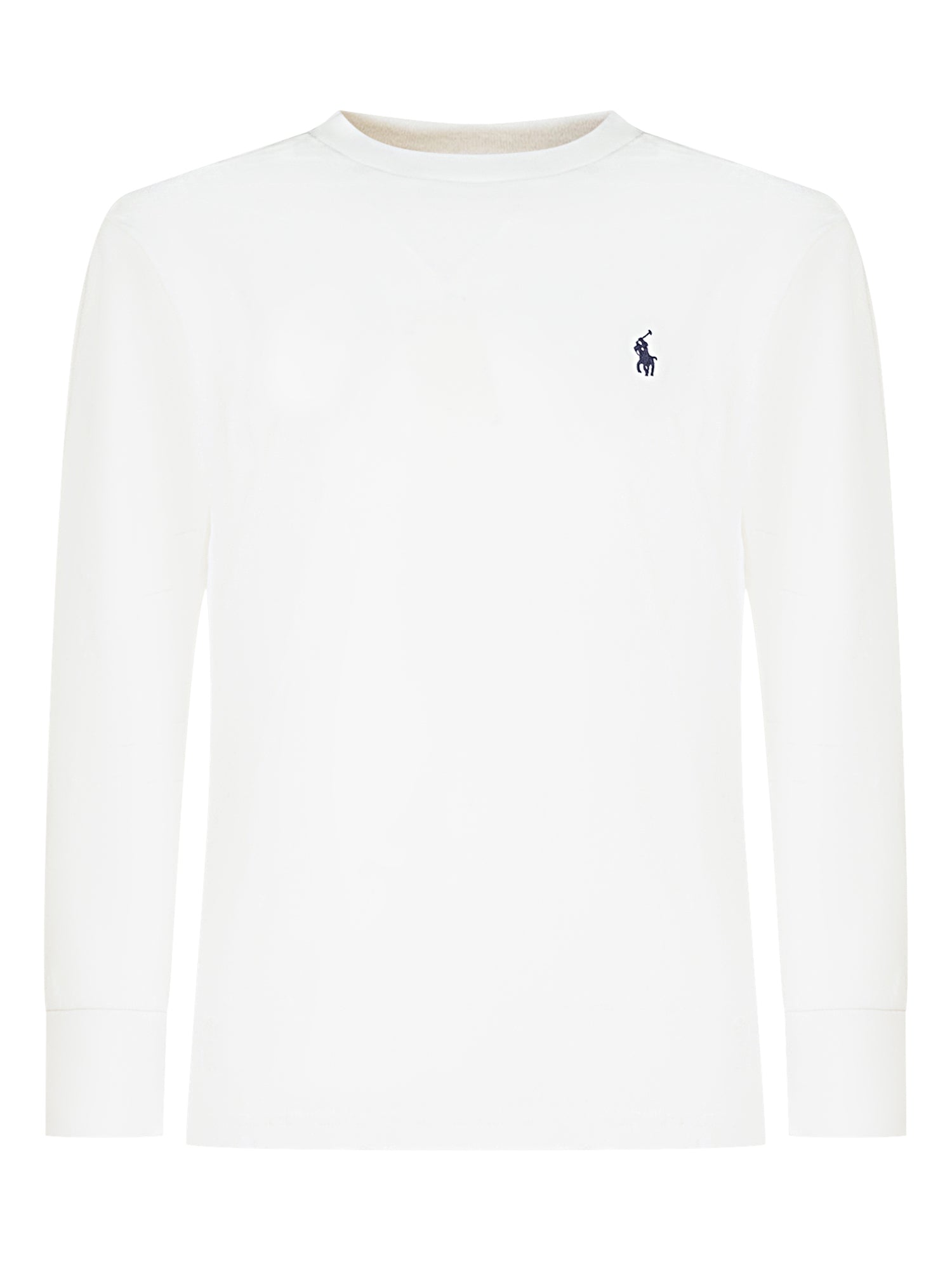 Maglia a maniche lunghe Polo Ralph Lauren Kids in cotone bianco con iconico pony ricamato sul petto.