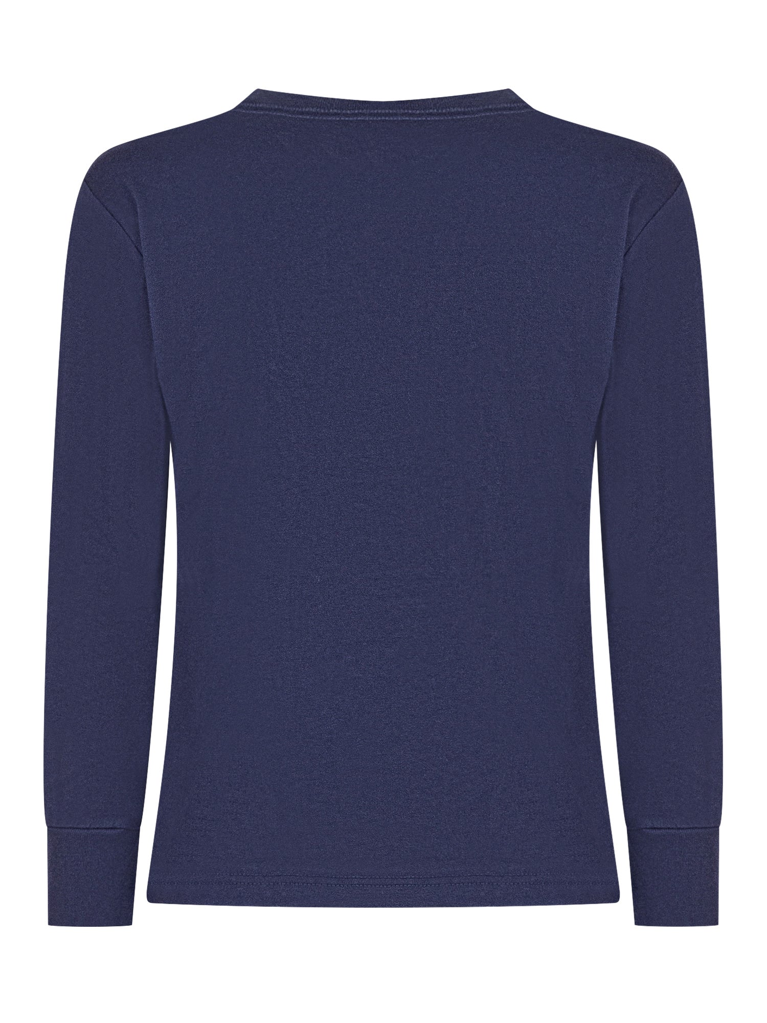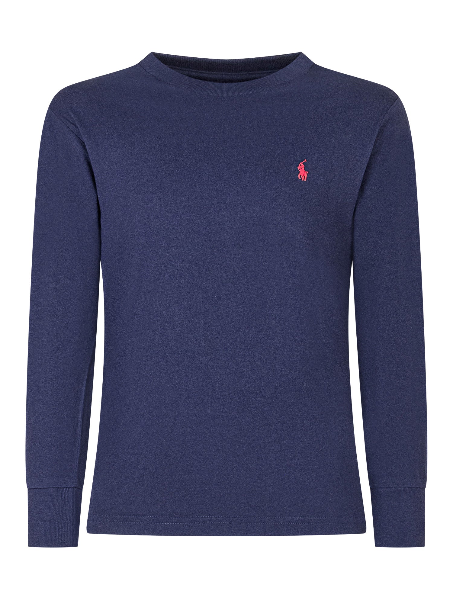 Maglia a maniche lunghe Polo Ralph Lauren Kids in cotone blu con iconico pony ricamato a contrasto sul petto.