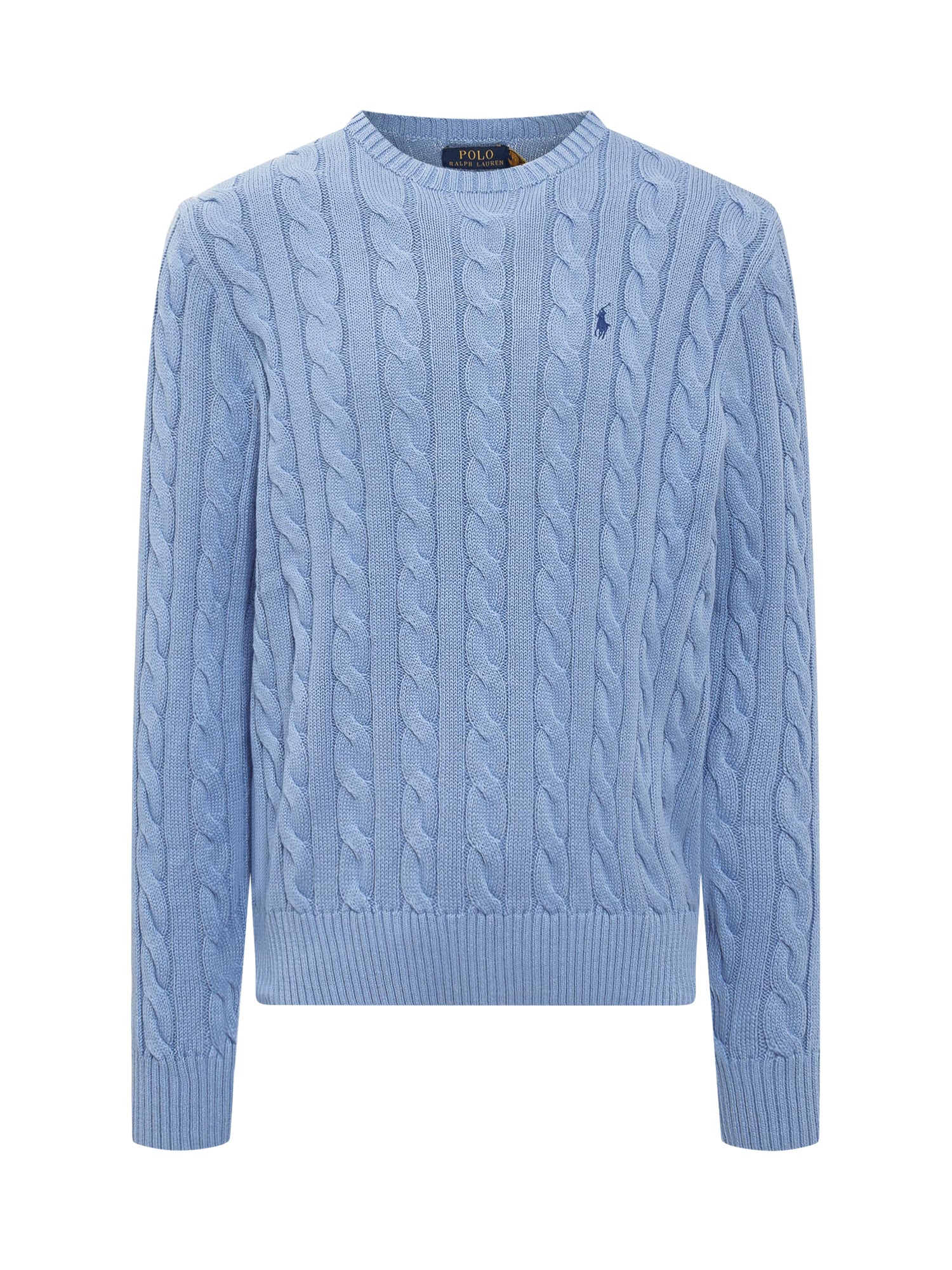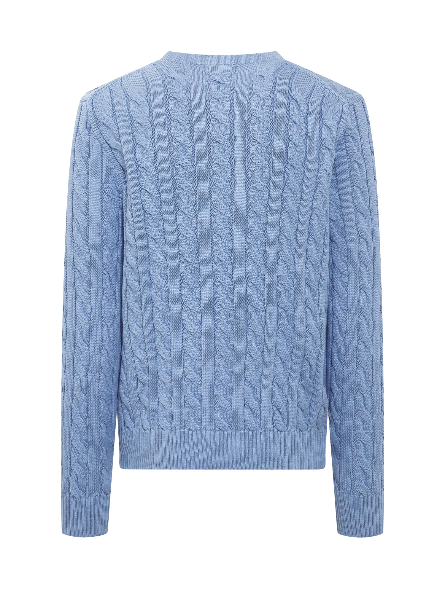 Maglia girocollo. Maniche lunghe. Lavorazione intrecciata. Logo ricamato sul petto.
