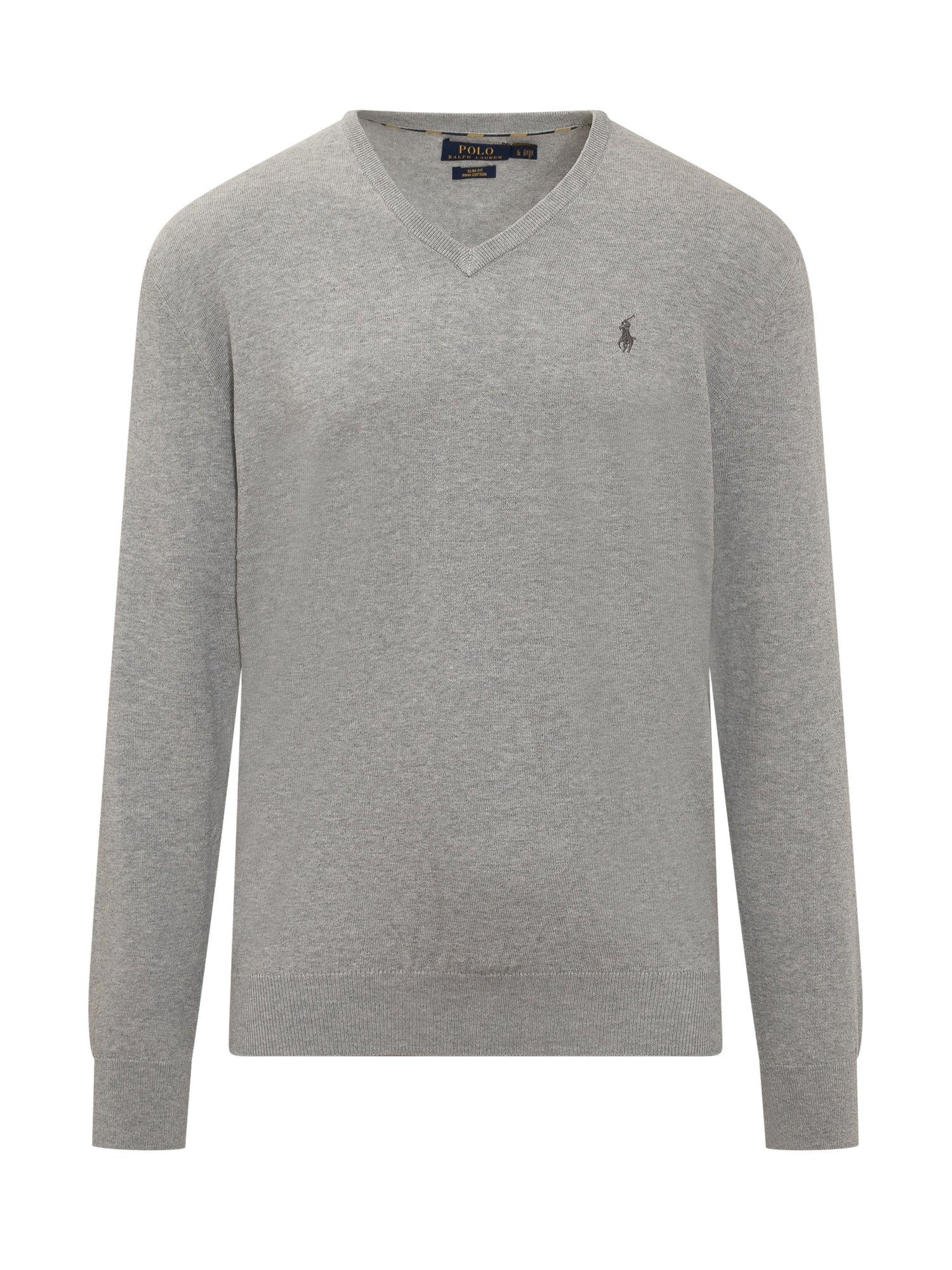 Maglia maniche lunghe. Collo a costine, scollo a-V. Logo ricamato sul petto.