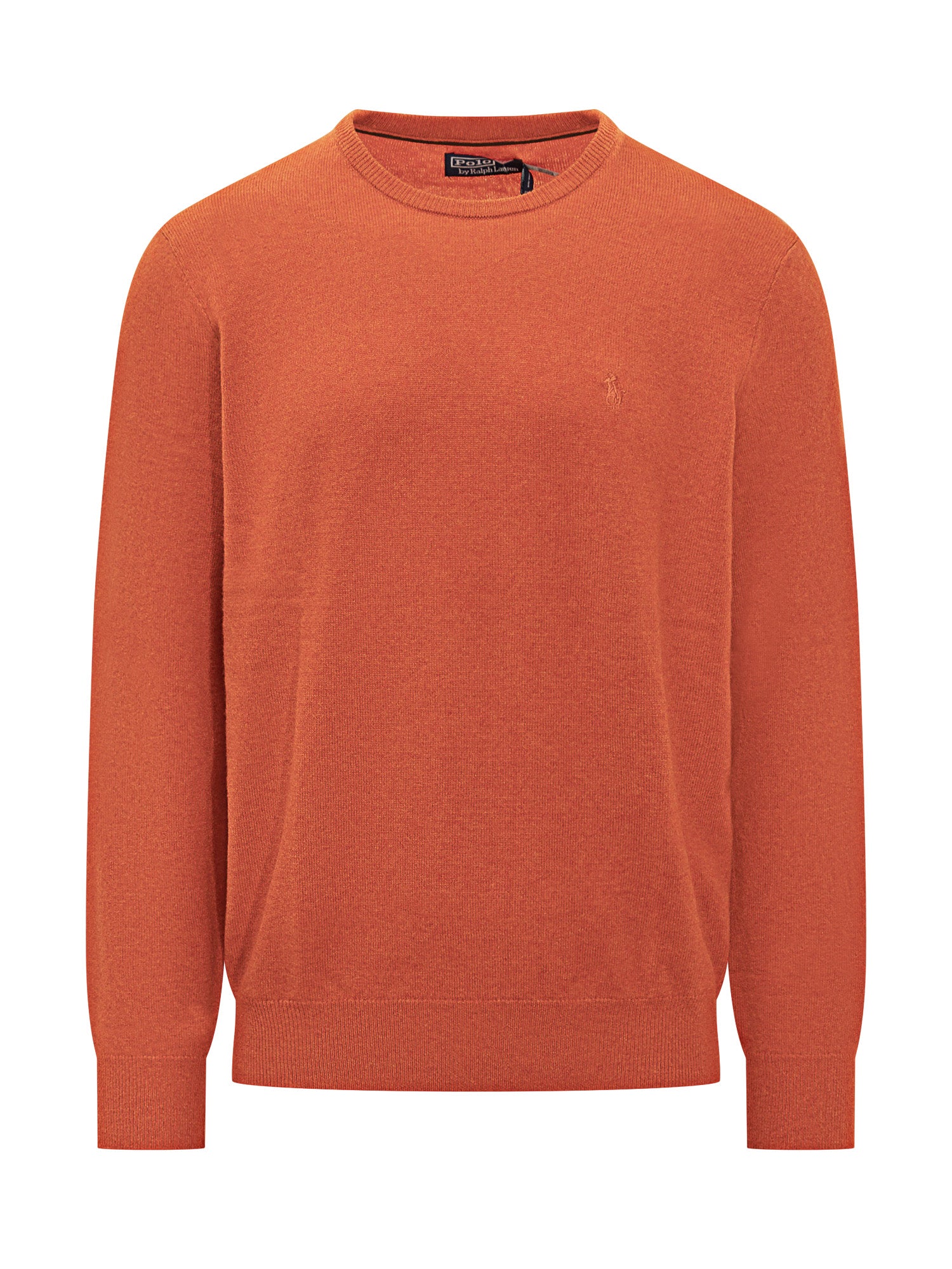 Maglione girocollo in cotone arancione firmato Polo Ralph Lauren con logo tono su tono. Perfetto per aggiungere colore e stile a ogni outfit casual o raffinato.