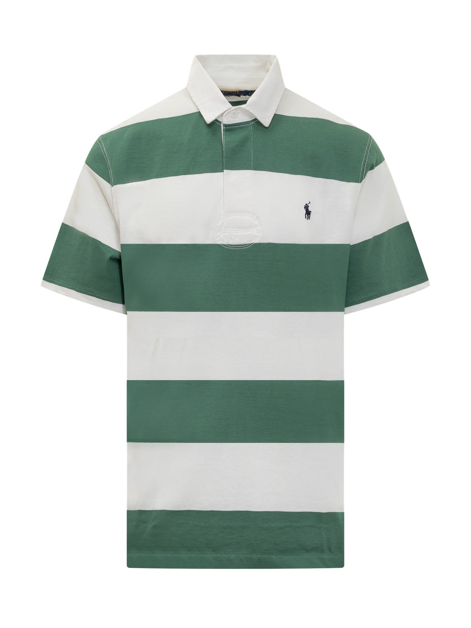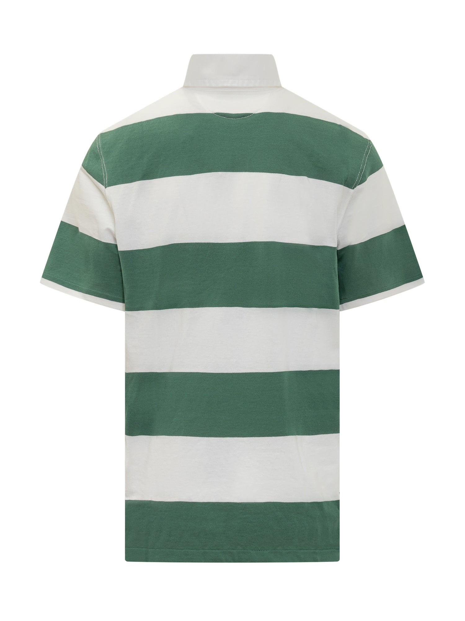 Polo a righe bianca e verde. Chiusura con bottoni.