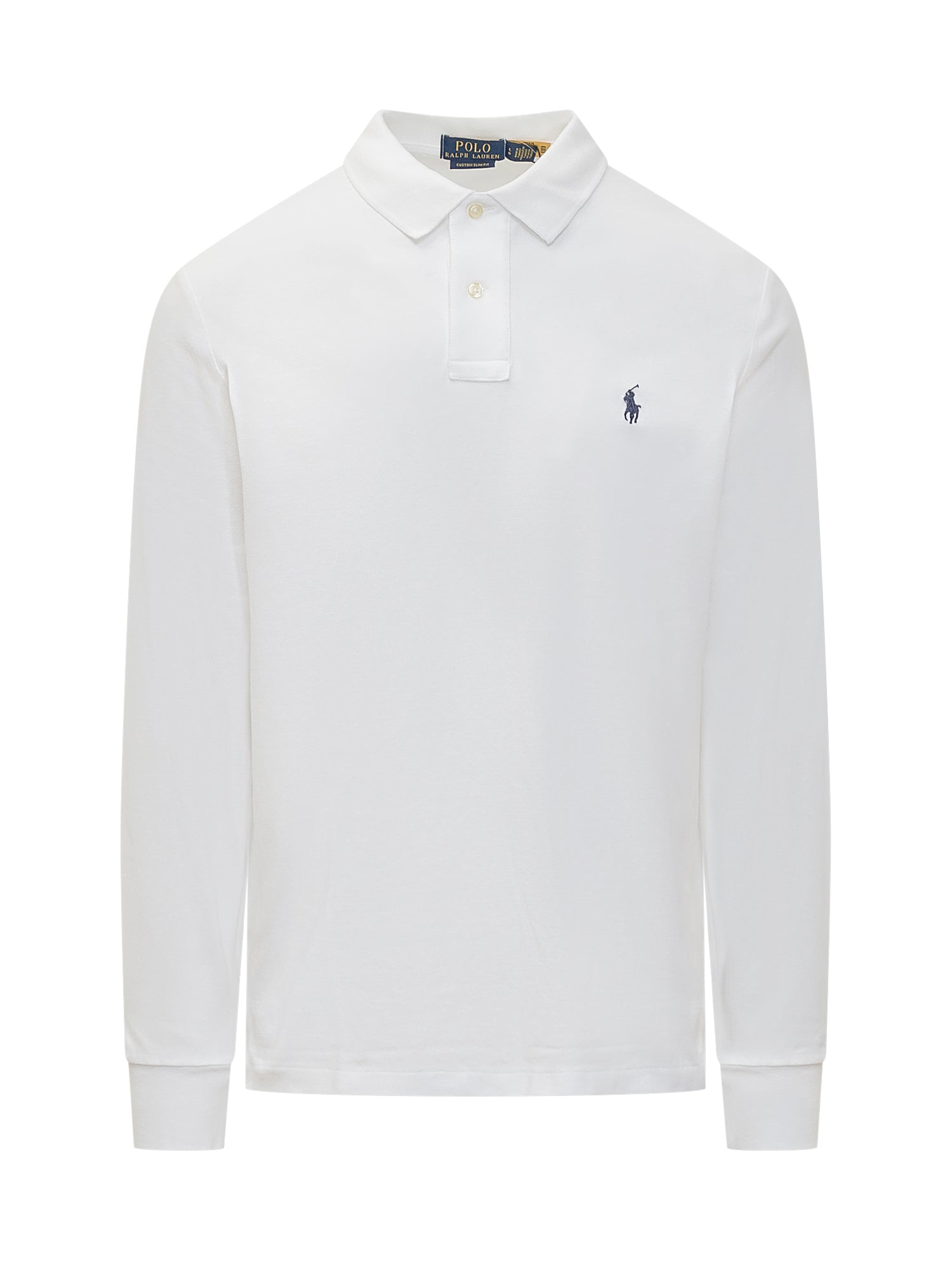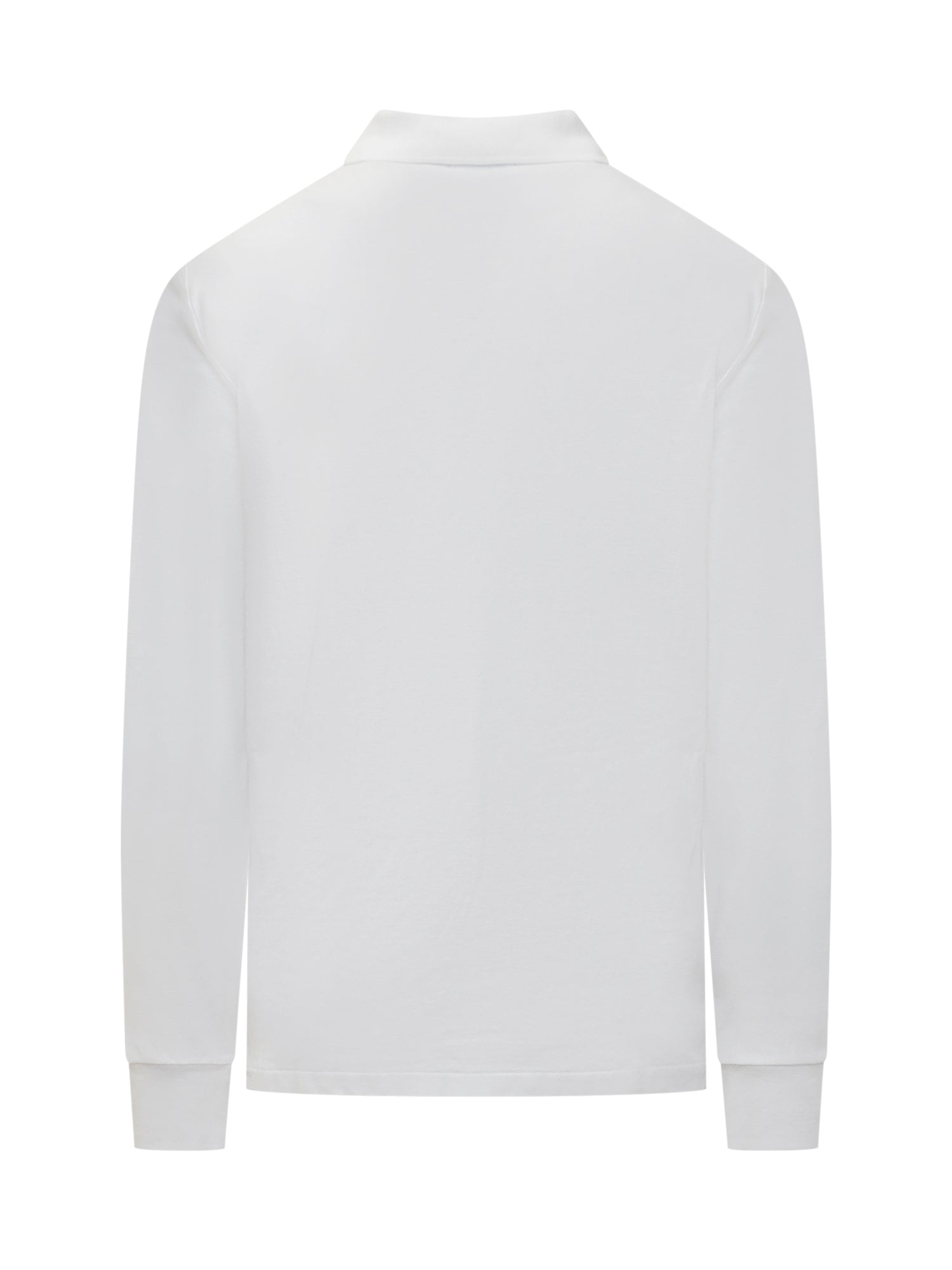 Polo bianca in cotone. Maniche lunghe. Colletto classico. Chiusura con bottoni. Logo ricamato.