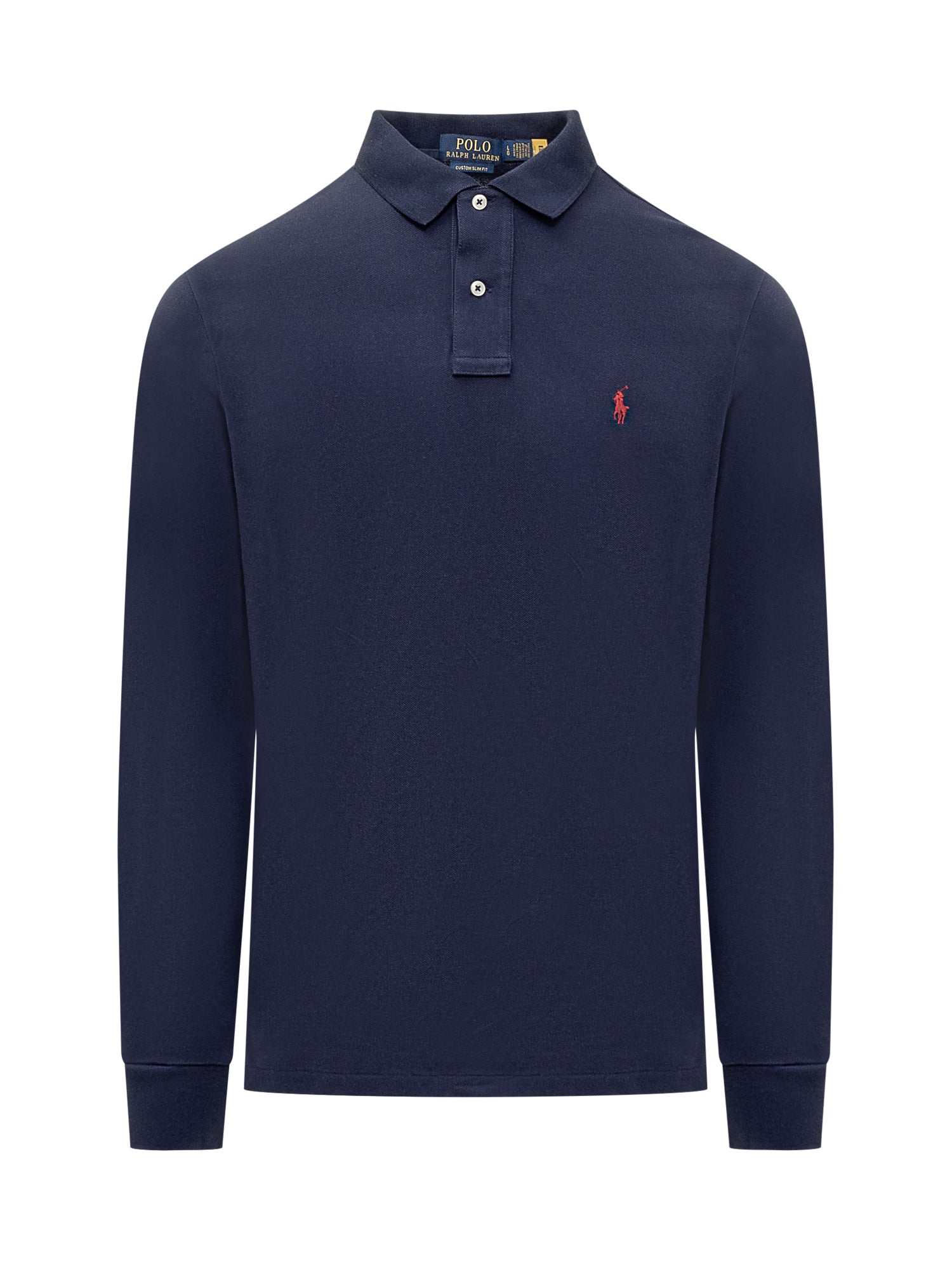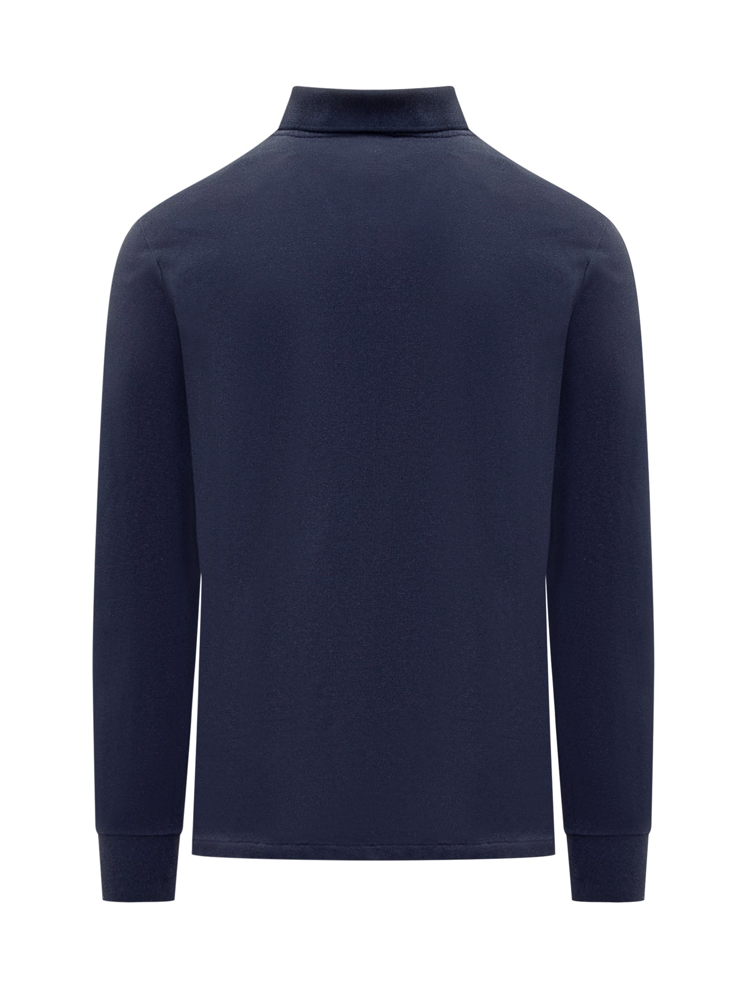 Polo blu in cotone. Maniche lunghe. Colletto classico. Chiusura con bottoni. Logo ricamato.
