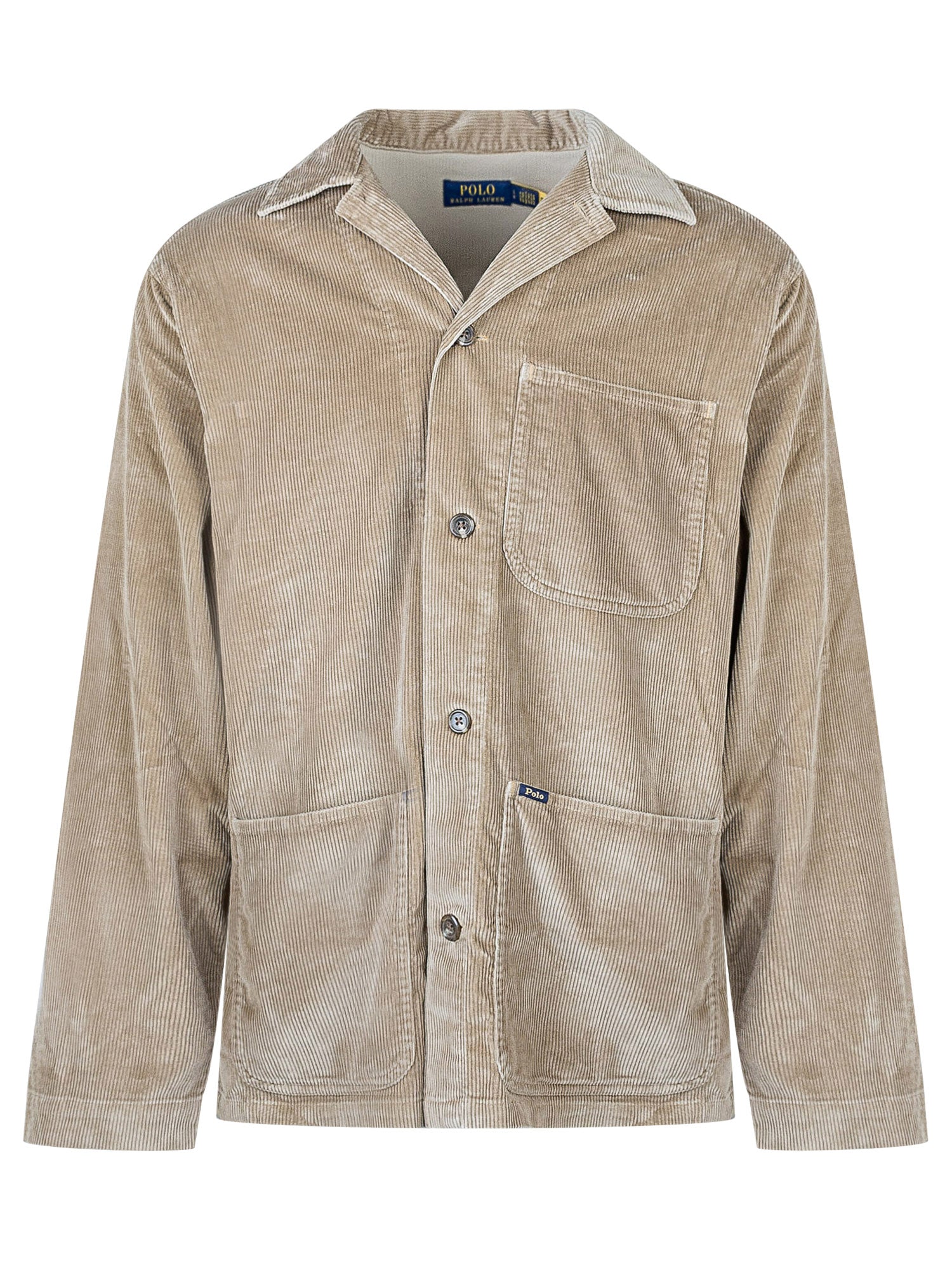 Giacca Polo Ralph Lauren in velluto a coste beige con tasche applicate e chiusura con bottoni. Dal taglio rilassato, unisce eleganza casual e fascino vintage.