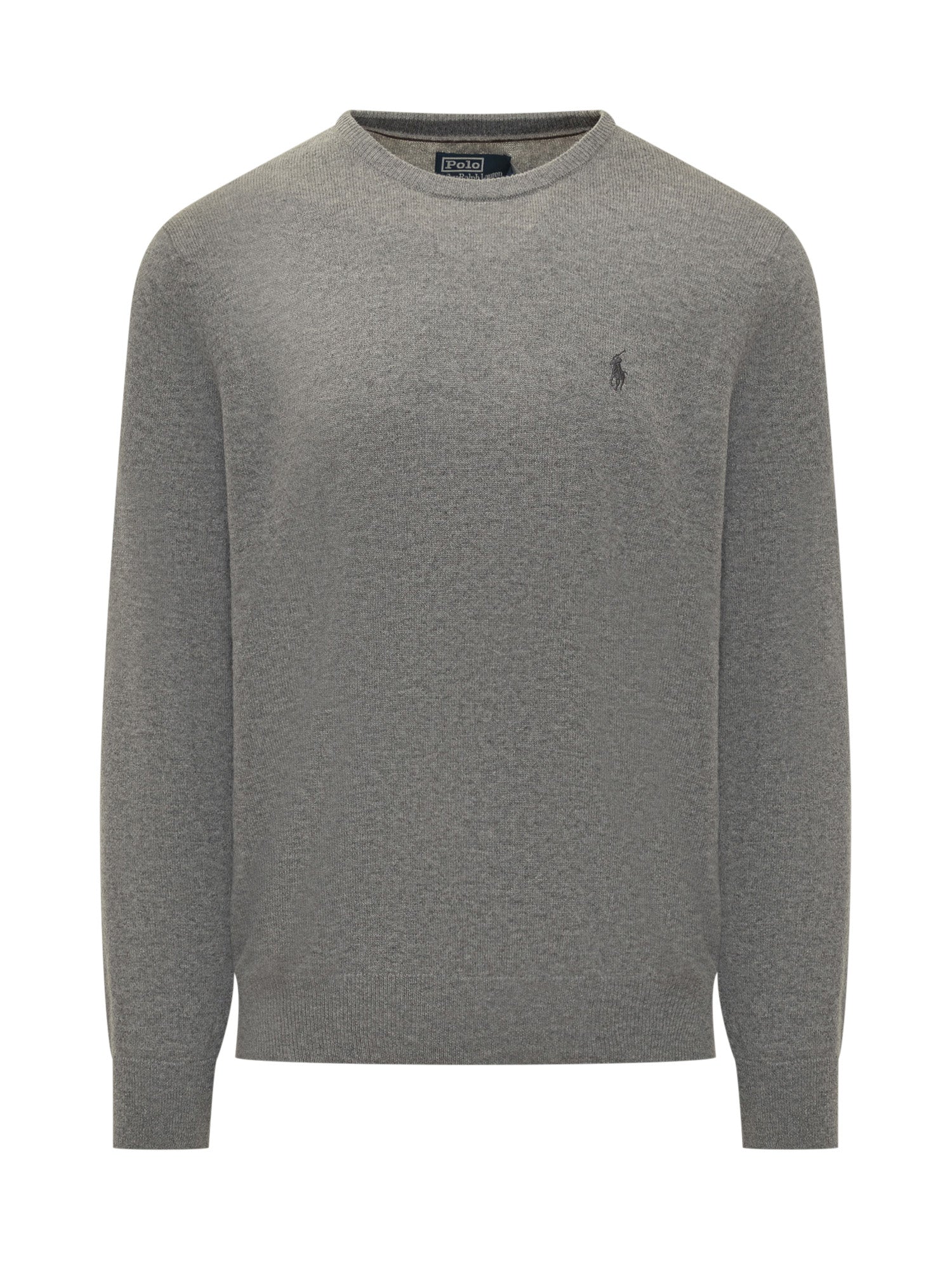 Maglione Polo Ralph Lauren in lana grigia con scollo girocollo e logo ricamato sul petto.