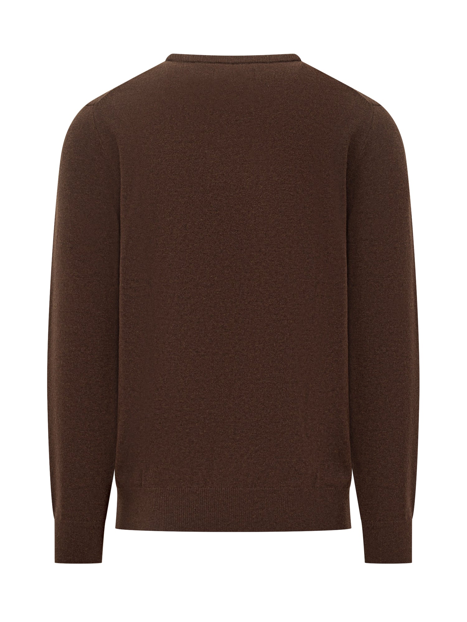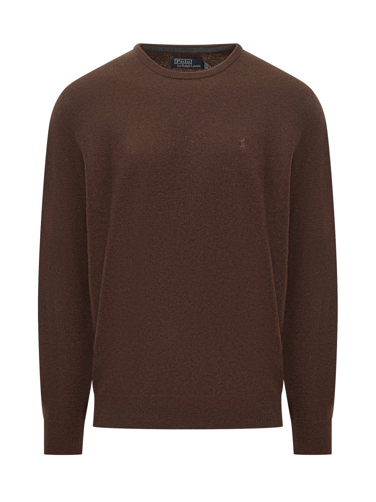 Maglione Polo Ralph Lauren in lana marrone con scollo girocollo e logo ricamato sul petto.