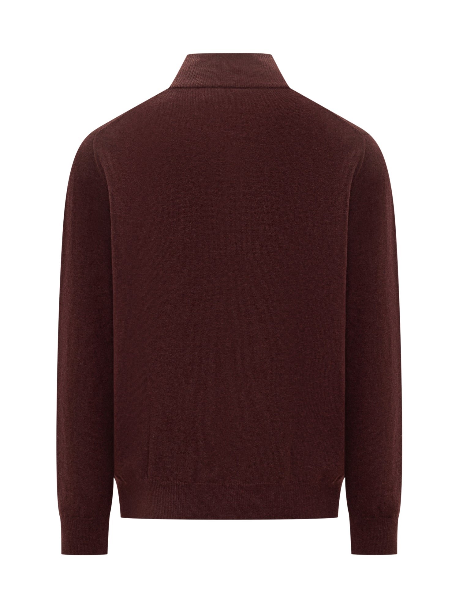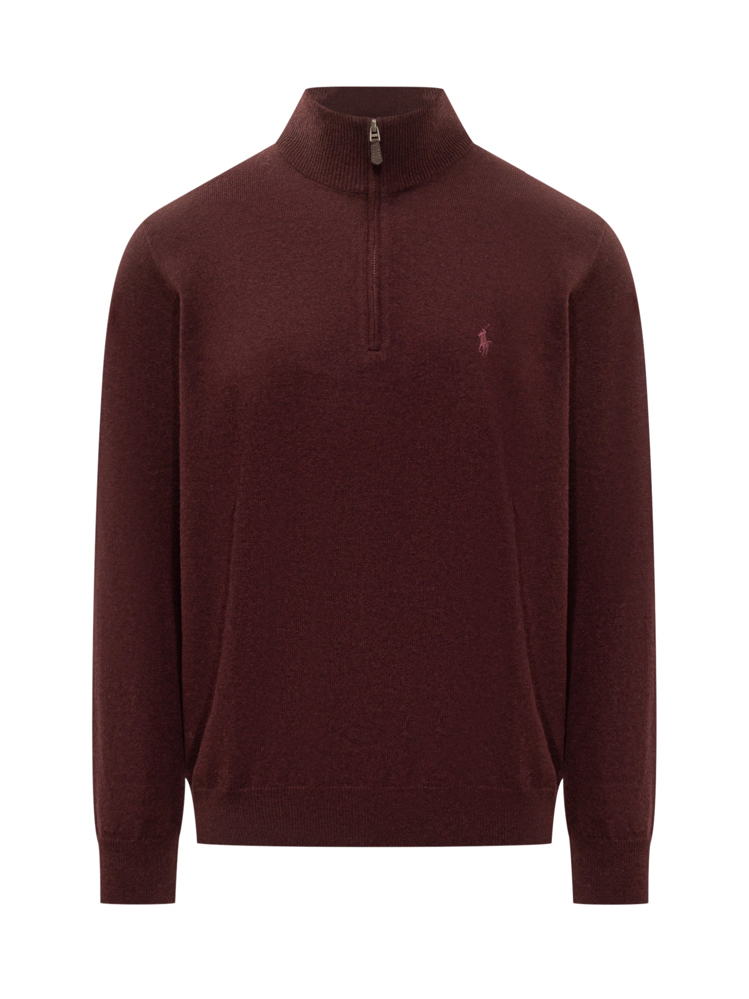 Maglione Polo Ralph Lauren in lana bordeaux con collo alto e chiusura a mezza zip.