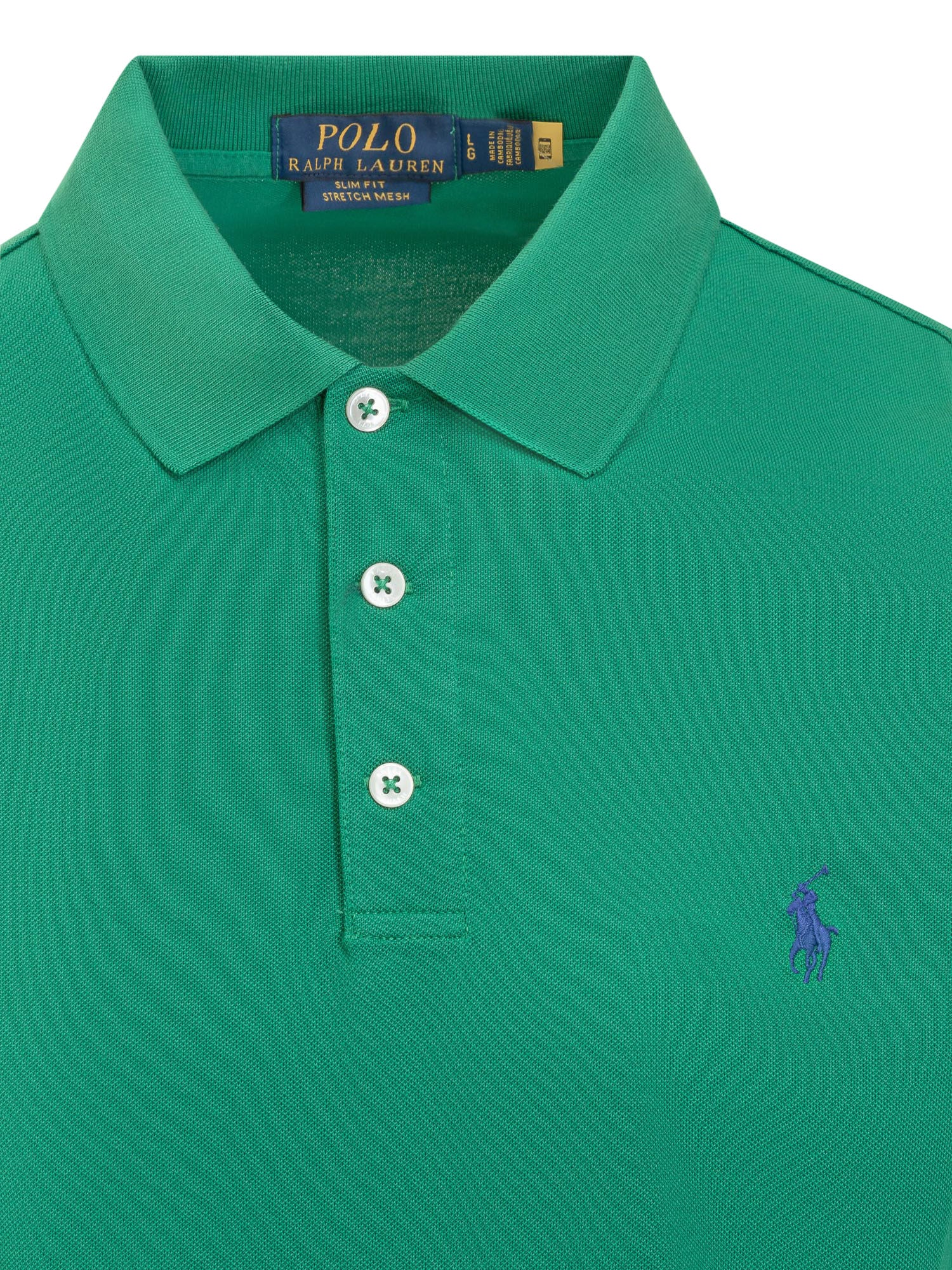 Polo con maniche corte. Vestibilità slim. Collo a camicia. Allacciatura sul davanti con bottoni. Logo frontale.