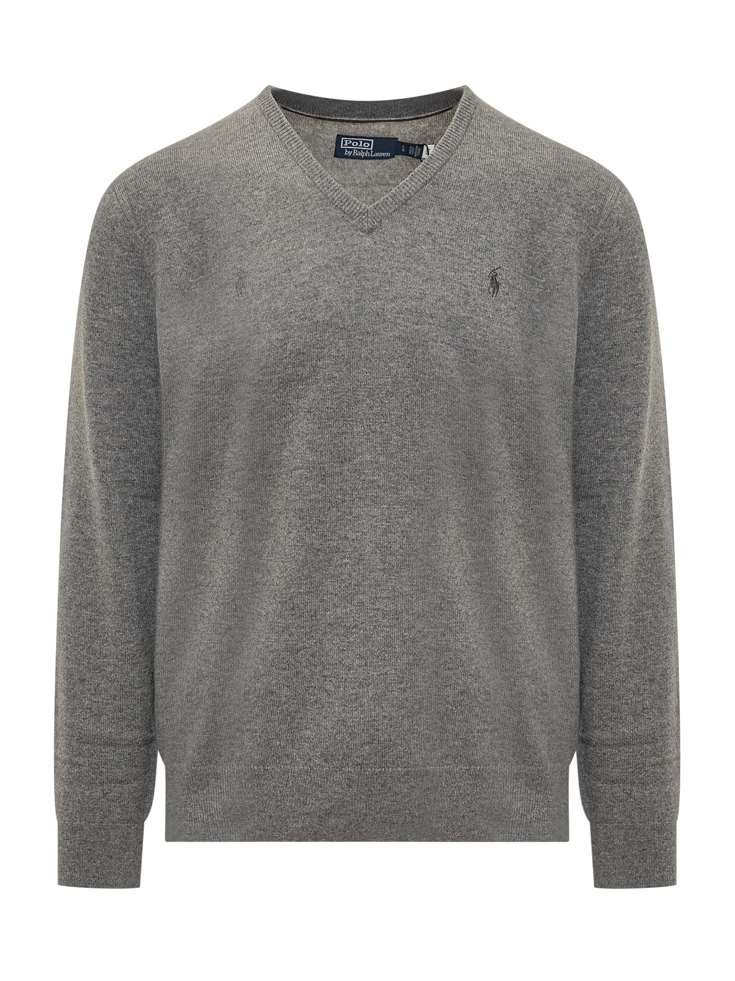 Pullover a maniche lunghe con scollo a V. Orli a costine. Logo ricamato sul davanti.