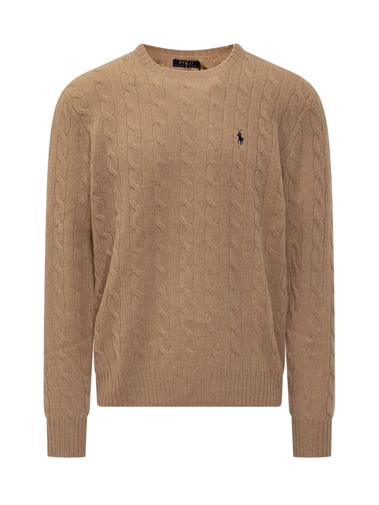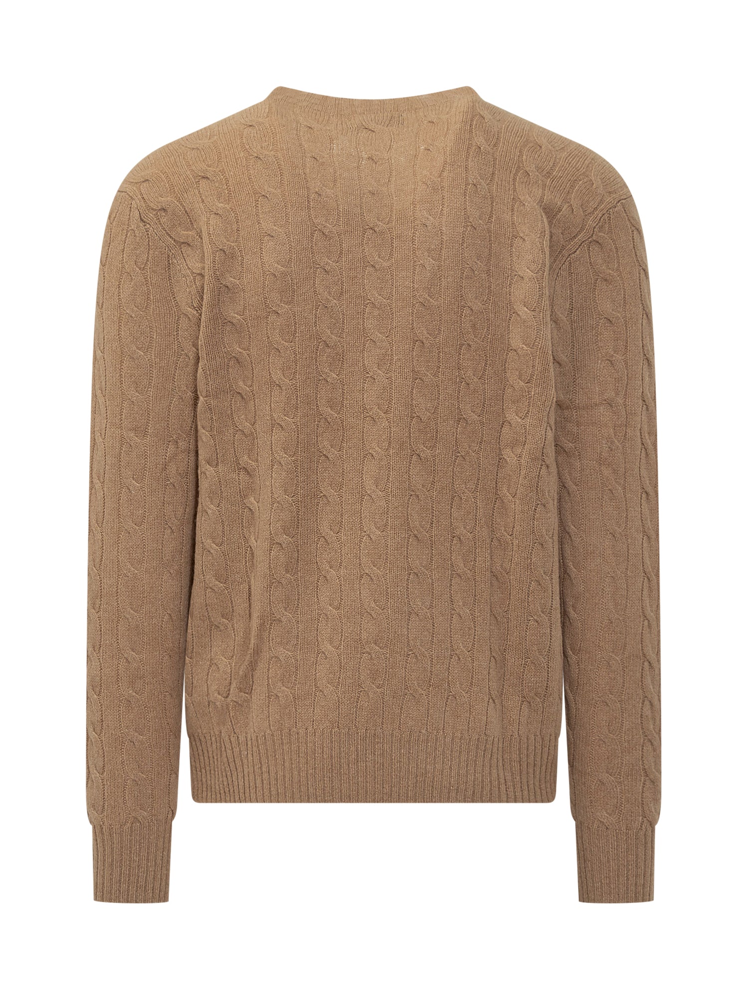 Pullover girocollo. Orli a costine. Lavorazione in maglia intrecciata. Logo ricamato sul davanti.