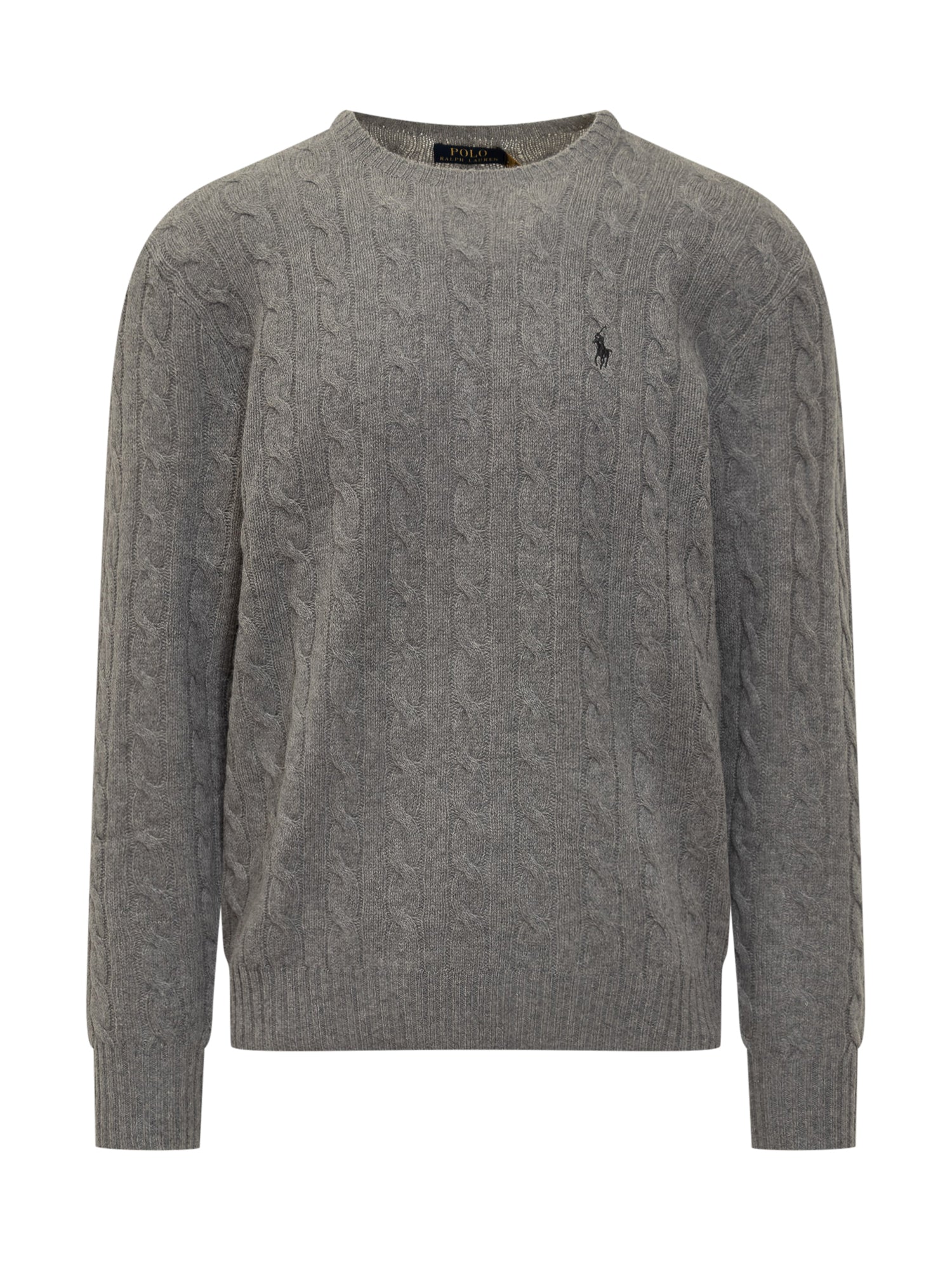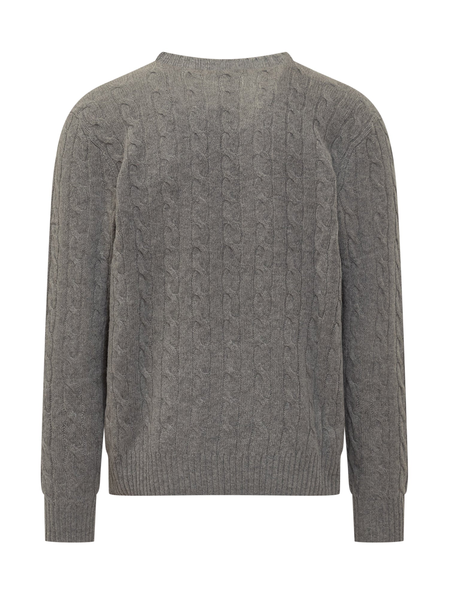 Pullover girocollo. Orli a costine. Lavorazione in maglia intrecciata. Logo ricamato sul davanti.