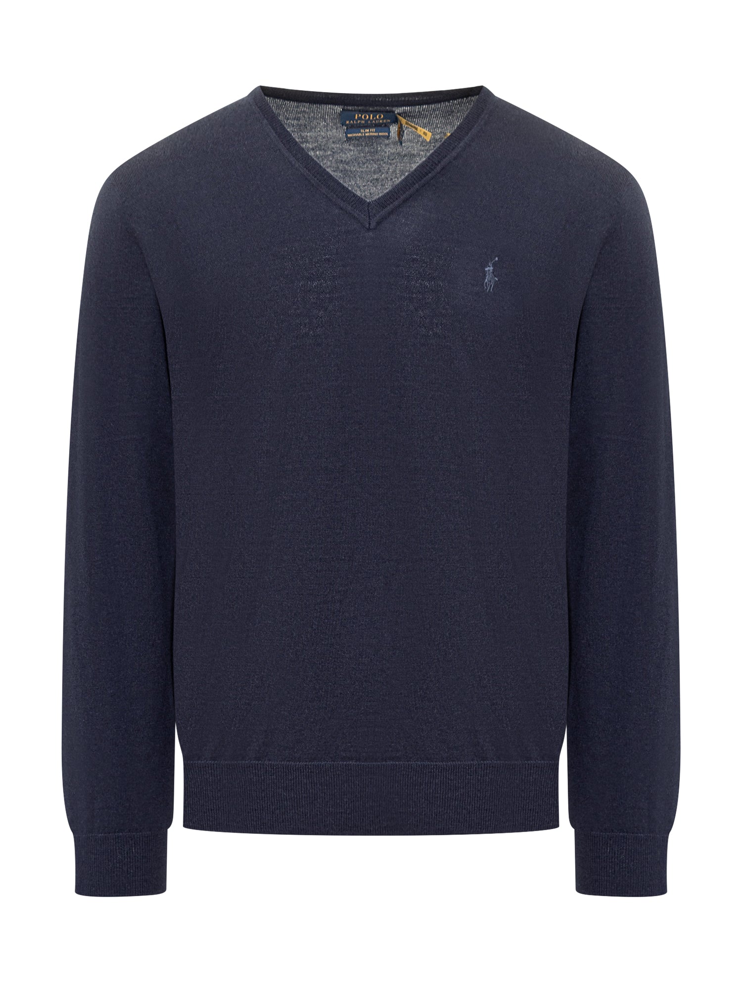 Pullover a maniche lunghe con scollo a V. Orli a costine. Logo ricamato sul davanti.