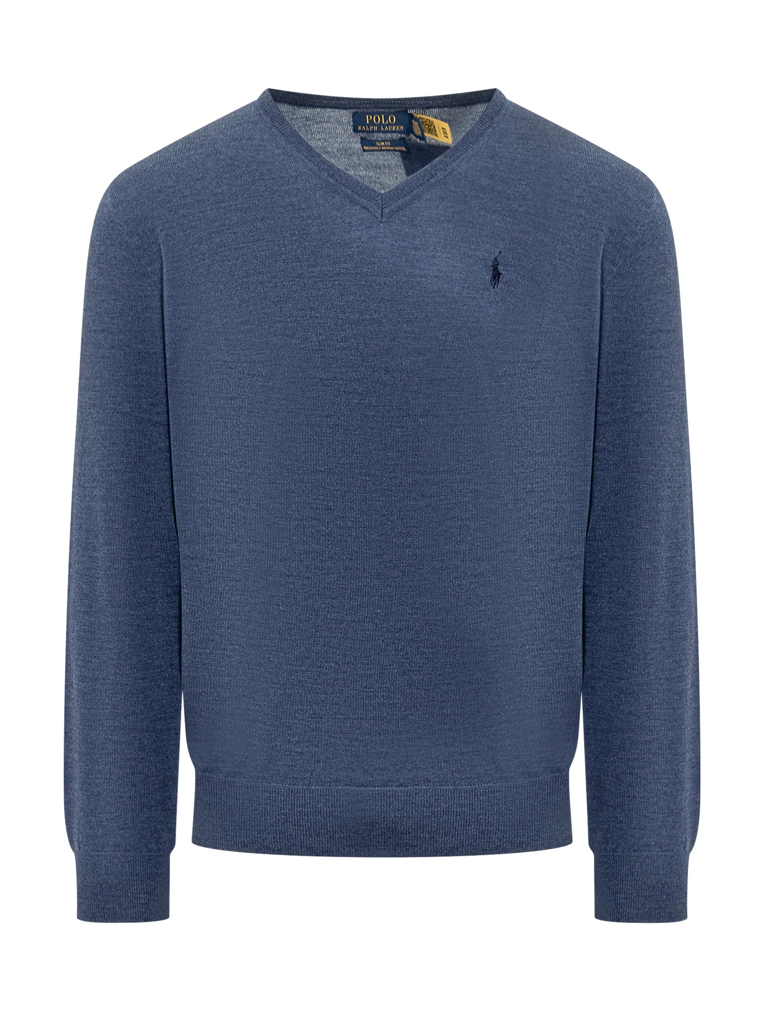 Pullover a maniche lunghe con scollo a V. Orli a costine. Logo ricamato sul davanti.