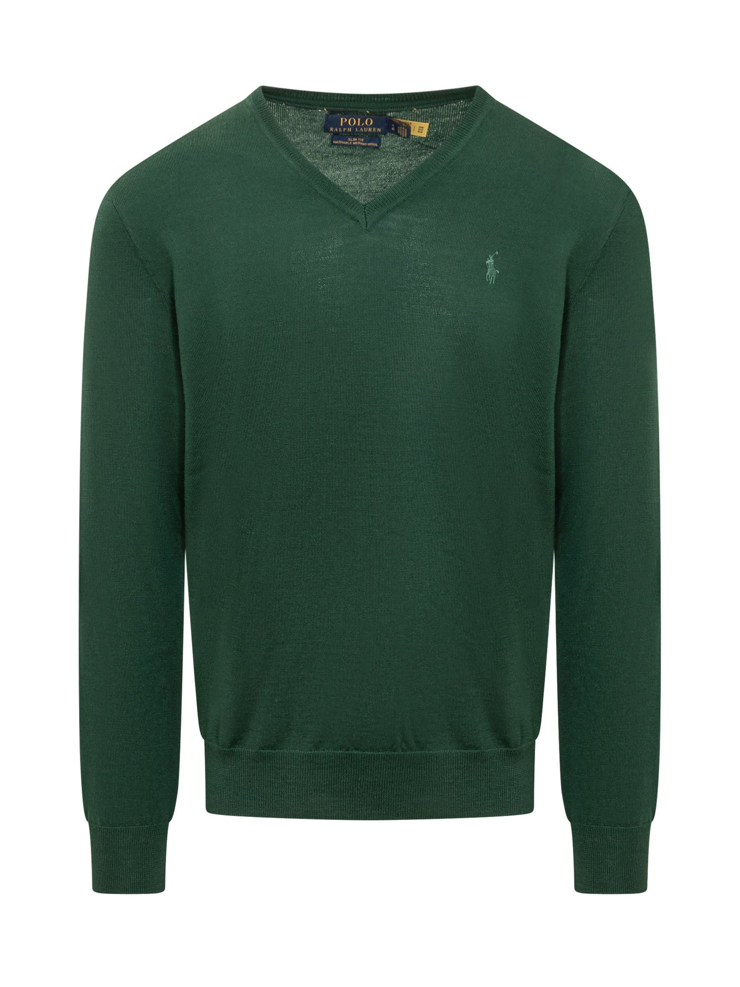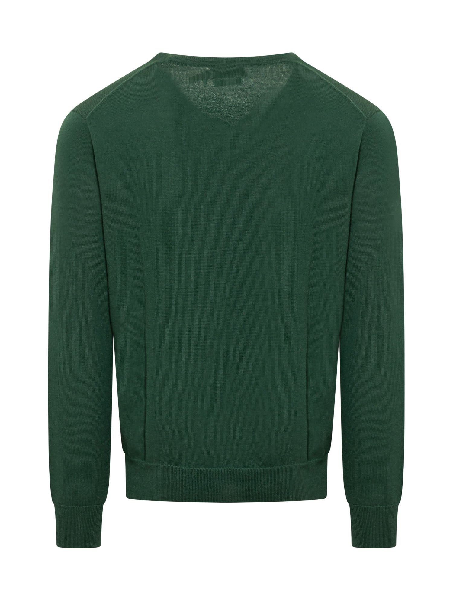 Pullover verde a maniche lunghe. Scollo a V. Logo ricamato sul petto. Collo, polsi e fondo a costine. Slim fit.