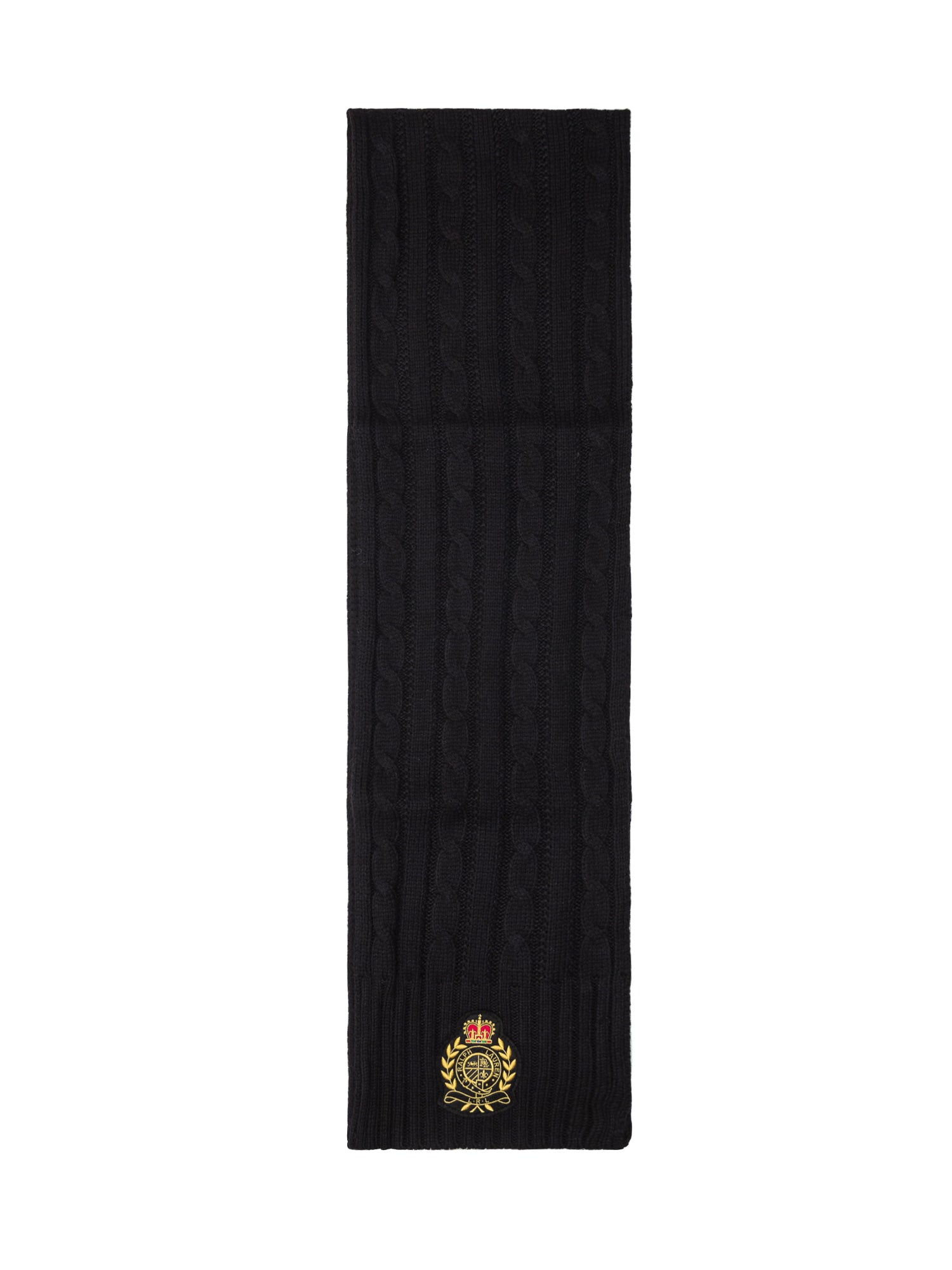 Sciarpa nera. Lavorazione a trecce. Logo patch sul fondo.