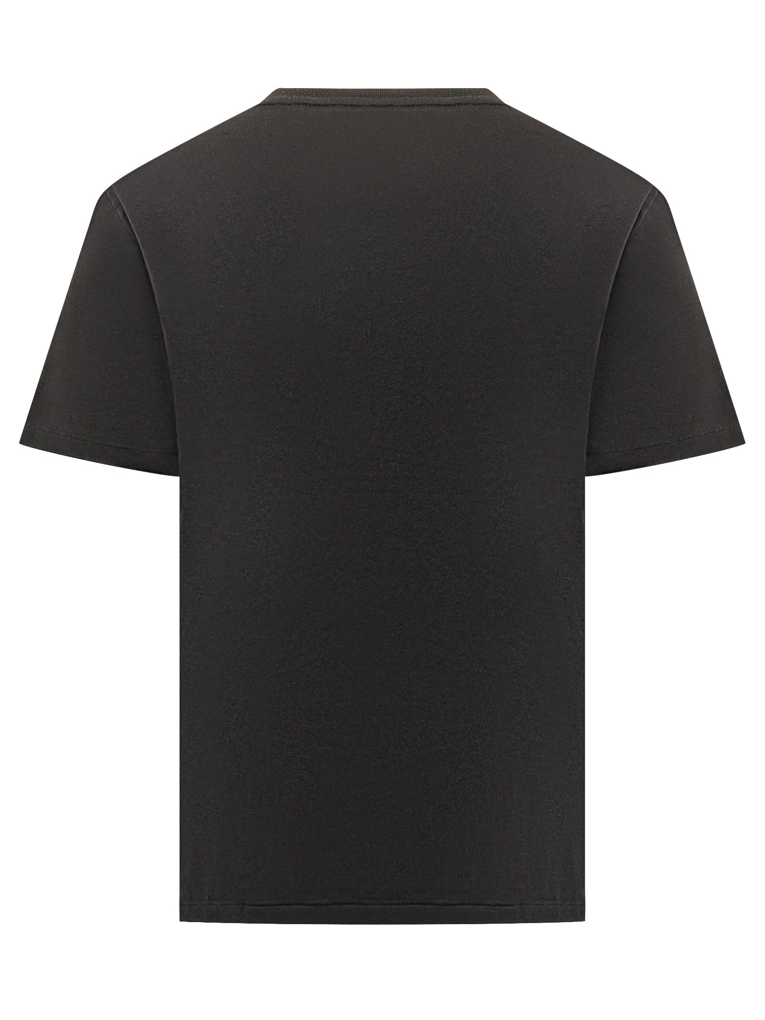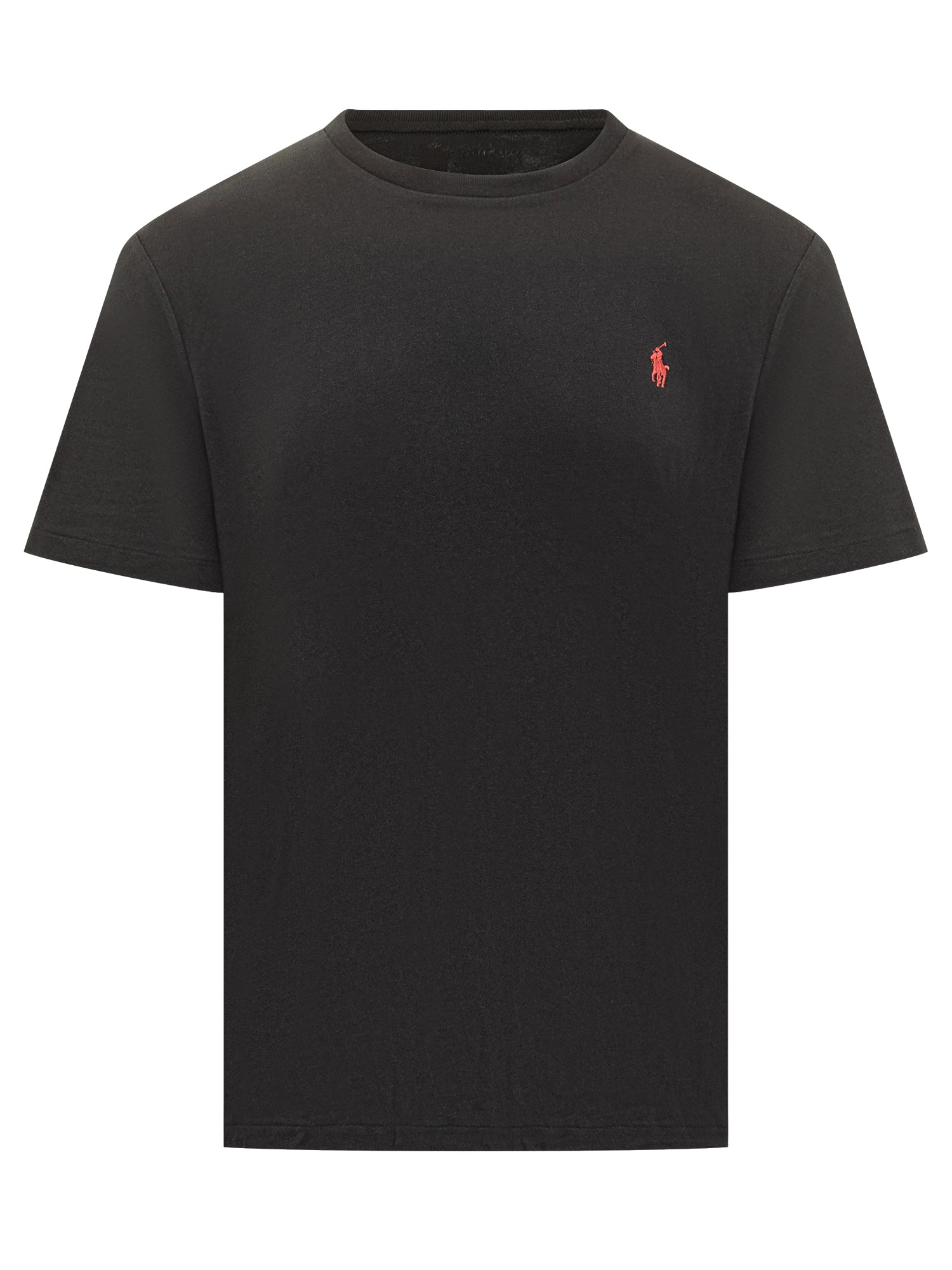 T-shirt da uomo in cotone nero con girocollo, maniche corte e iconico logo rosso ricamato sul petto.