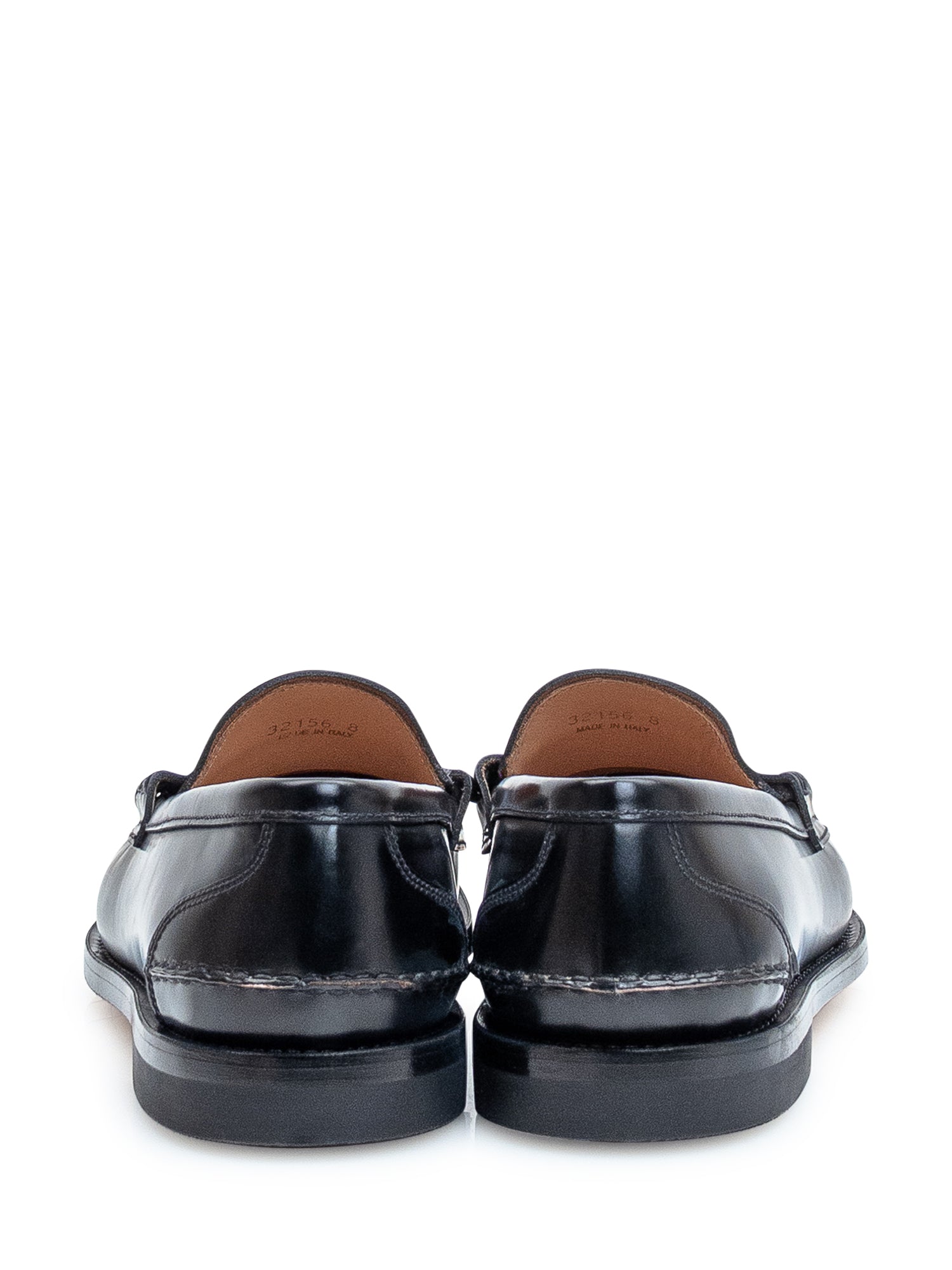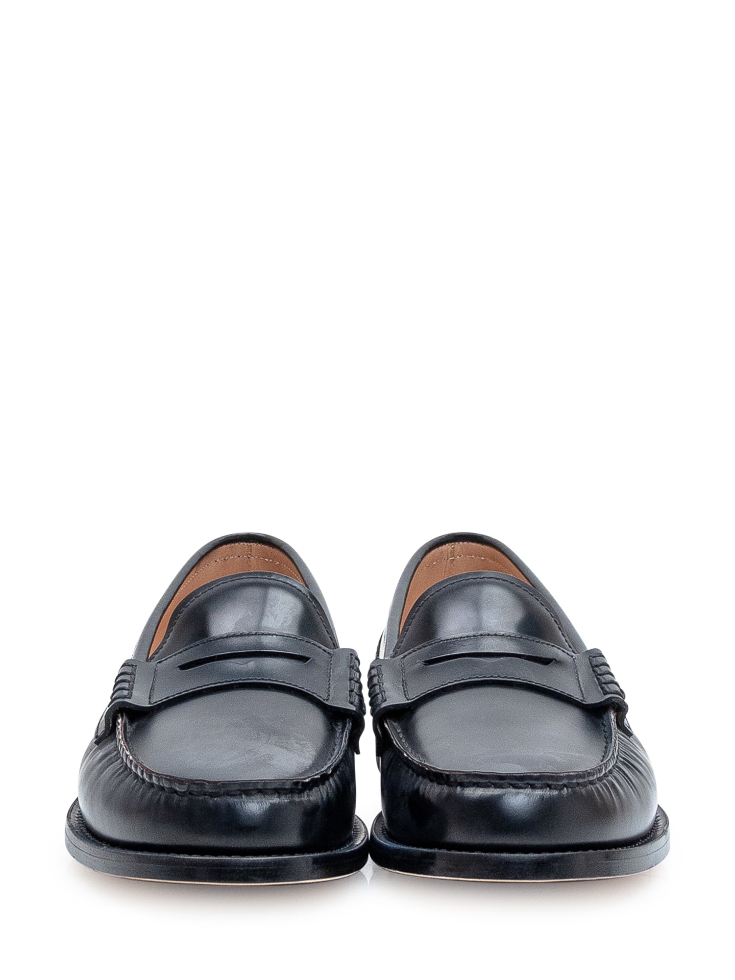 Mocassino nero in pelle. Cuciture a vista. Suola in pelle e gomma.