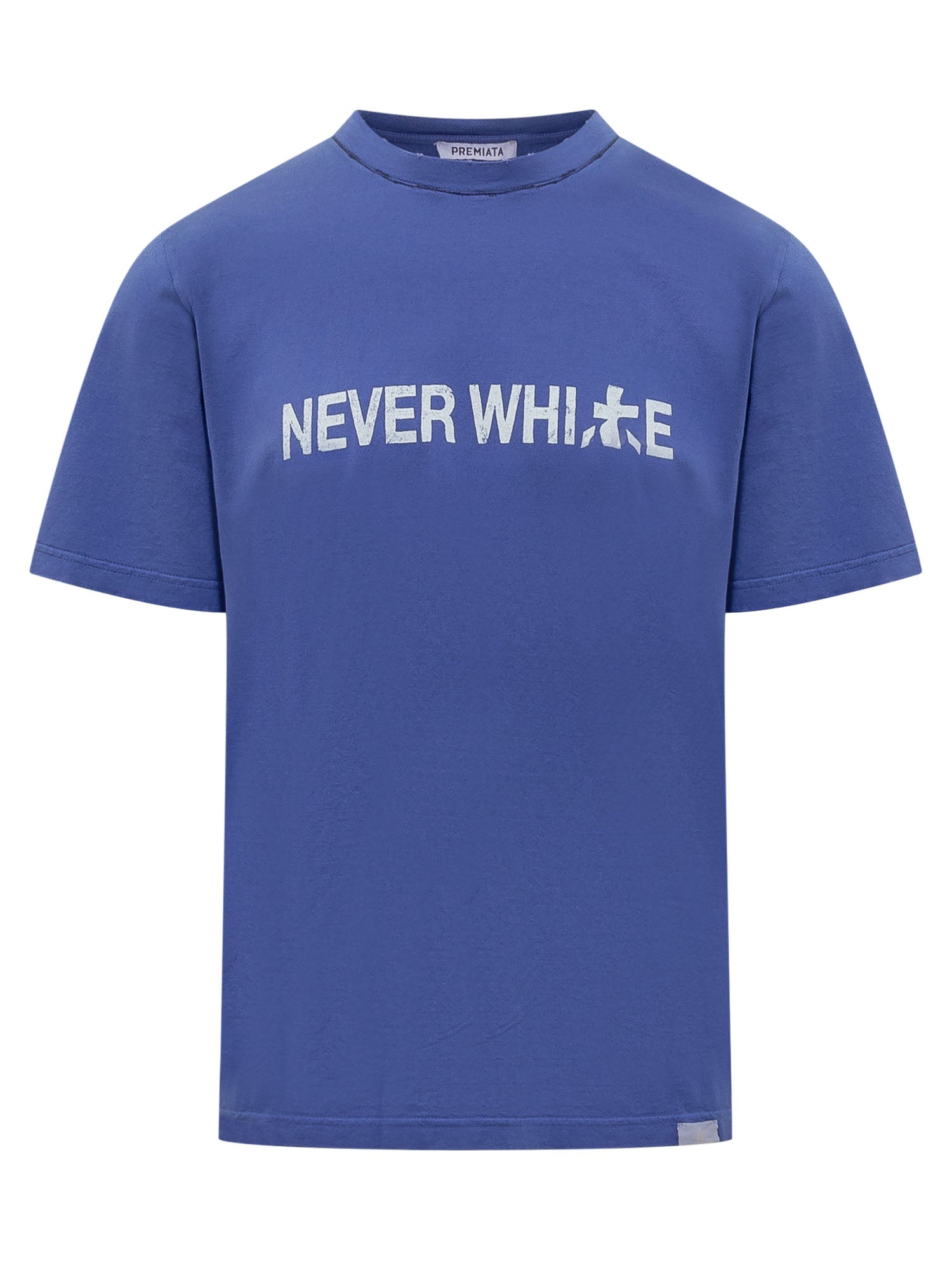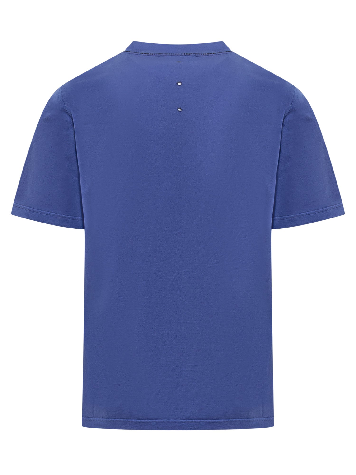 T-shirt a maniche corte. Girocollo. Orli a costine con cuciture a contrasto. Lettering stampato sul davanti. Targhetta logo sul fondo. Dettagli a contrasto sul retro.
