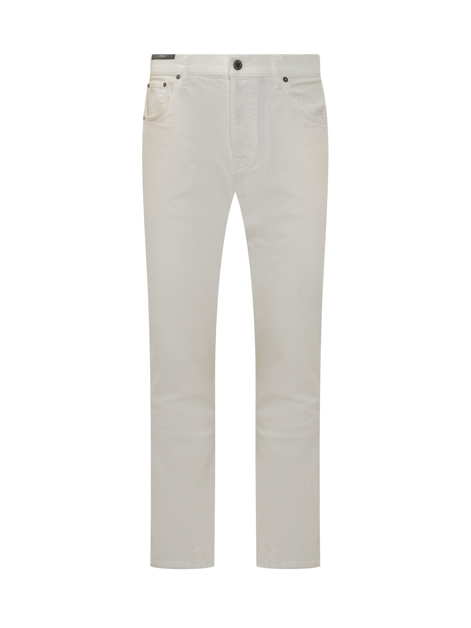 Jeans PT Torino modello Breakbeat in denim color avorio. Caratterizzato da costruzione cinque tasche, vestibilità regolare e tessuto stretch per il massimo comfort.
