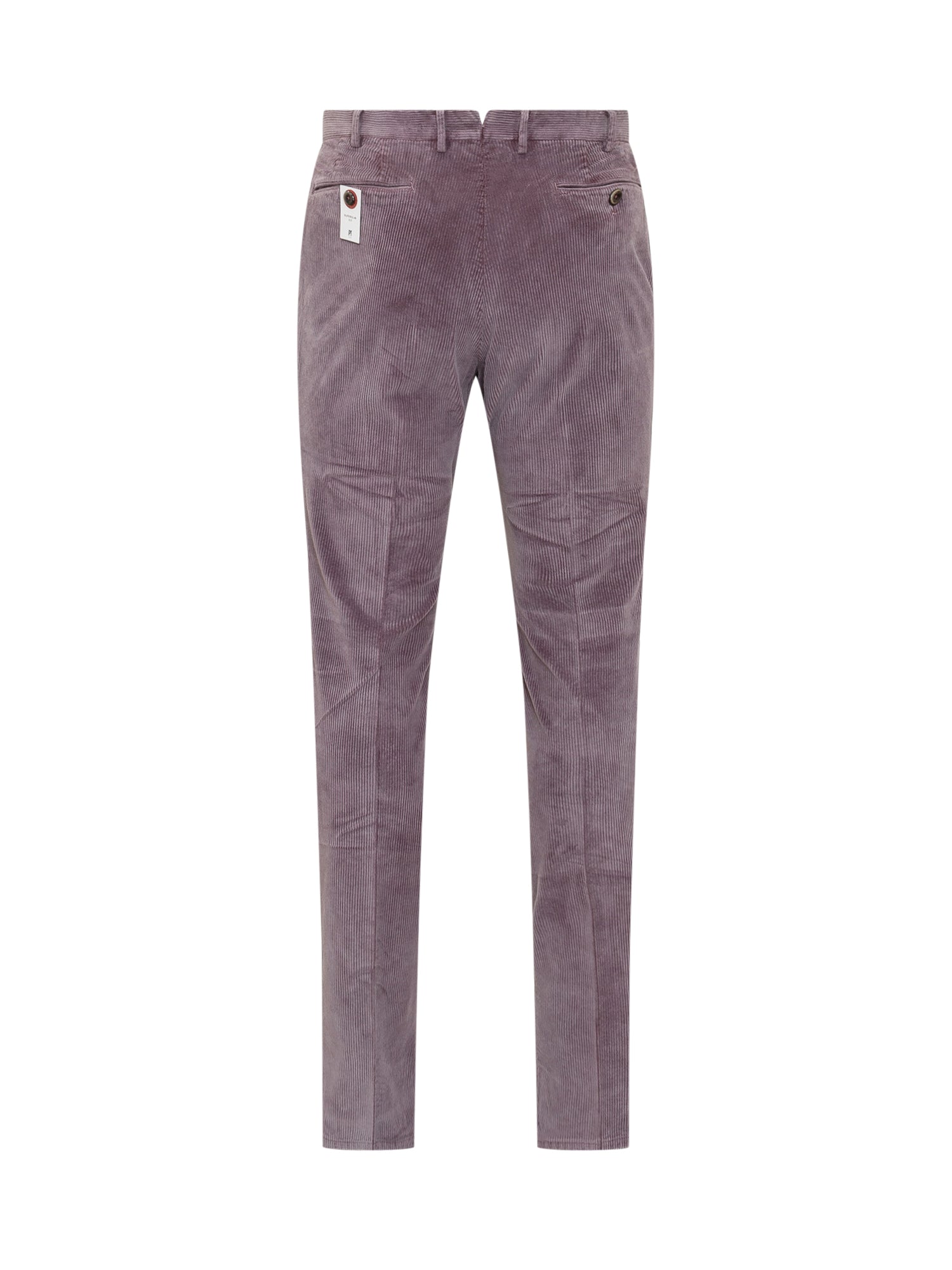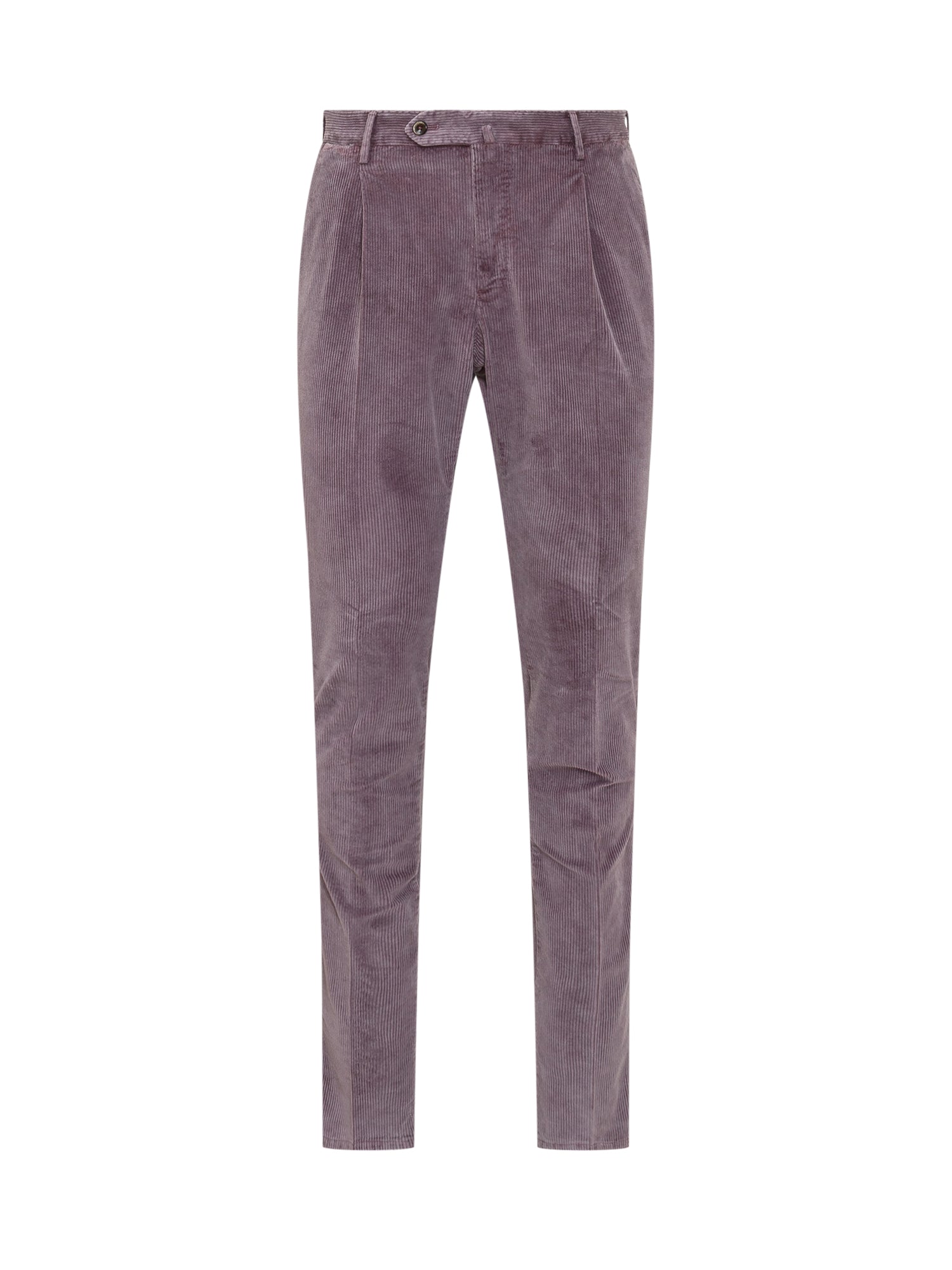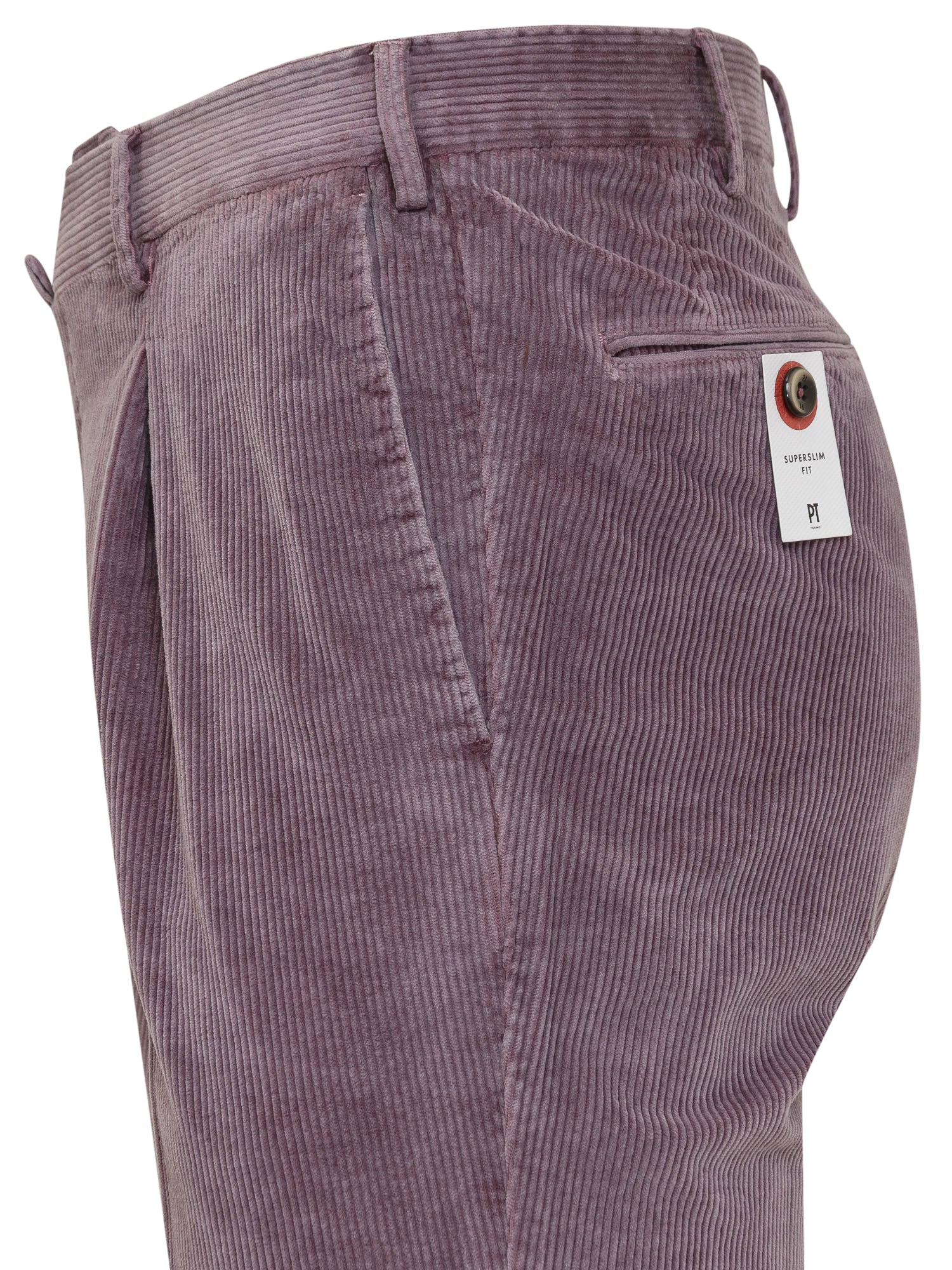 Pantalone lungo in velluto a coste. Superslim fit. Chiusura con zip e bottoni. Tre tasche a filetto, due con bottone. Passanti per cintura.