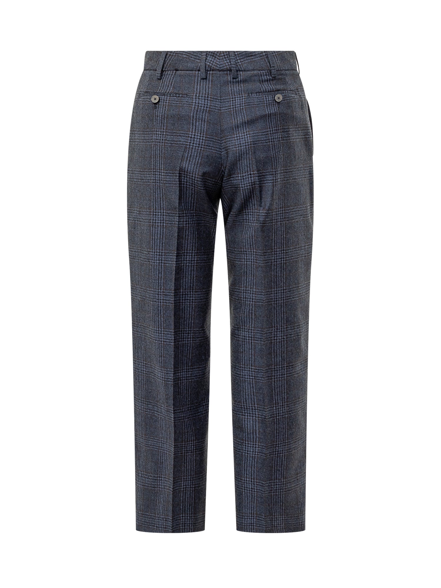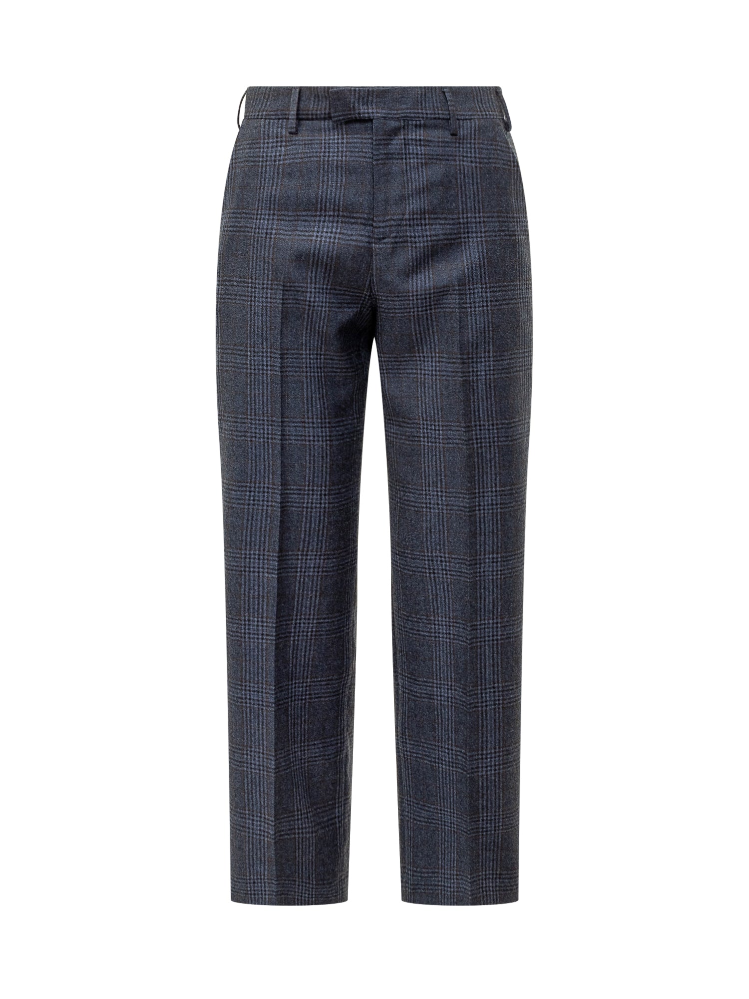 Pantaloni PT Torino in lana con motivo a quadri blu e grigio. Vestibilità dritta, chiusura con bottone e zip, passanti in vita.