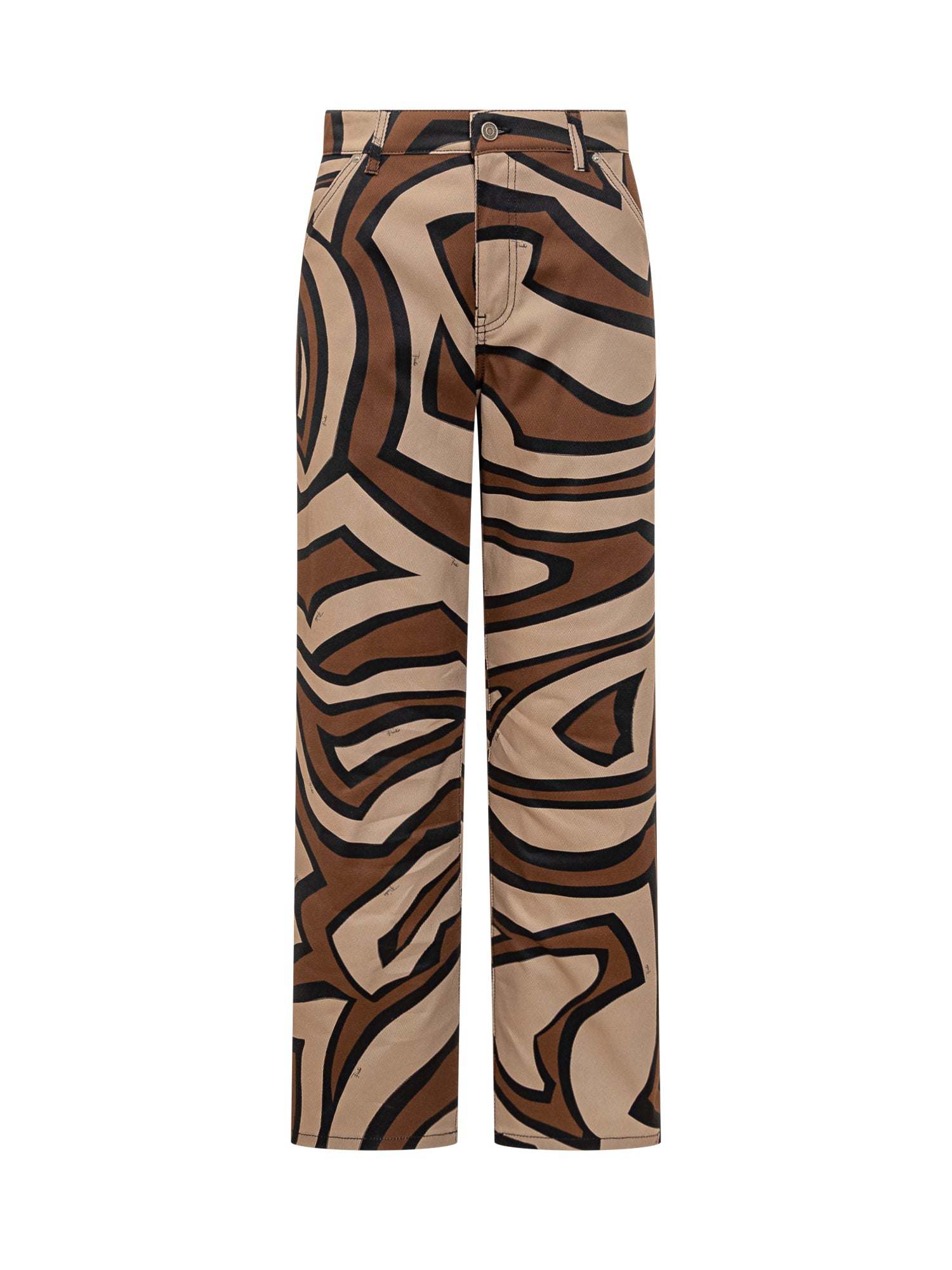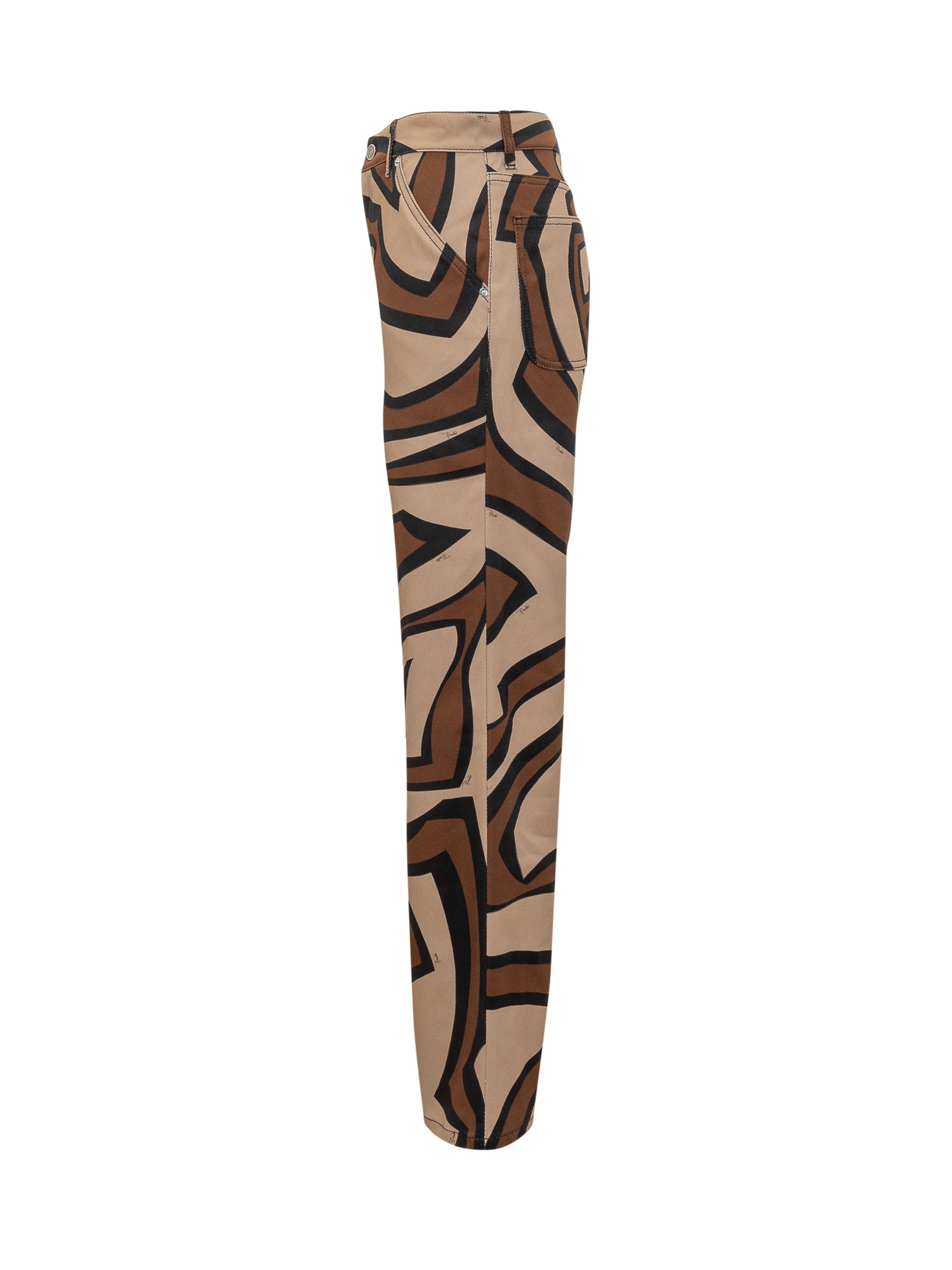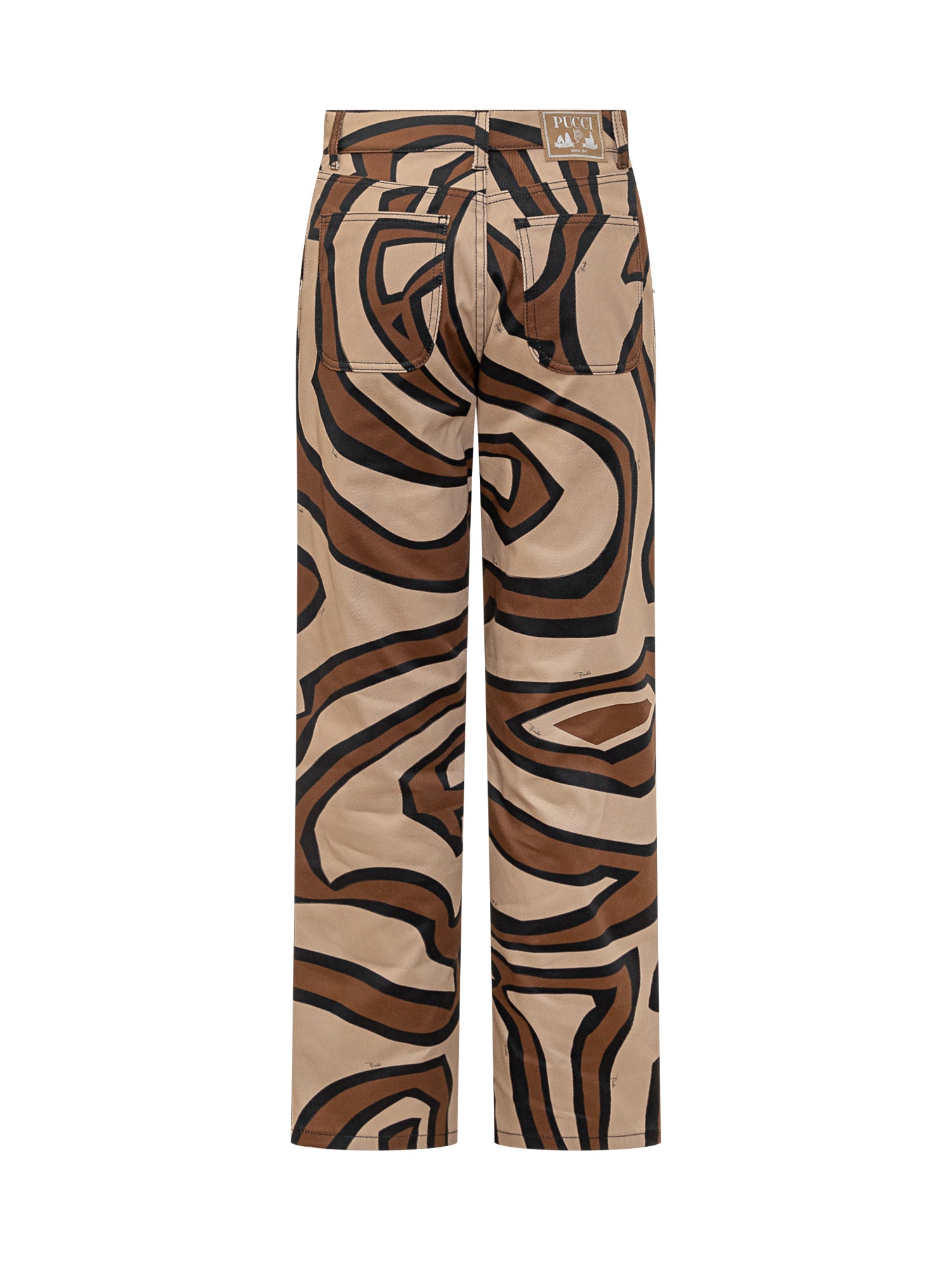 Pantaloni Pucci in cotone con iconica stampa geometrica nei toni del marrone e beige. Linea dritta e vita media.