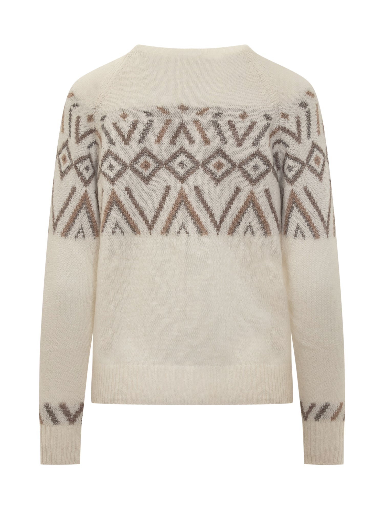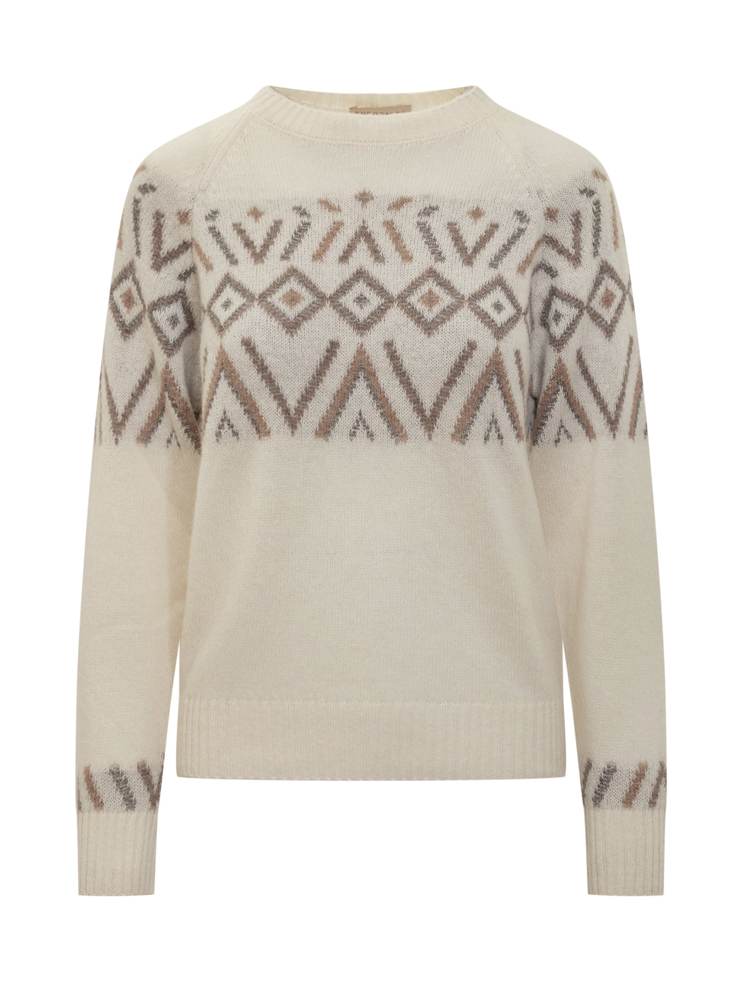 Maglione Puro Tatto in morbida lana color panna con motivo jacquard nei toni neutri.