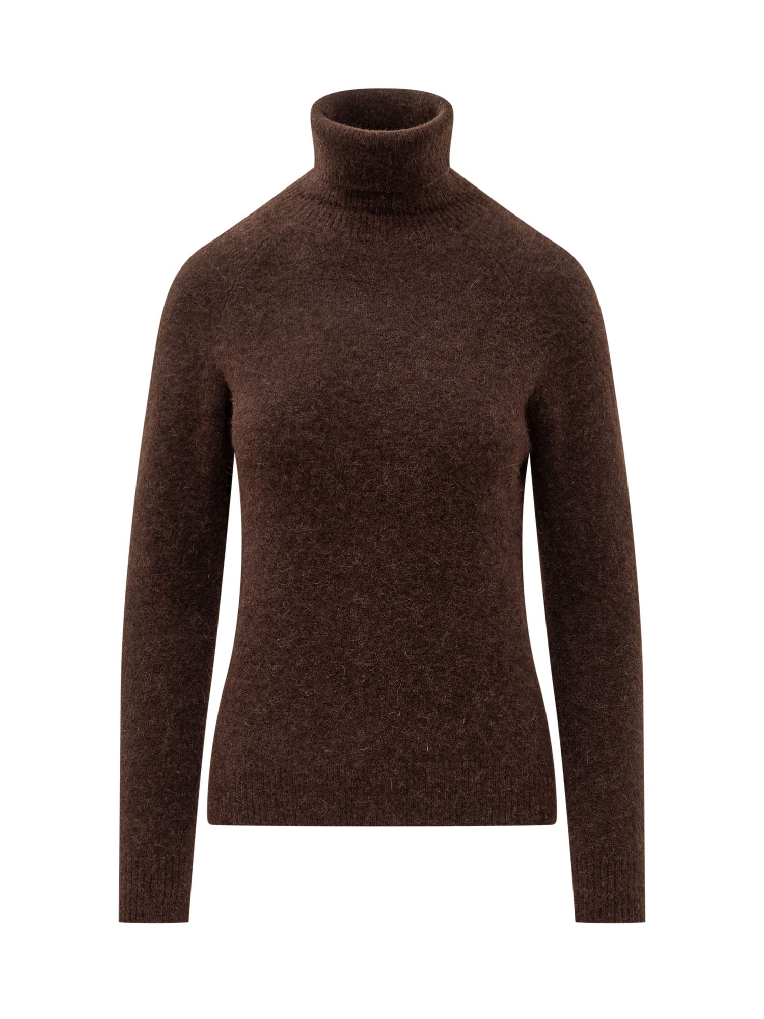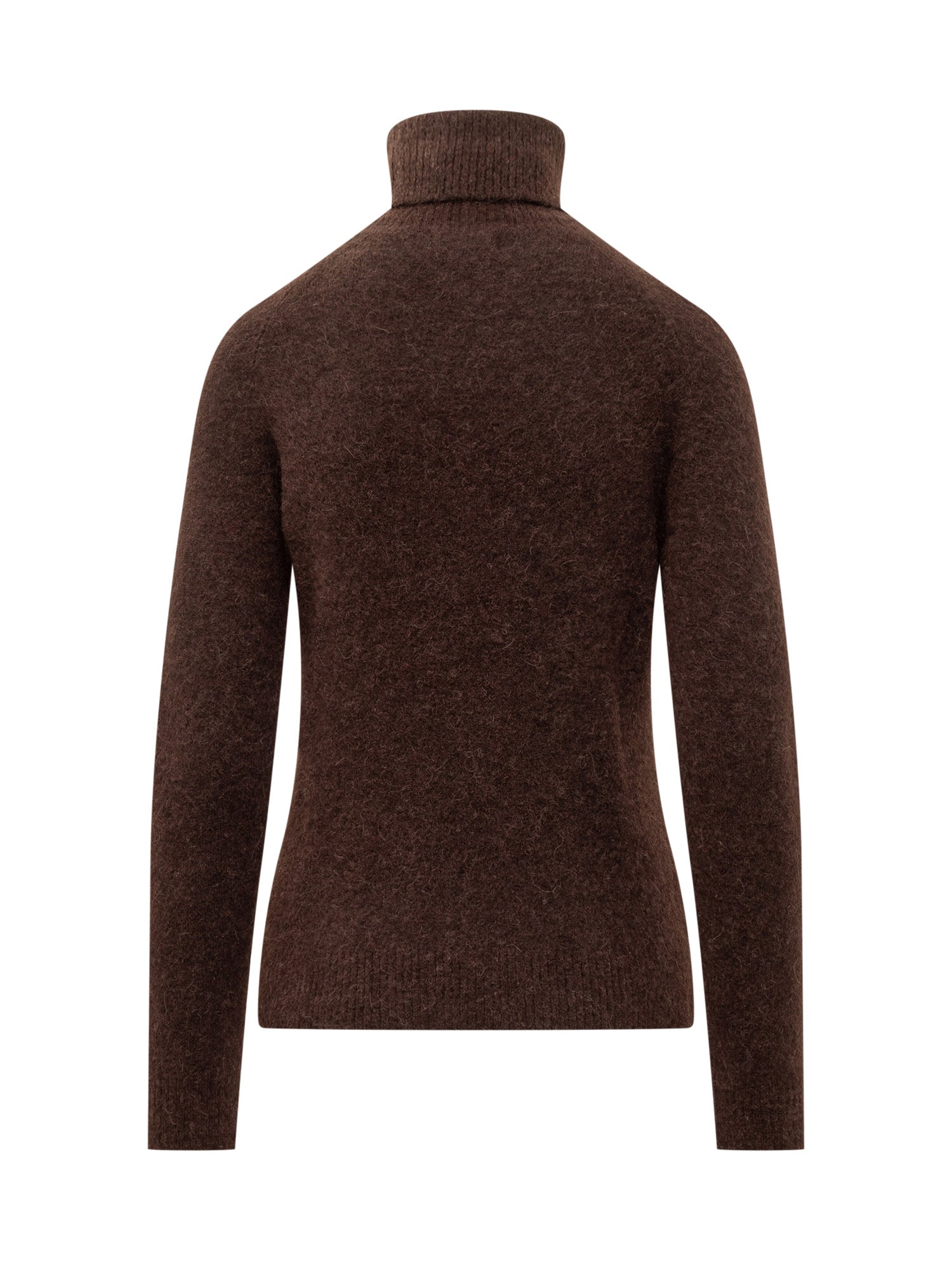 Dolcevita Quilisia marrone dal design essenziale, con lavorazione morbida e collo alto avvolgente.