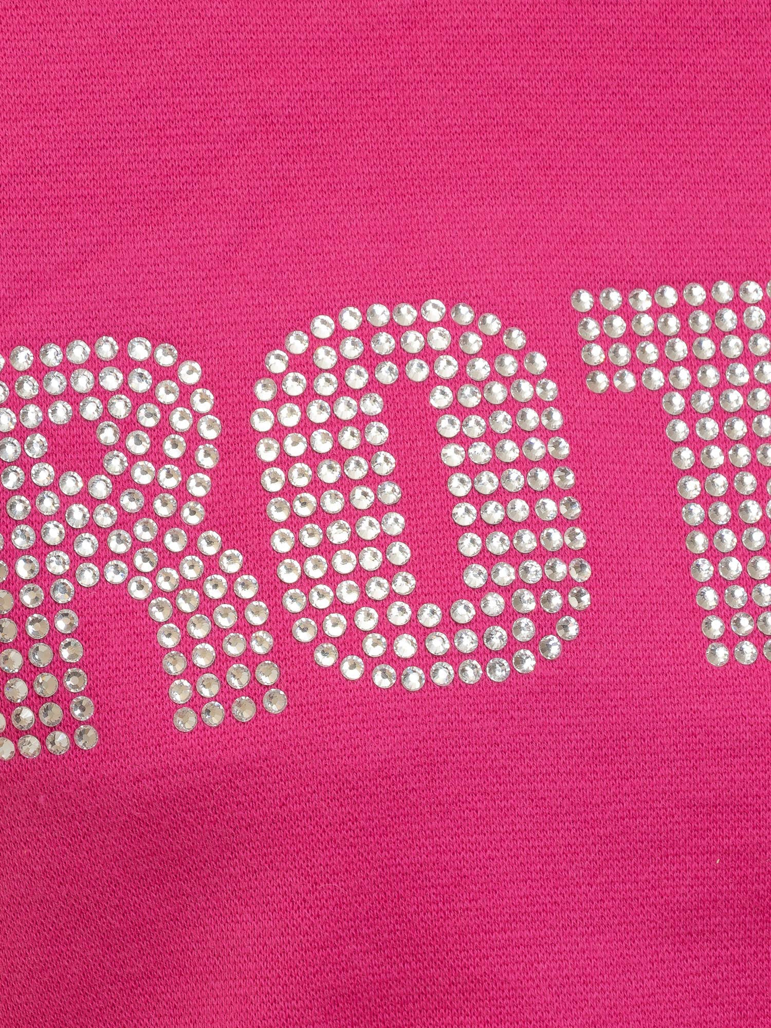 Maglione cropped a maniche lunghe. Girocollo. Collo, fondo e polsi a costine. Maxi logo patch in strass sul davanti.