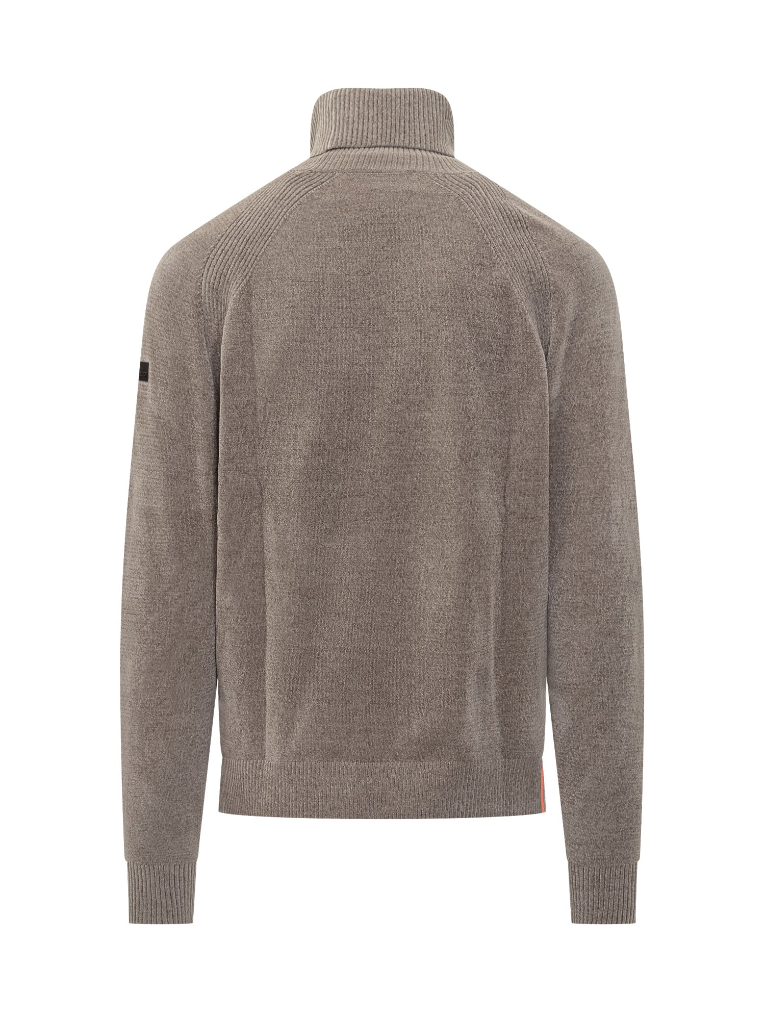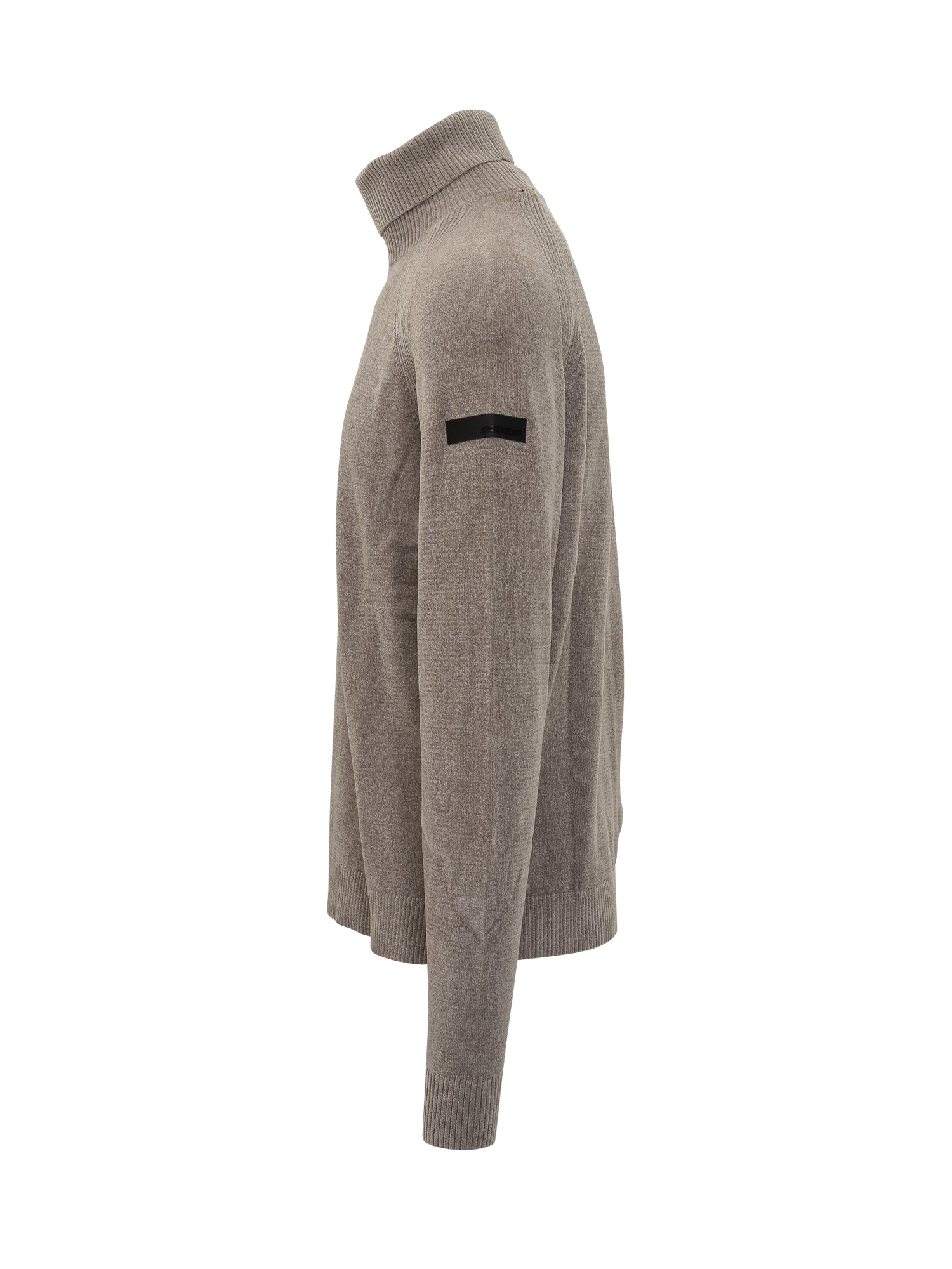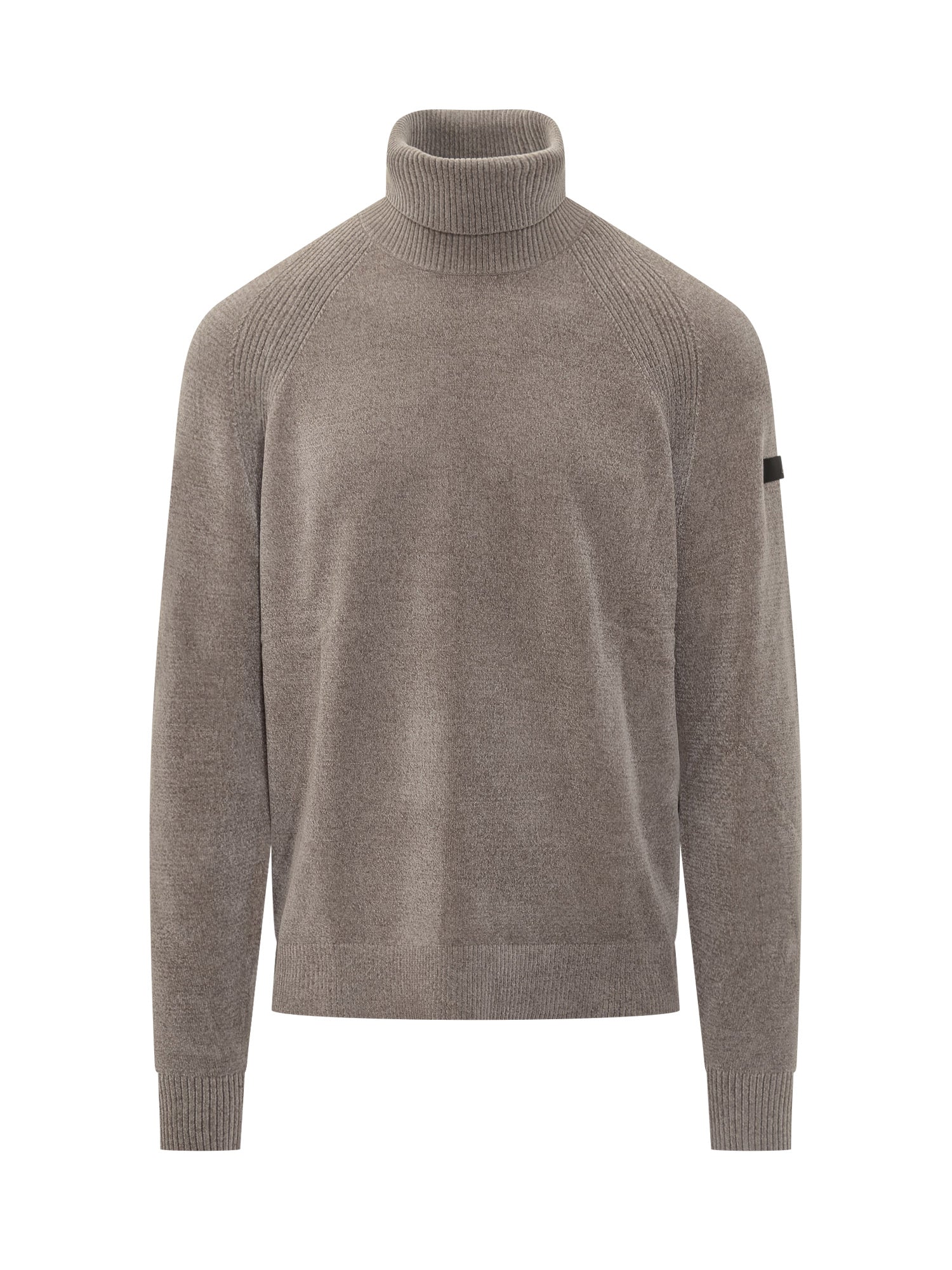 Dolcevita RRD in lana con texture vellutata e inserti a costine su spalle, collo e polsi. Un capo elegante e confortevole.