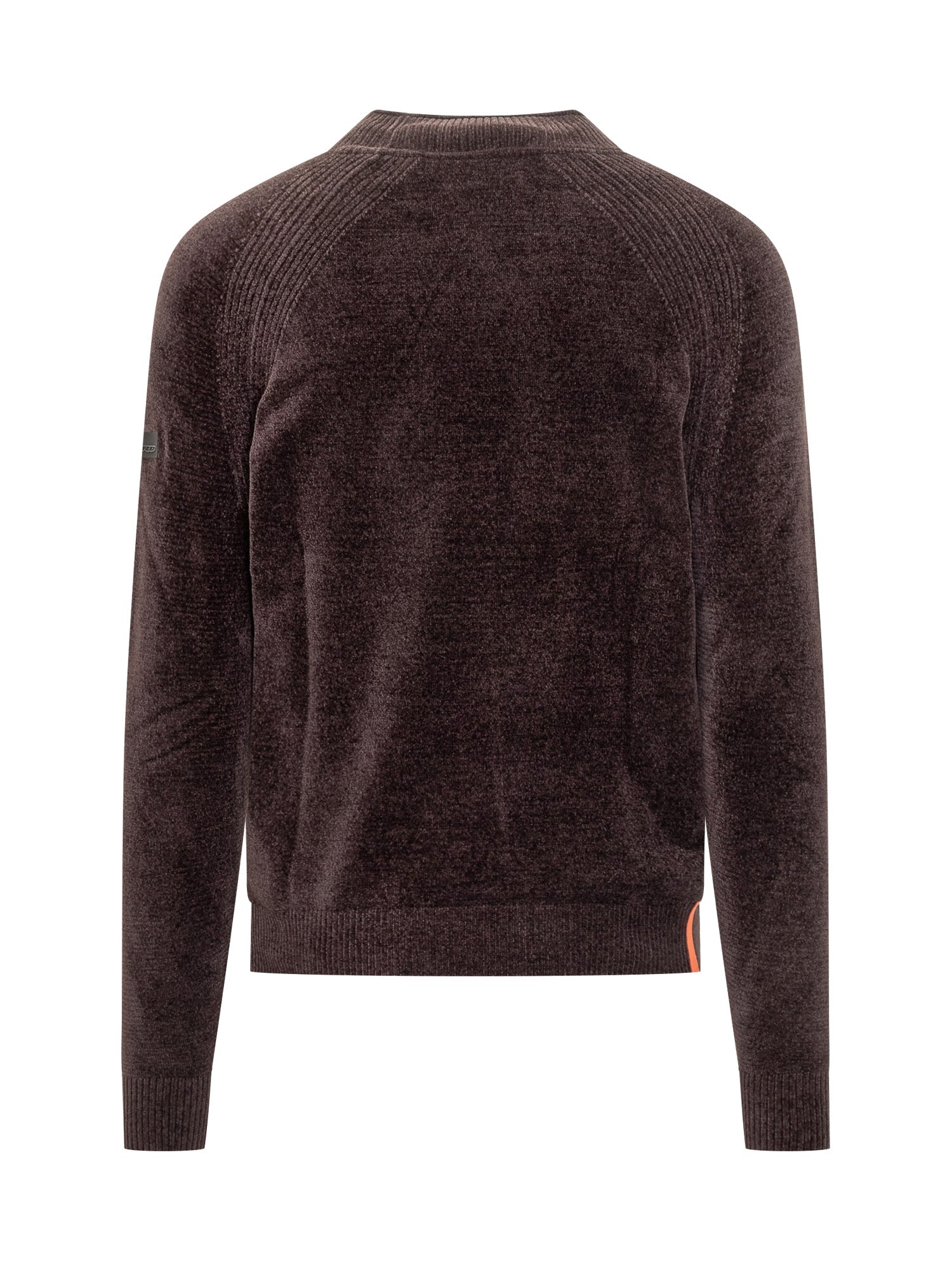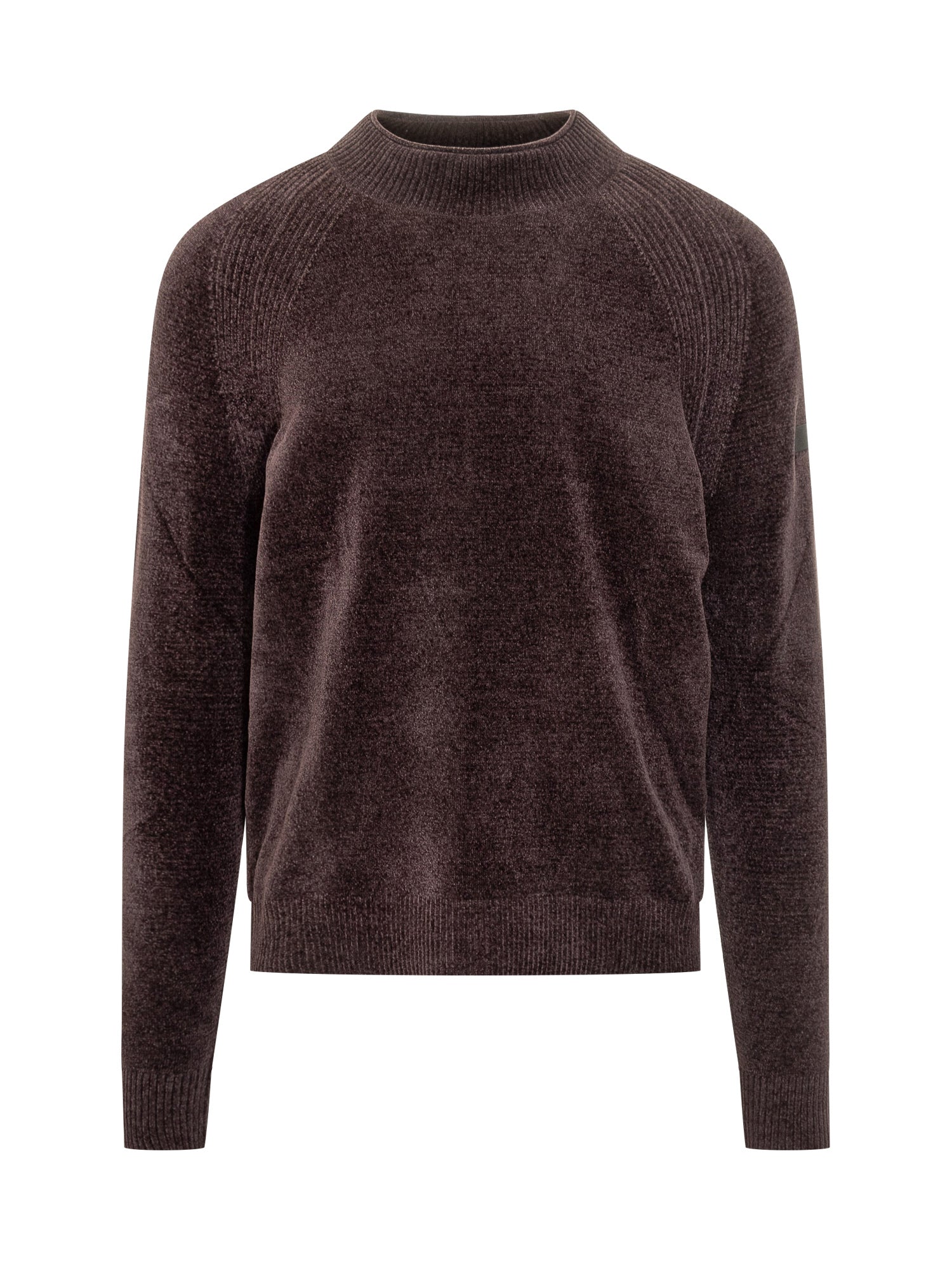 Maglione RRD in lana con finitura morbida effetto velluto. Collo, spalle e polsi a costine.