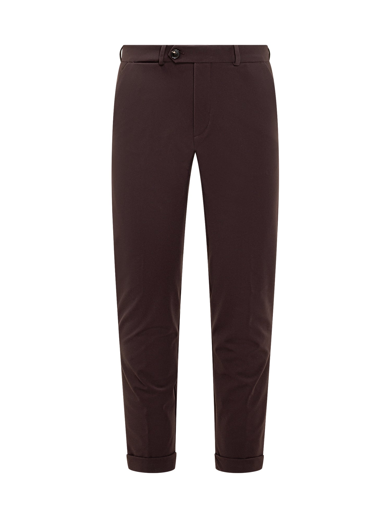 Pantaloni RRD Cult in tessuto tecnico marrone, dal taglio moderno con fondo risvoltato e vita regolare.