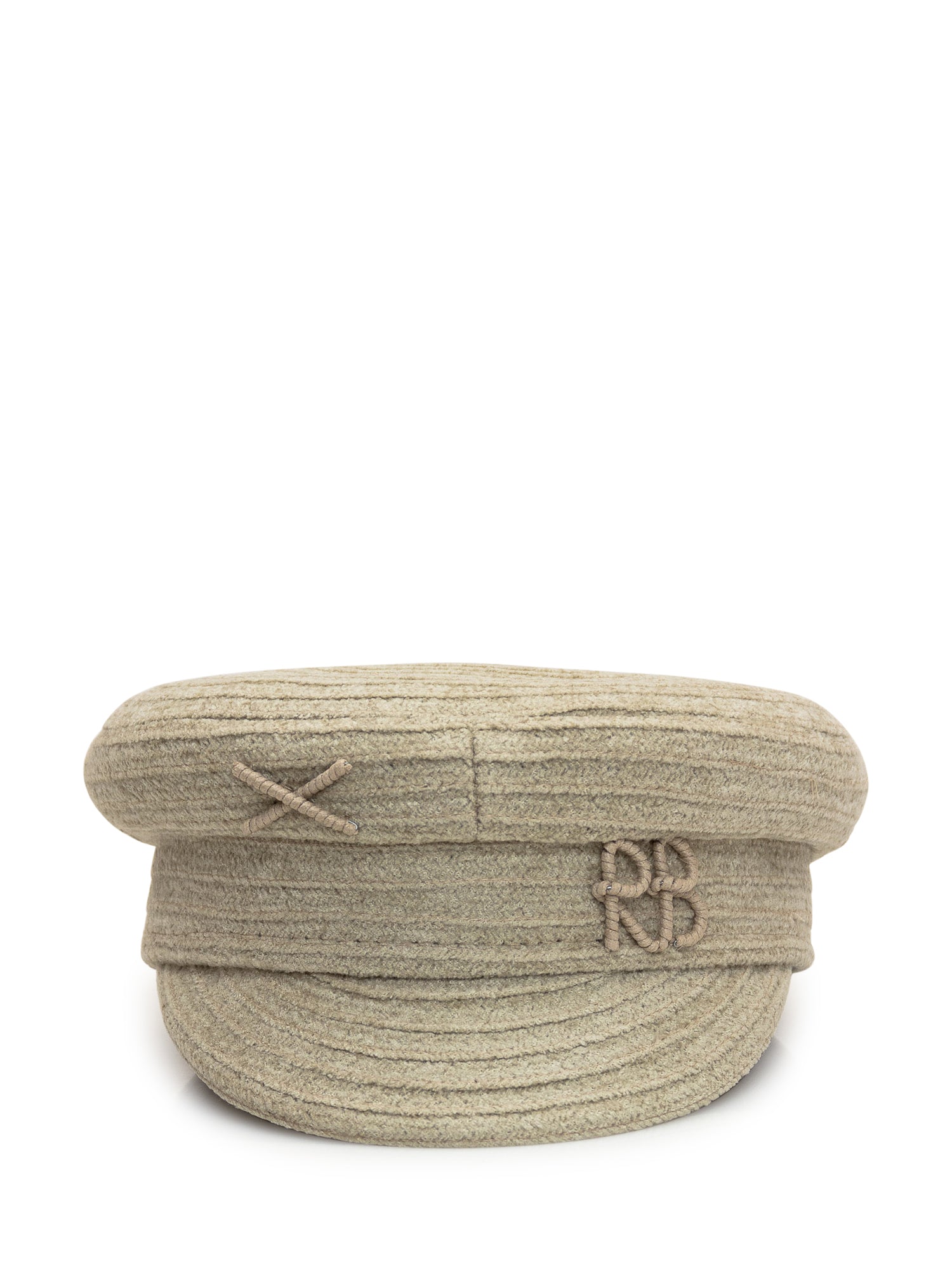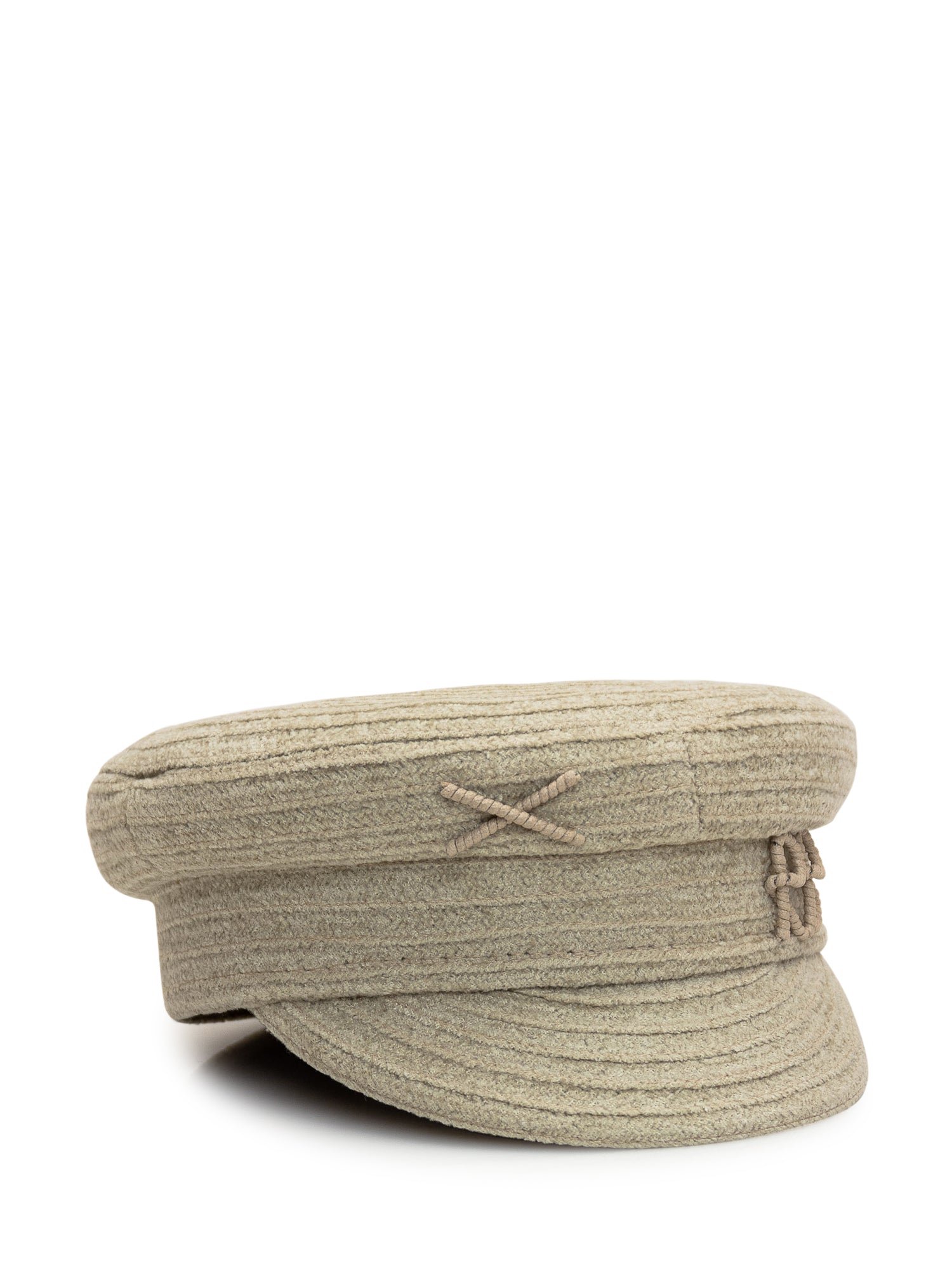 Cappello beige con visiera. Monogramma in corda sul davanti.