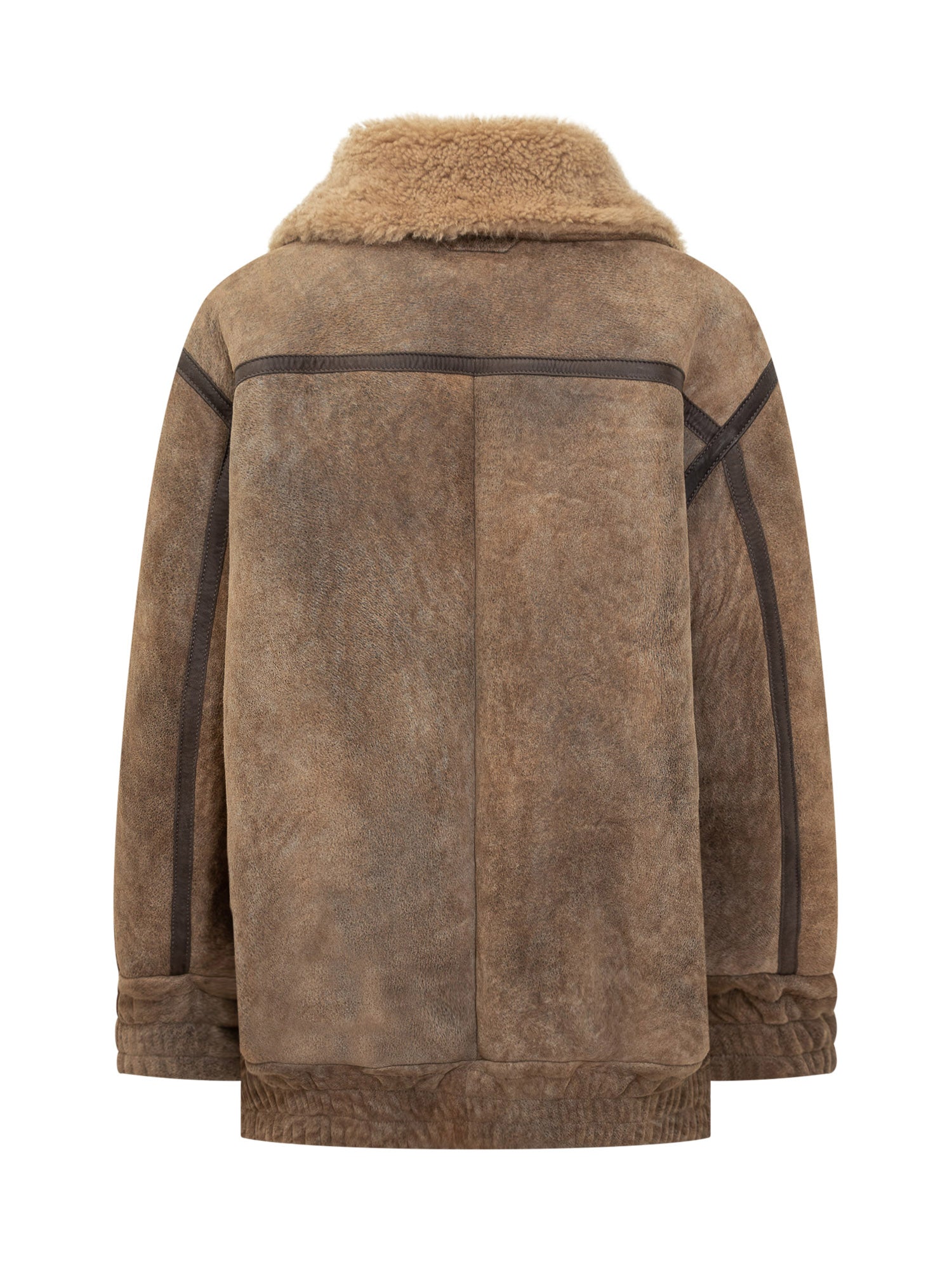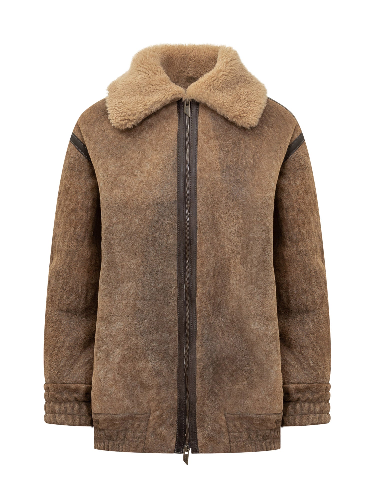 Giacca Salvatore Santoro in shearling marrone con zip centrale e collo in pelliccia a contrasto.