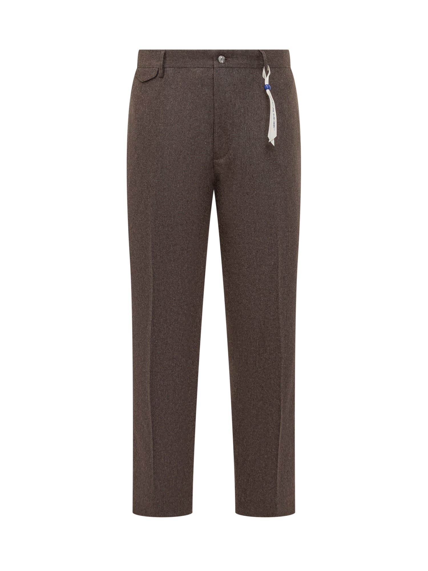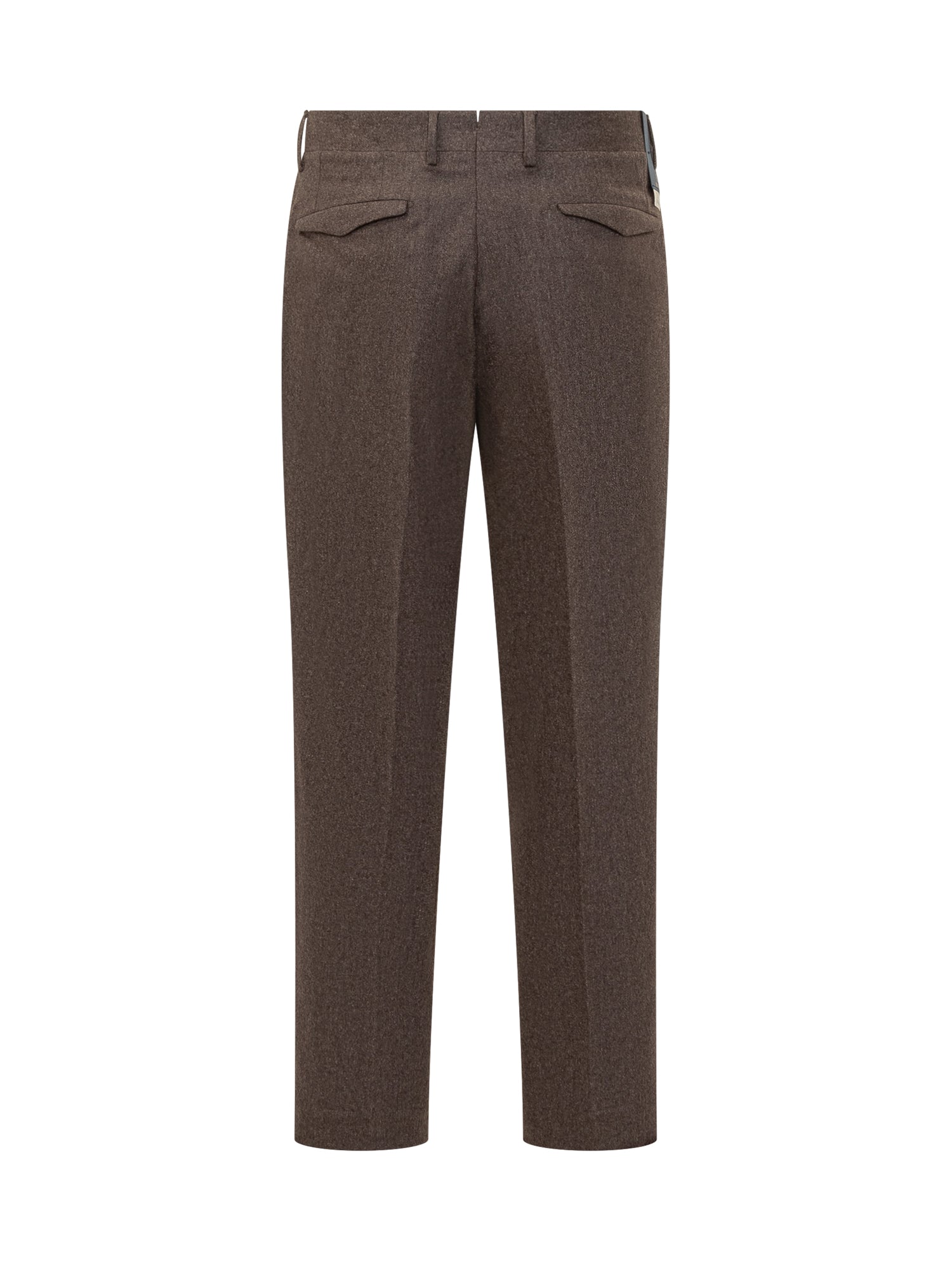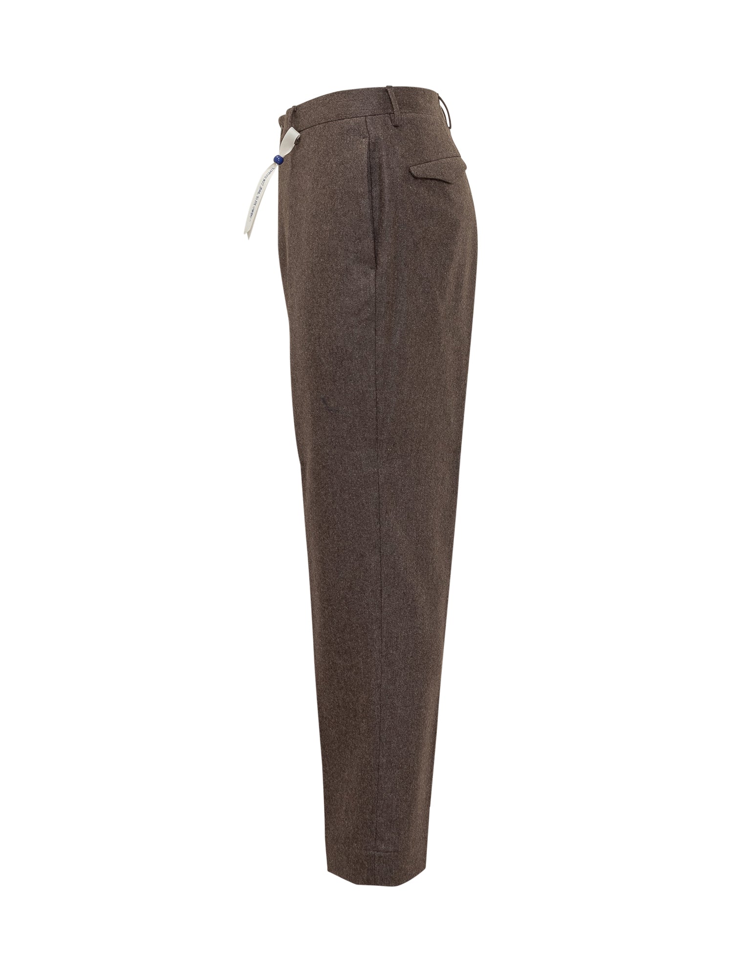 Pantaloni Santaniello in tessuto marrone con pinces frontali e taglio classico. Linea elegante e sartoriale,.