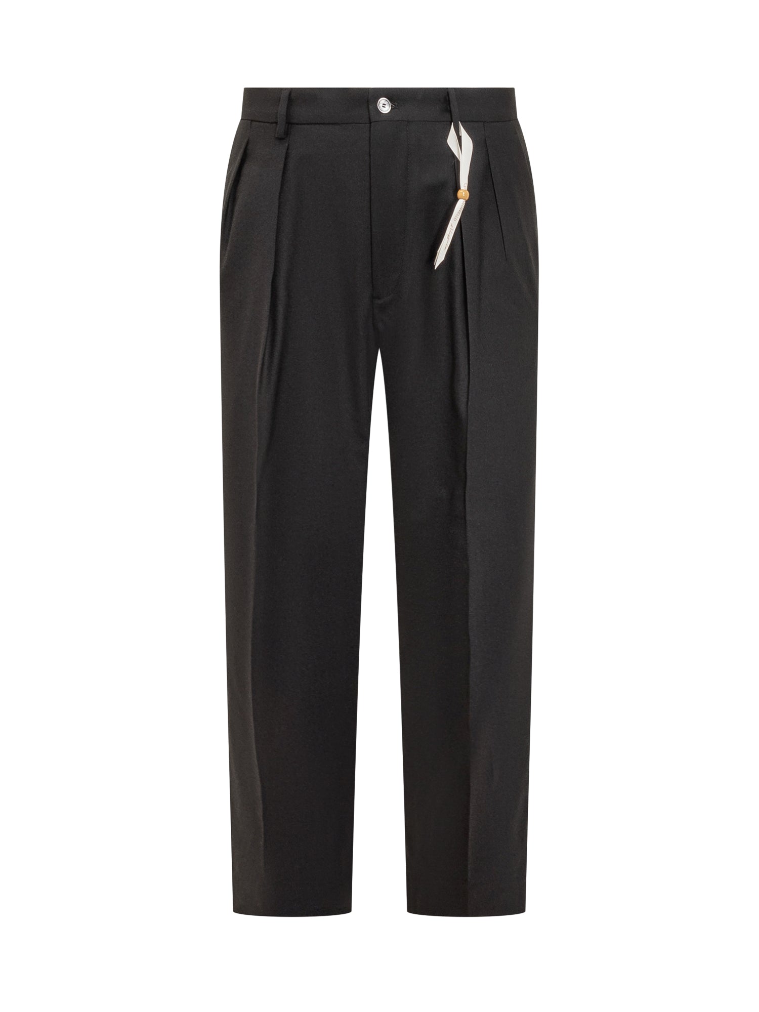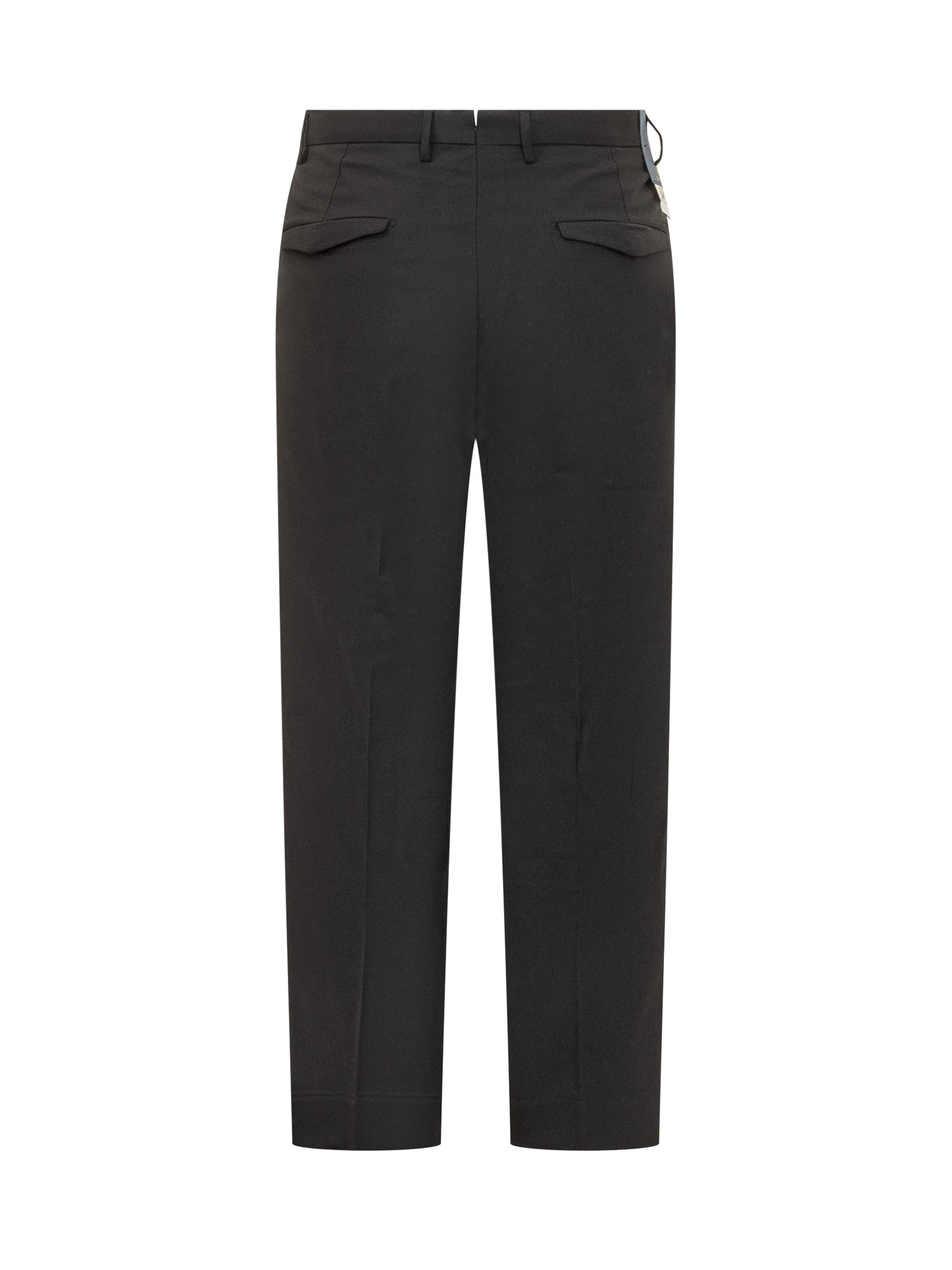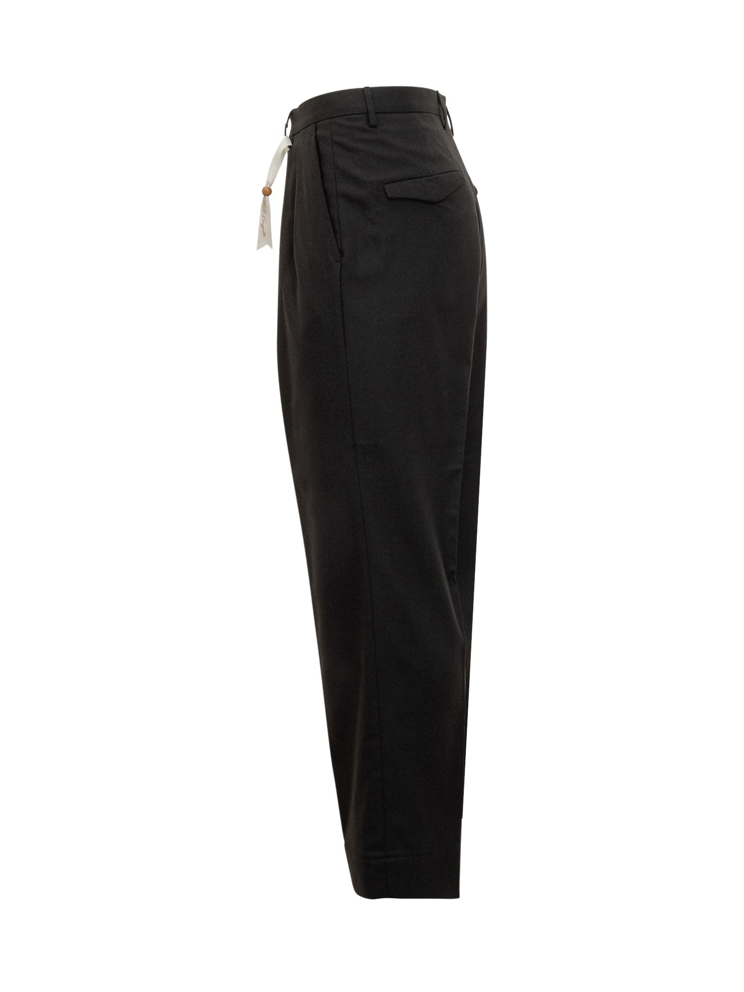 Pantaloni Santaniello in lana nera con pinces e linea dritta. Eleganti e versatili, ideali per look formali o per outfit quotidiani raffinati.