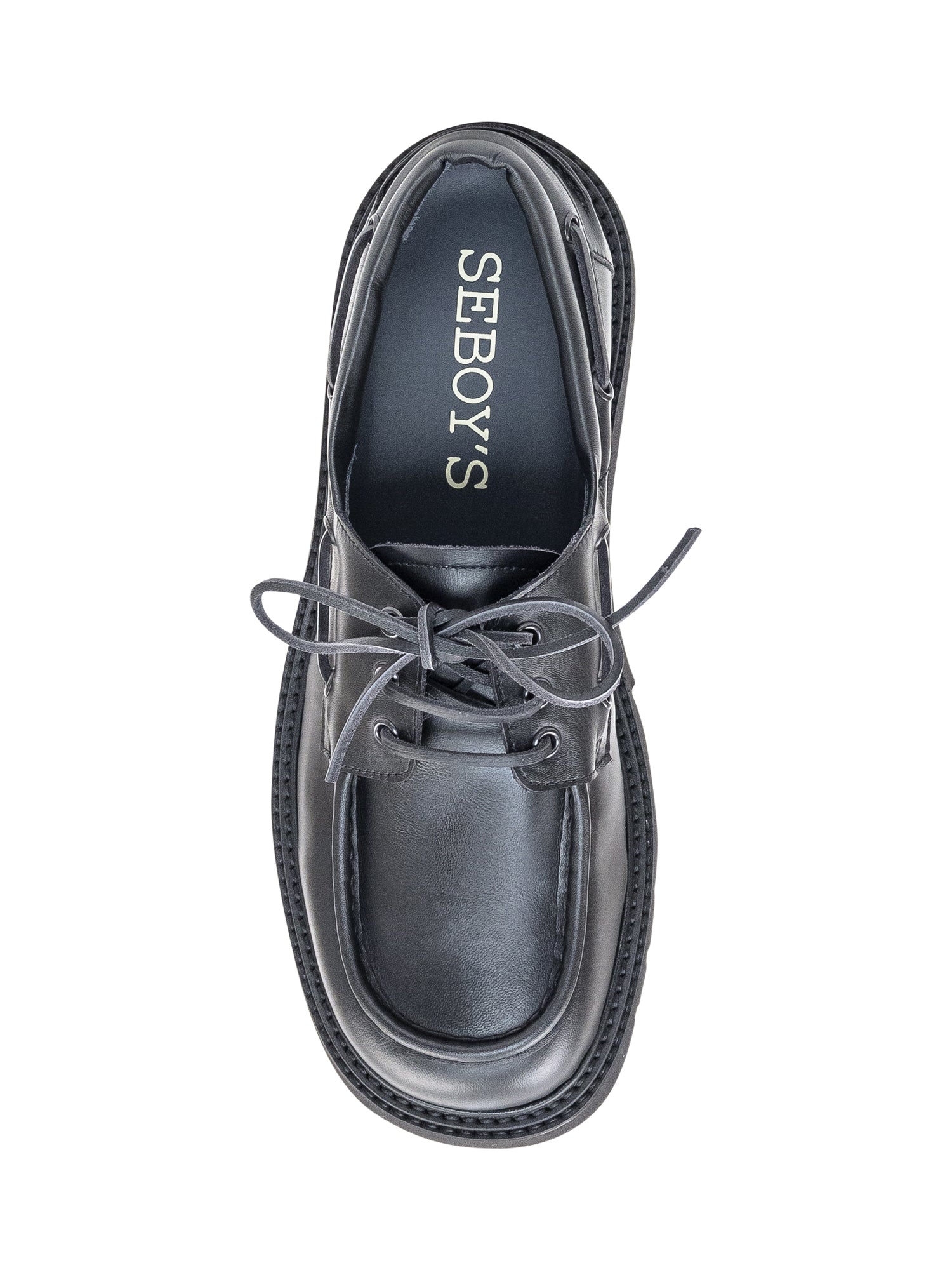 Stringata nera in pelle. Chiusura con lacci. Suola in gomma sagomata.