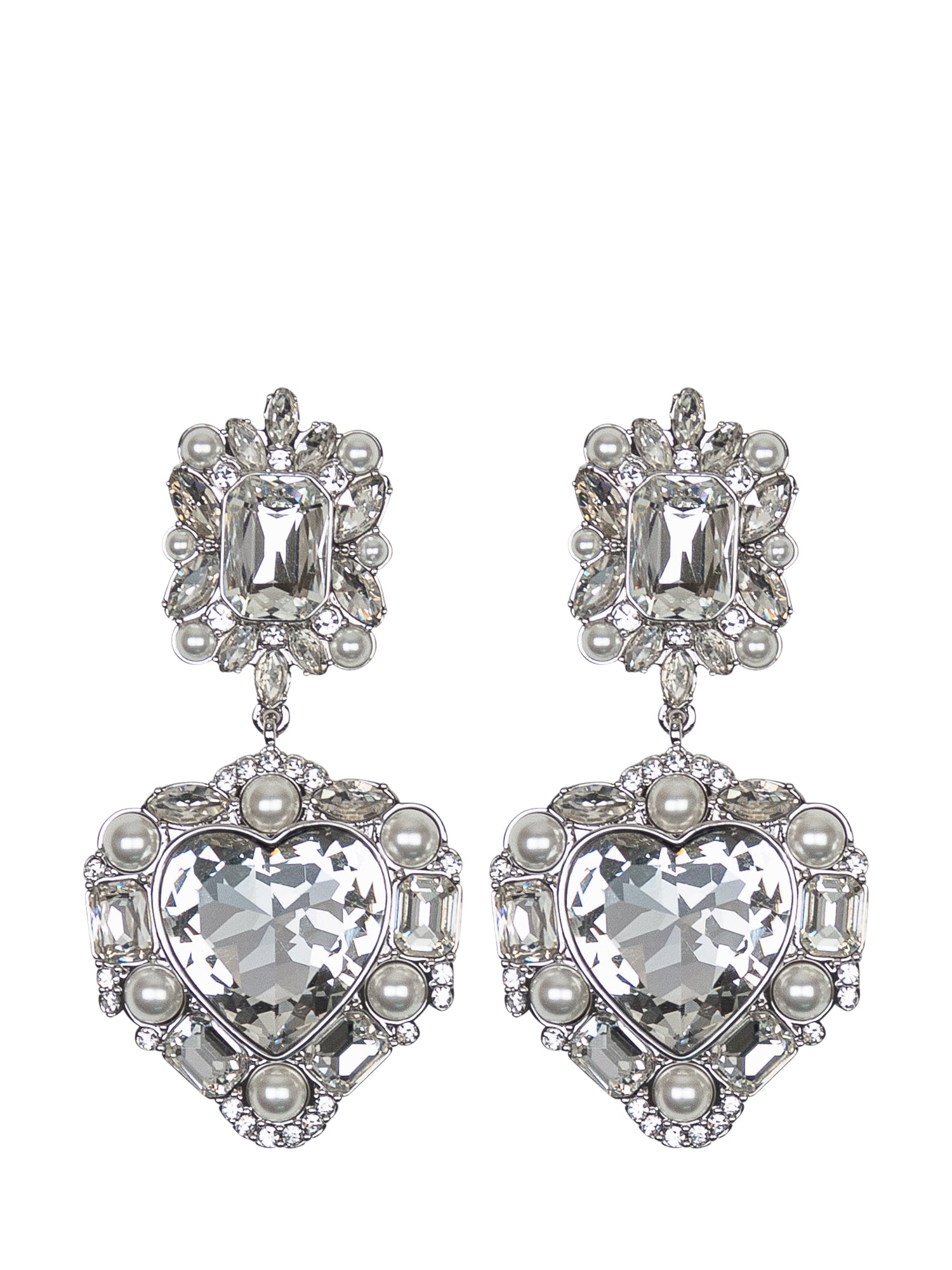 Orecchini con diamanti. Pendente forma a cuore. Dettaglio chiusura posteriore.