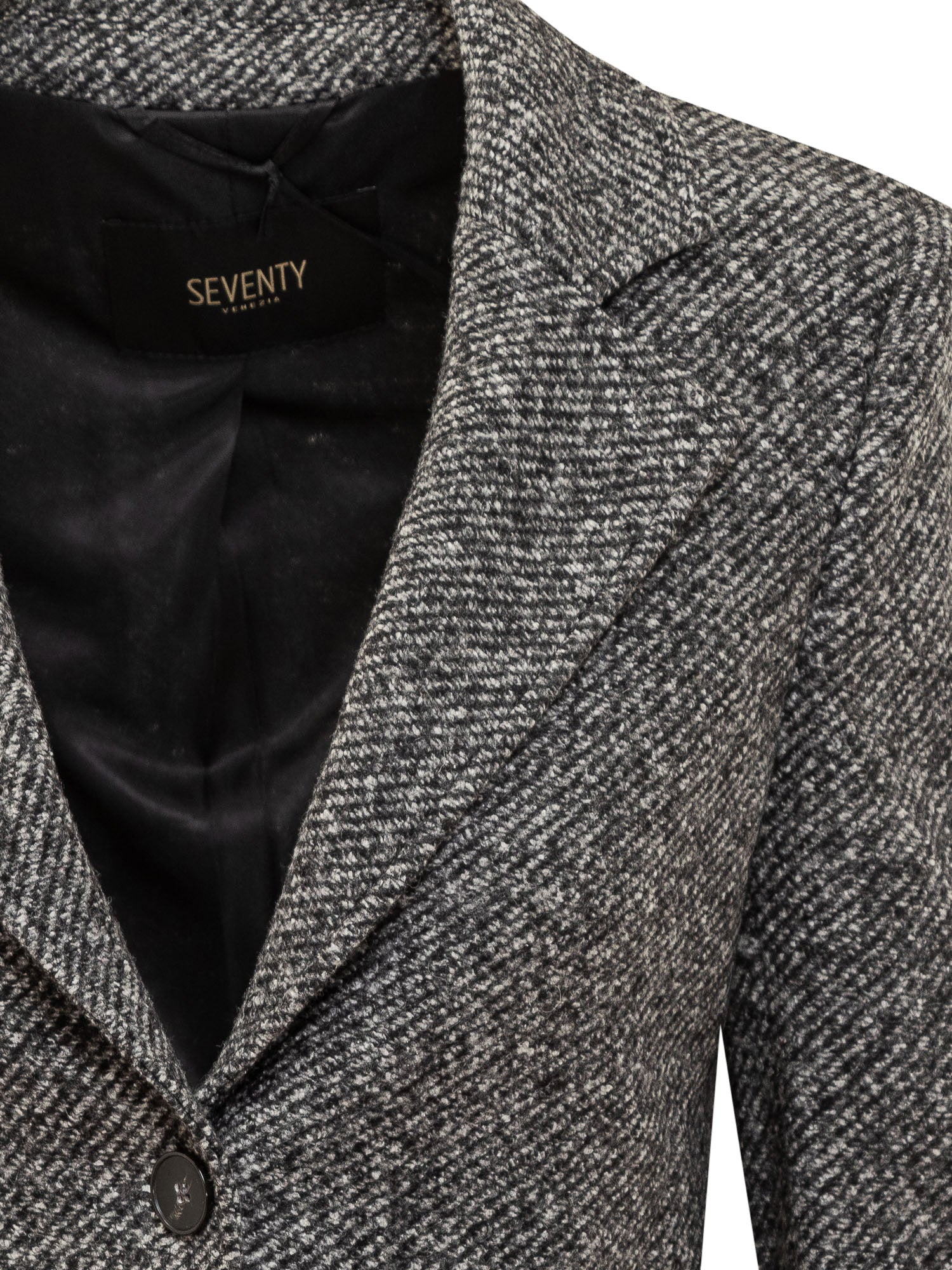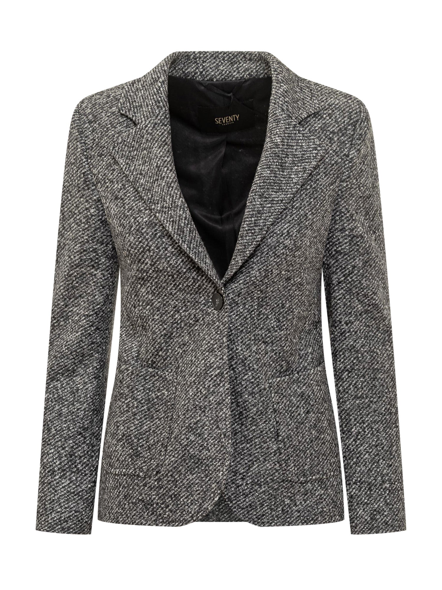 Blazer Seventy 19.70 in tweed grigio con chiusura a bottone singolo e revers classici. Linea sartoriale.