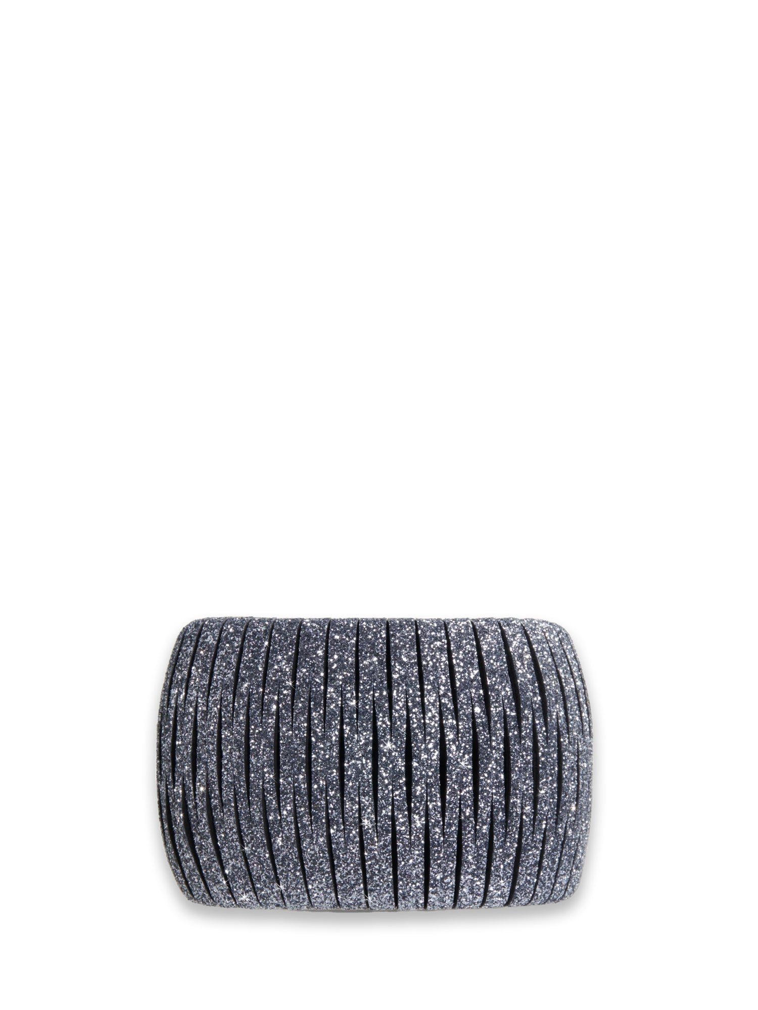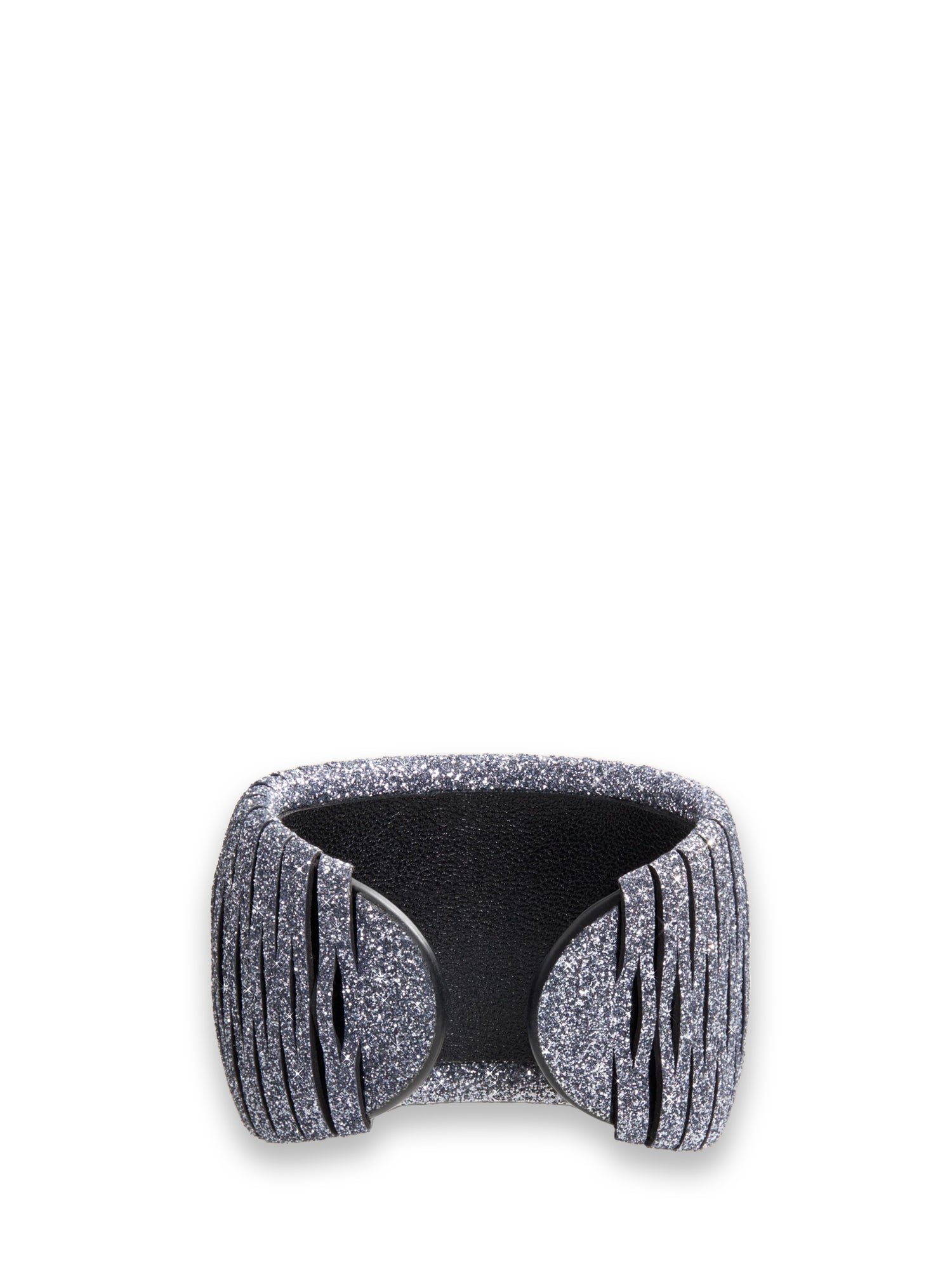 Bracciale argento rigido in pelle. Glitter all-over. Misura regolabile .