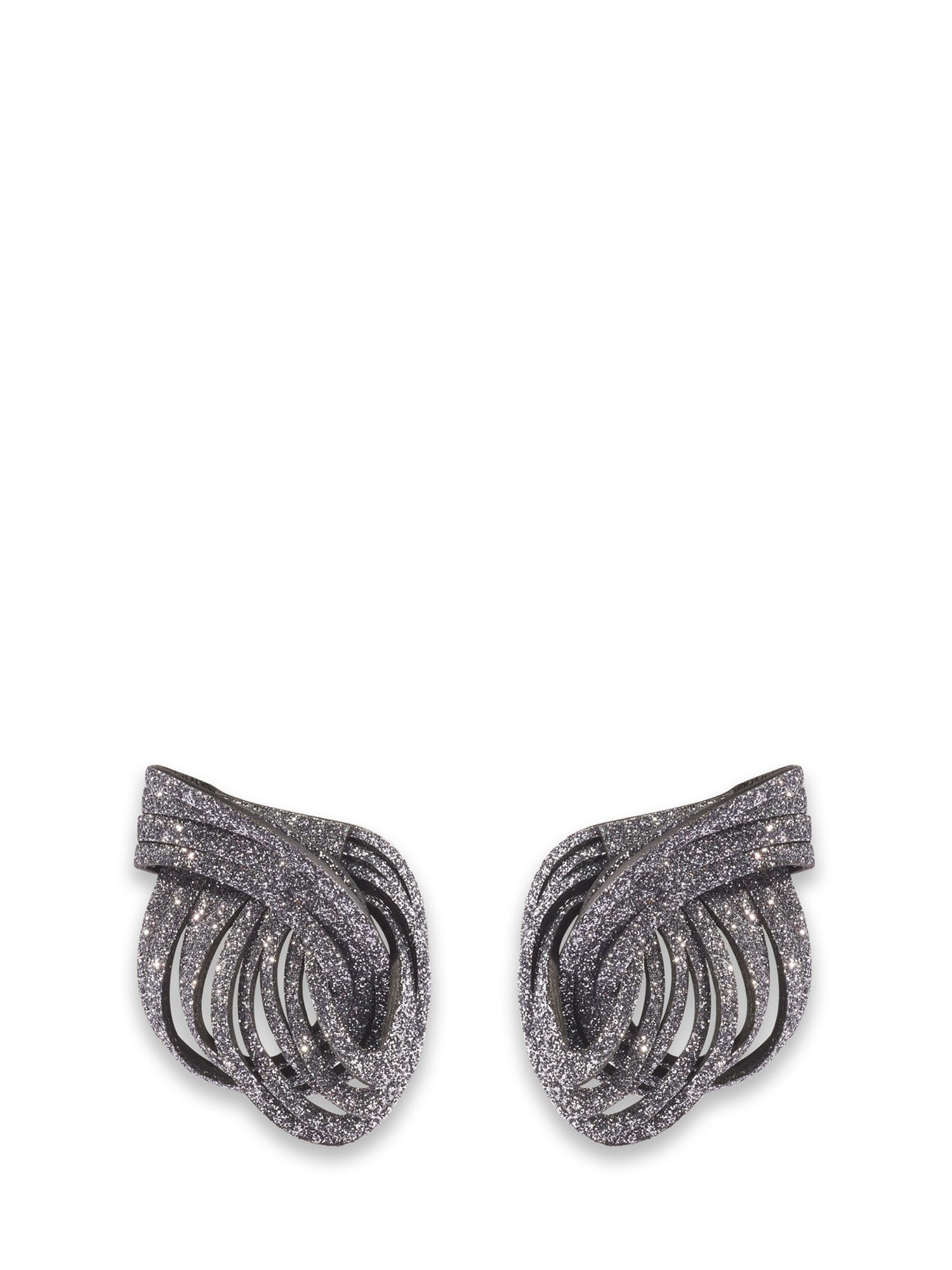 Orecchini argento. Chiusura con farfalla. Glitter all-over. Motivo intrecciato.