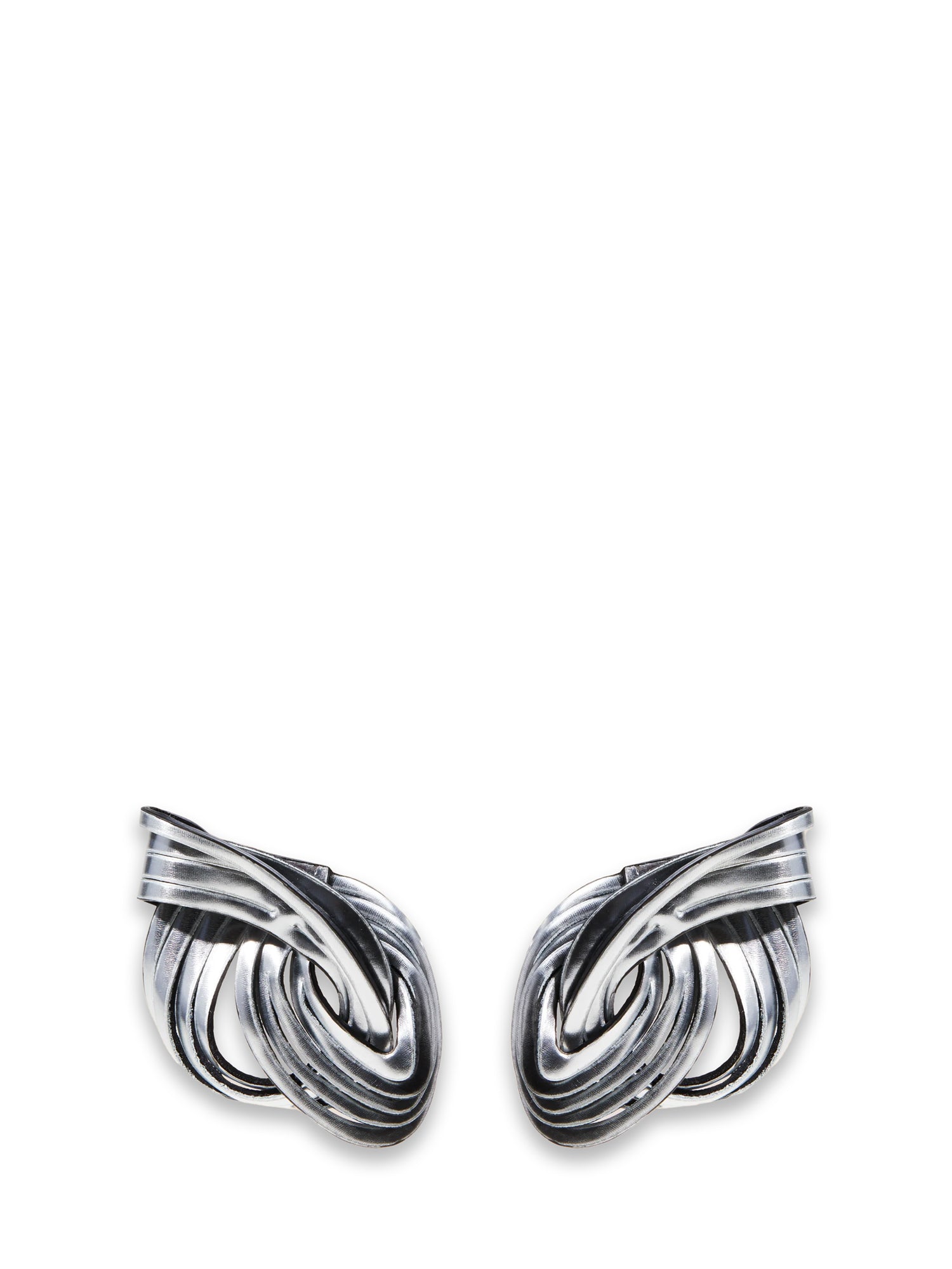 Orecchini argento. Chiusura con farfalla. Dettaglio intrecciato.