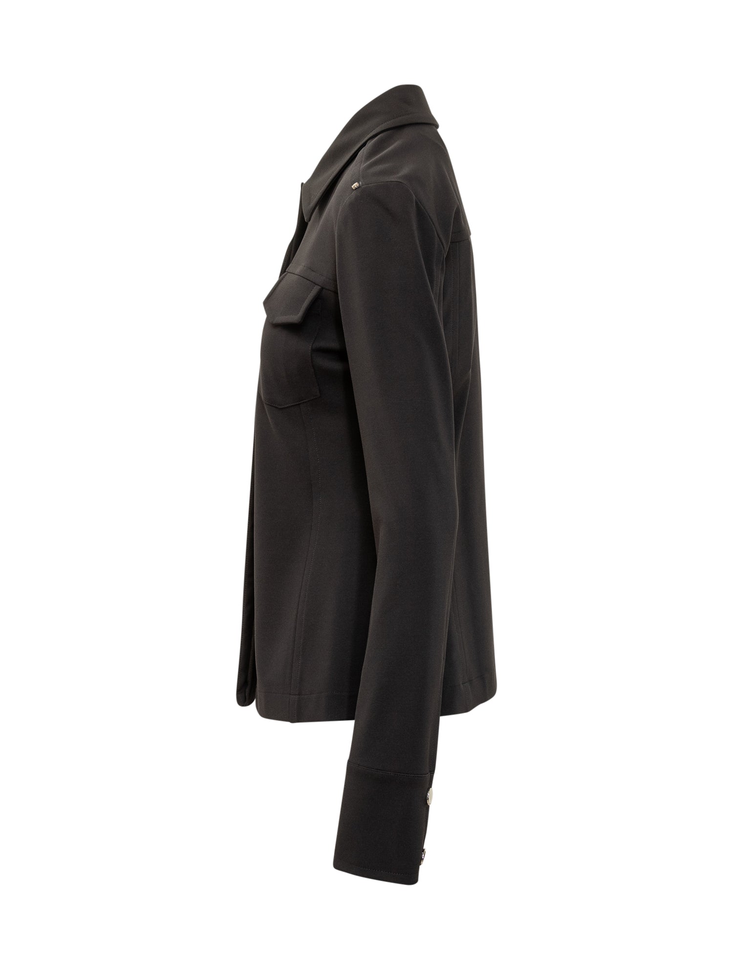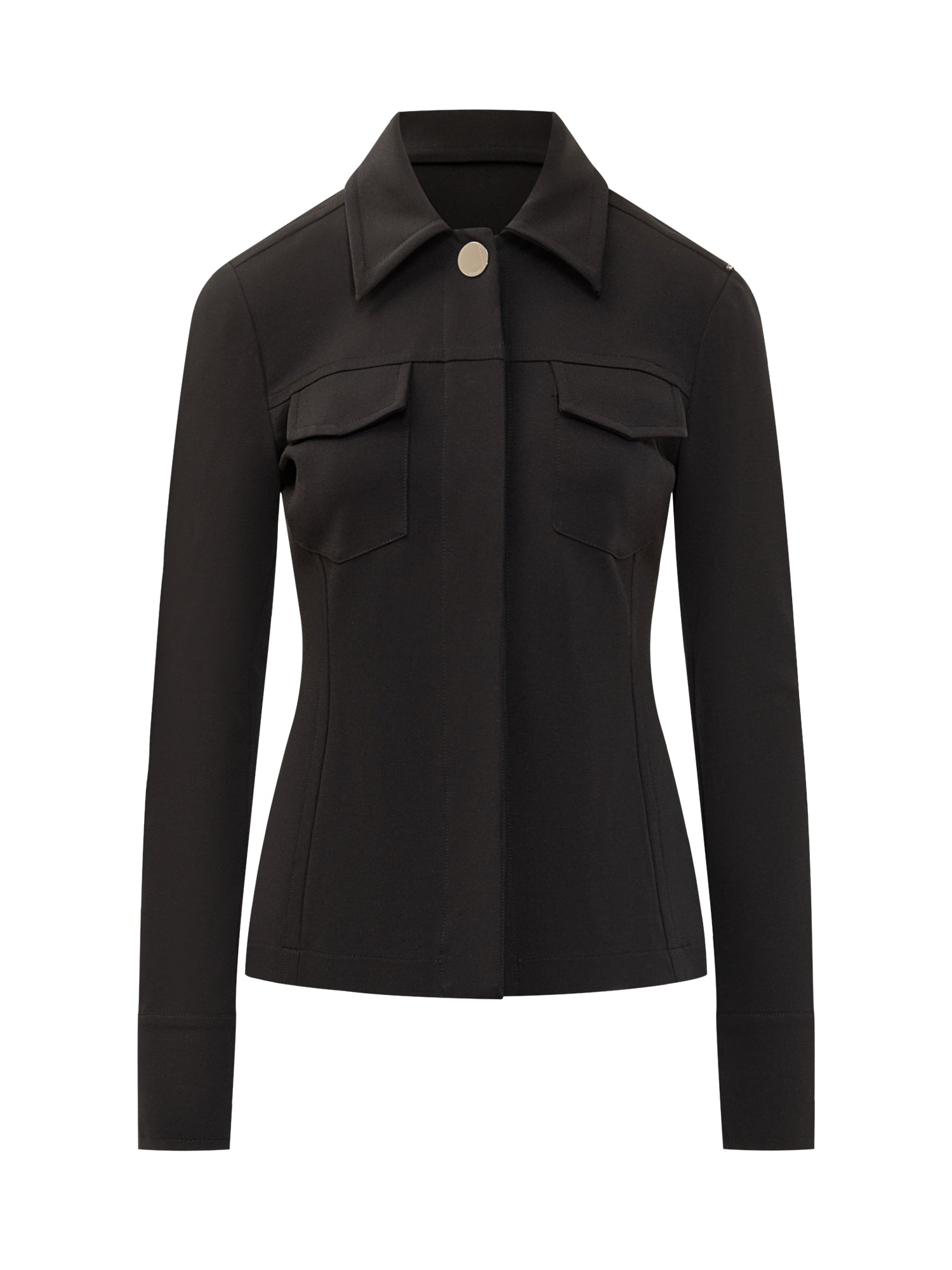 Giacca nera slim fit di Sportmax con chiusura nascosta e tasche a patta sul petto.