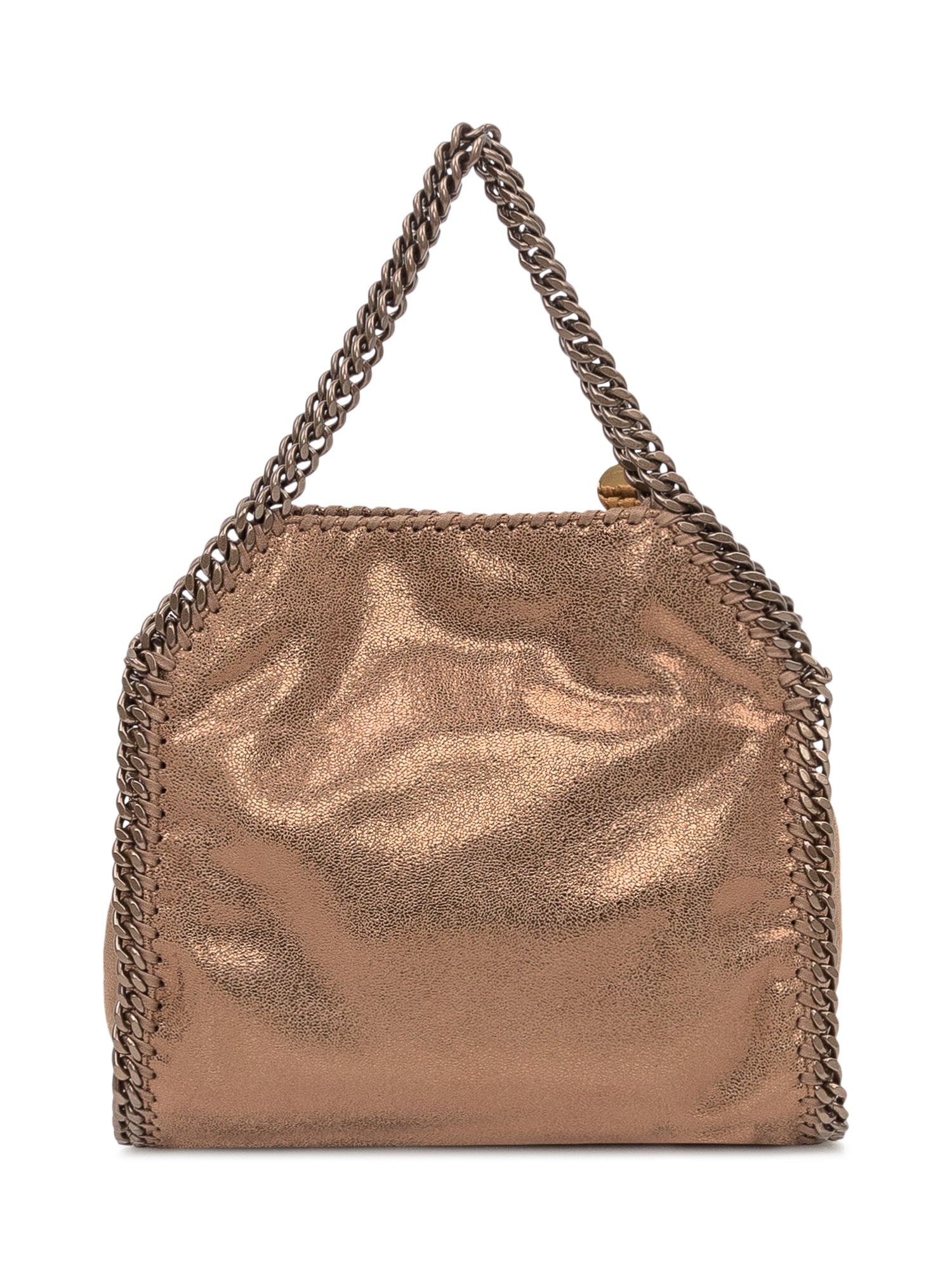 Iconica borsa Falabella Stella McCartney in ecopelle effetto metallizzato bronzo, con catene in metallo e doppio manico.
